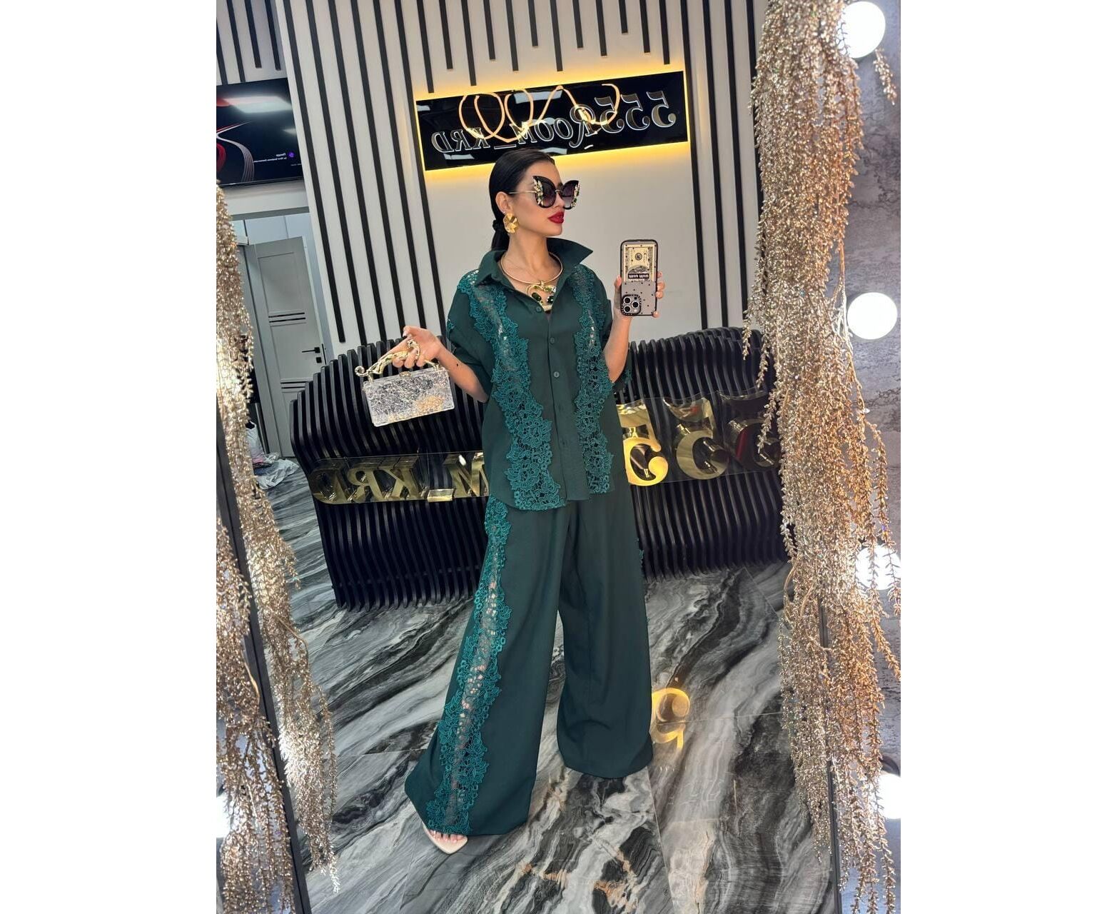 свободный крой брюк вытягивает силуэт, верх красиво сидит и не обтягивает.