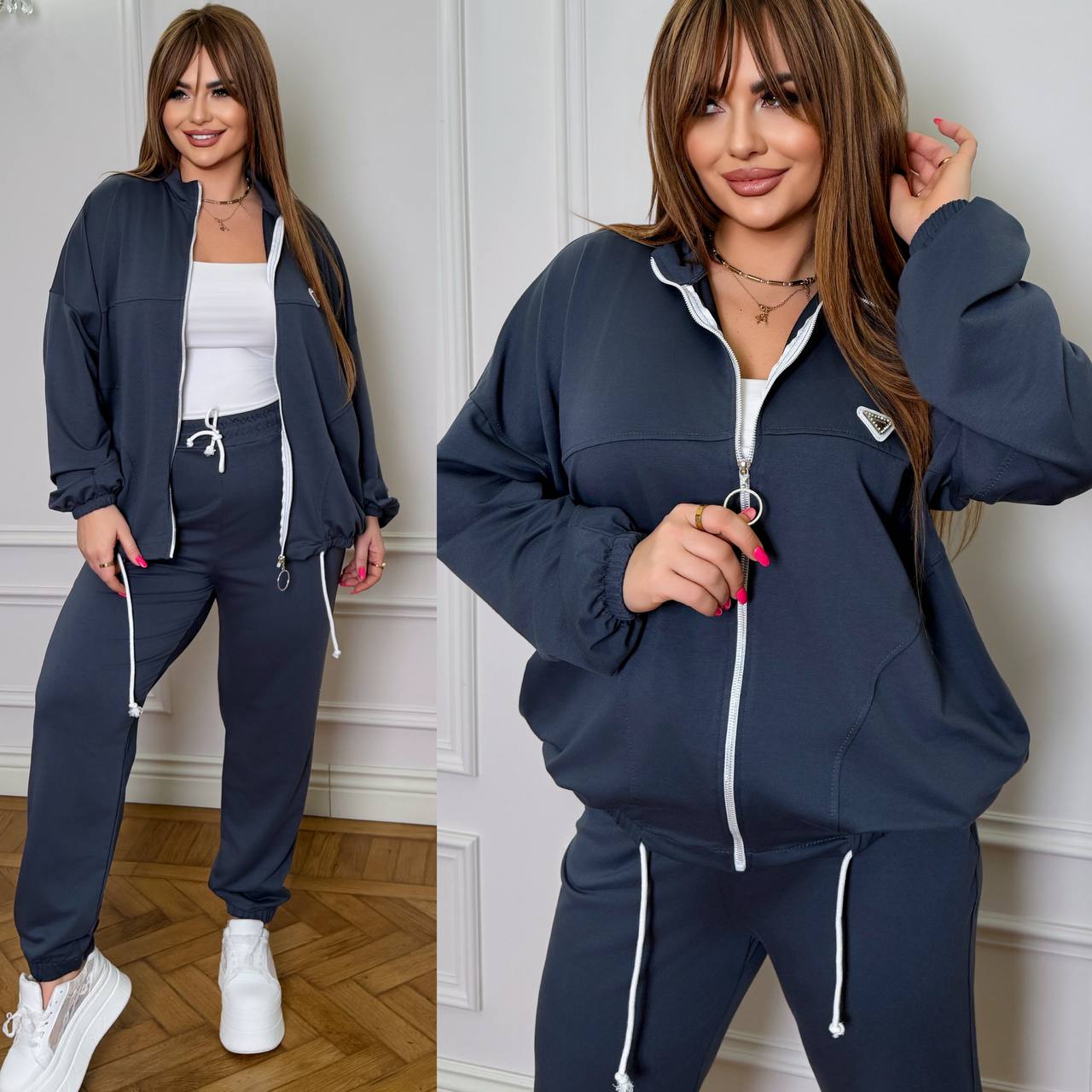 Кофта на змейке с двойным капюшоном, по низу канатик + джоггеры с посадкой выше среднего, с карманами в боковых швах, на поясе и по низу резинка, с белым канатиком/ утяжкой на поясе)