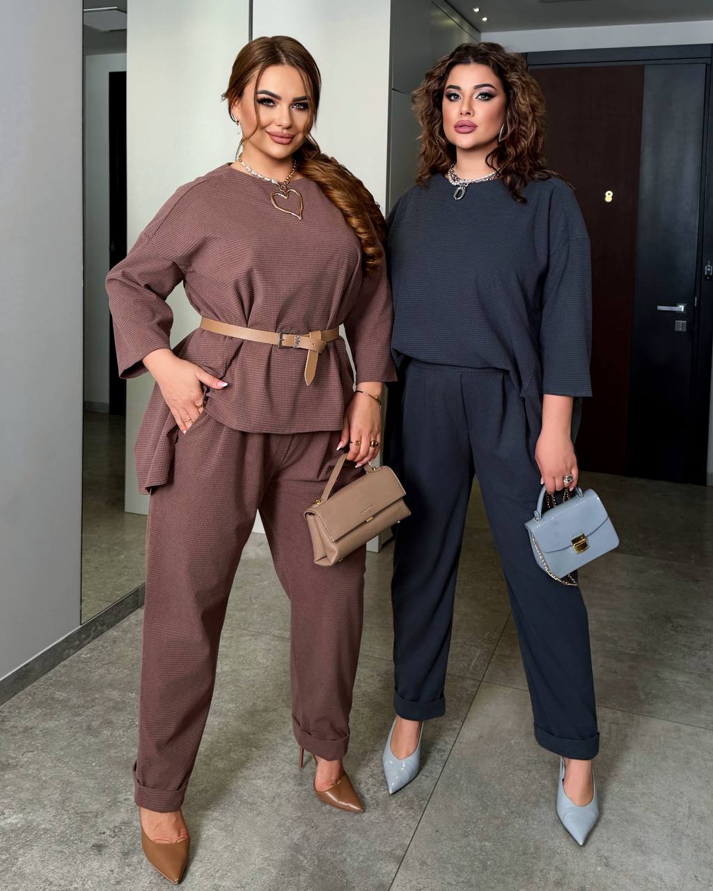 Костюм отлично подходит для повседневных выходов, работы или встреч, легко сочетается с каблуками или обувью на низком ходу. практичный, универсальный и актуальный в любое время года.