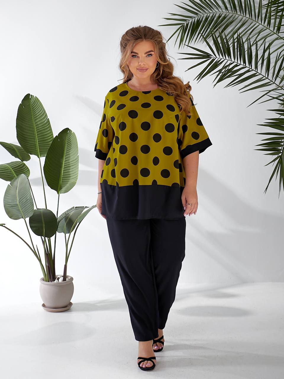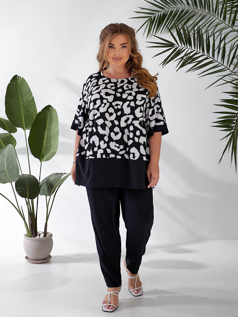 Измерения изделия: длина брюк 105, блузы 80 см, рукава 30 см.