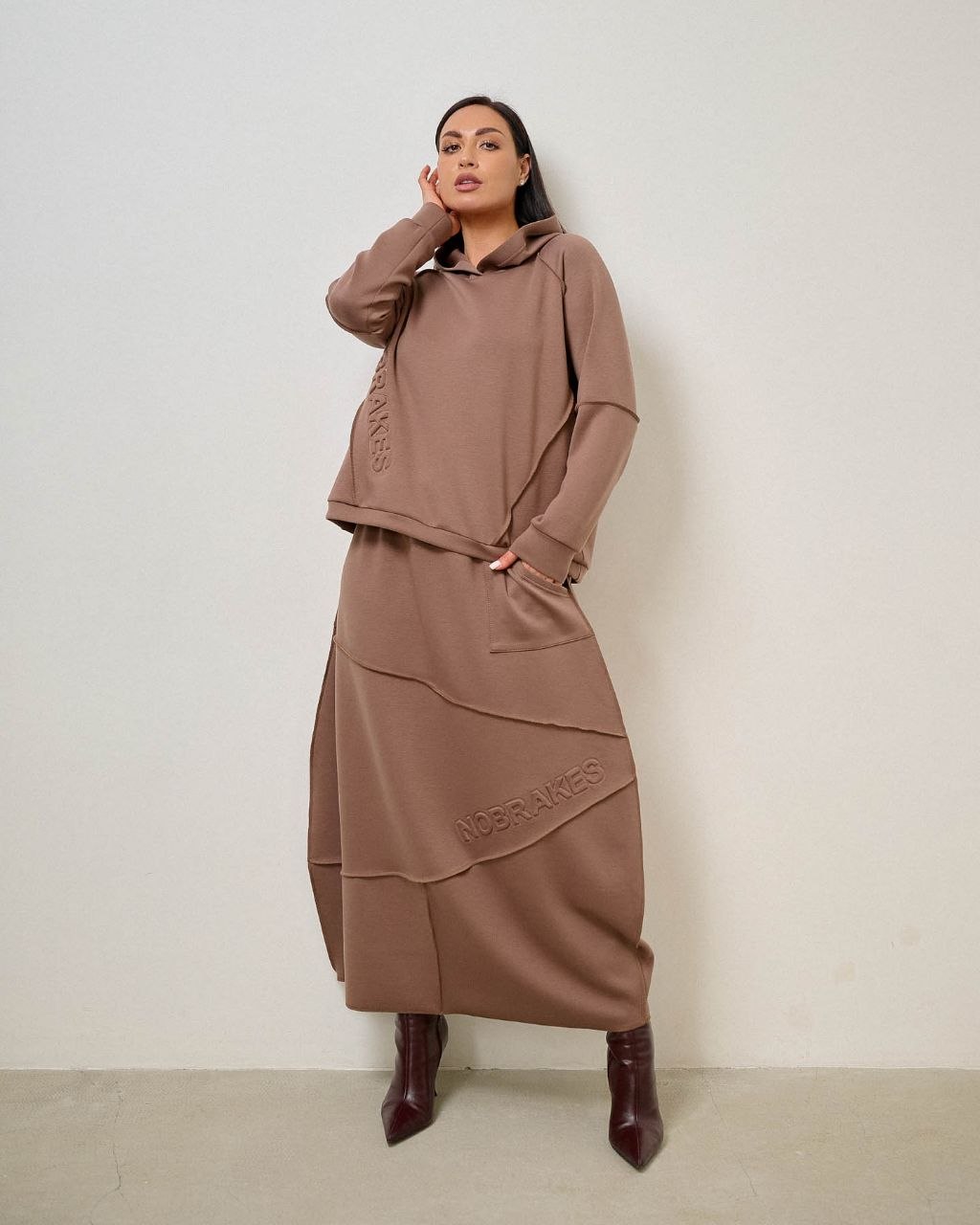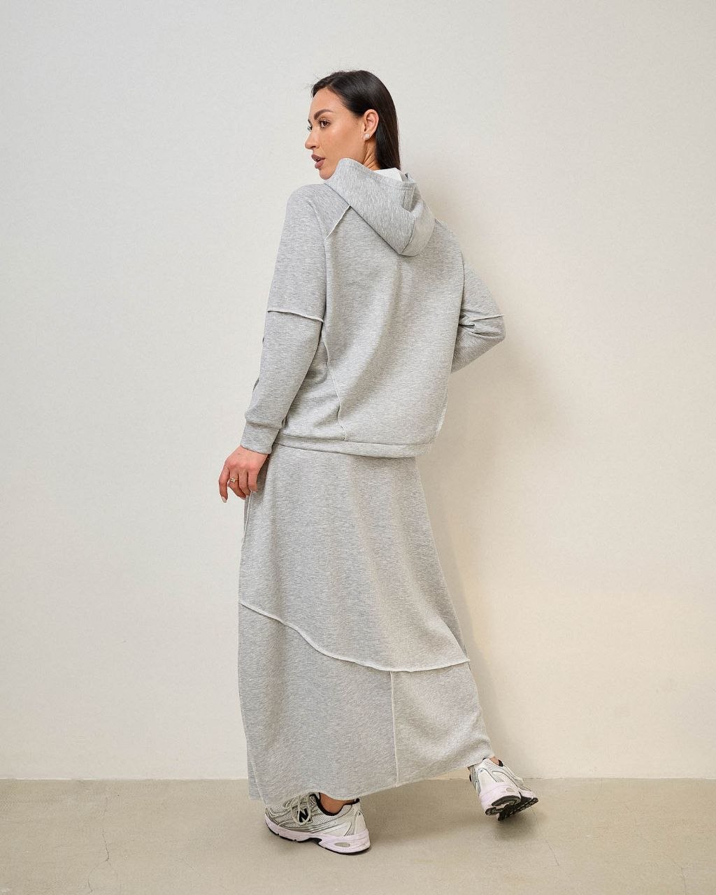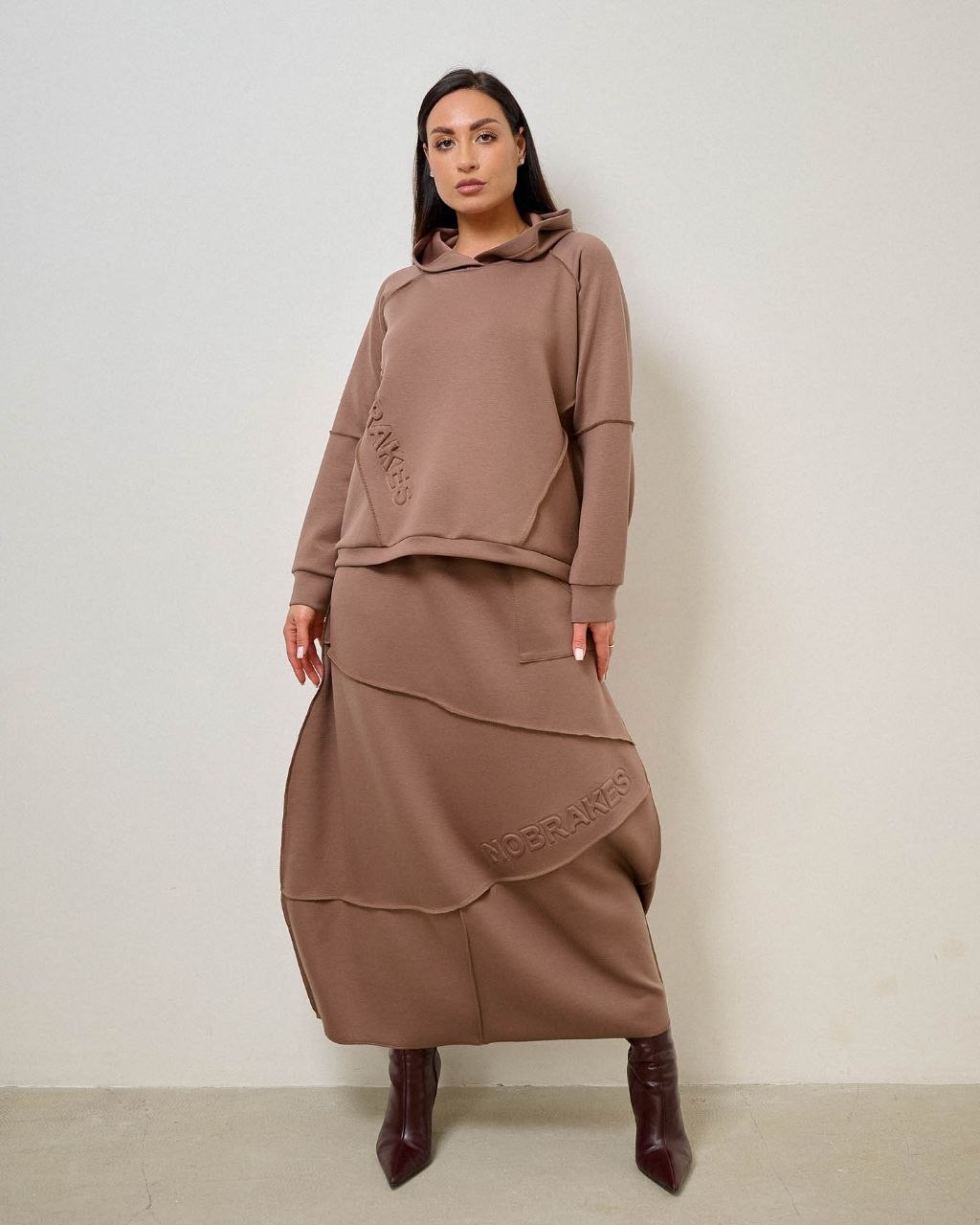 Костюм с юбкой, швы наружу. ткань трикотаж "тенсел" (шелковистая, приятная, комфортная), крепкая не лохматится при правильном уходе. при стирке рекомендуется щадящий режим при 30-40°с и отжим на низких оборотах.