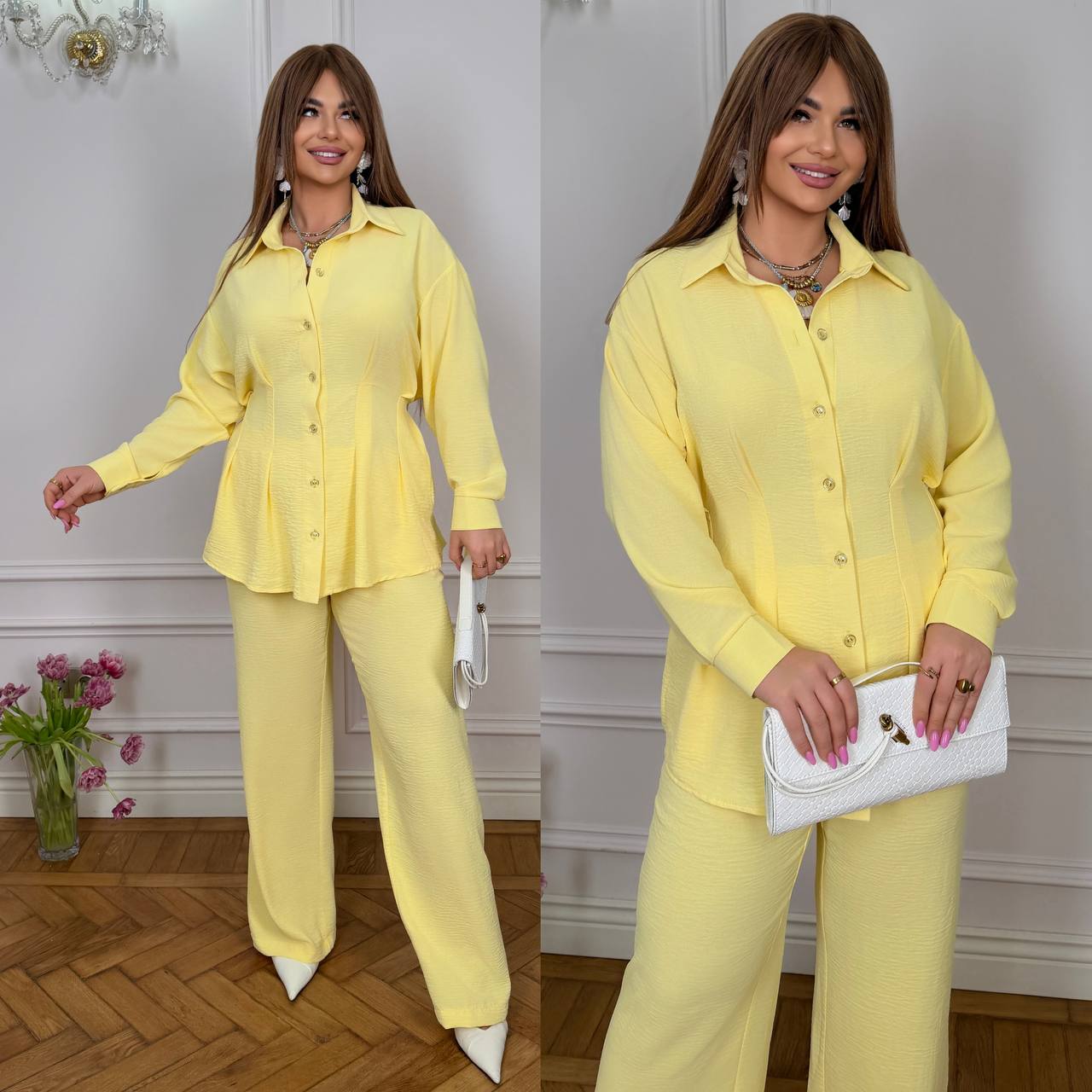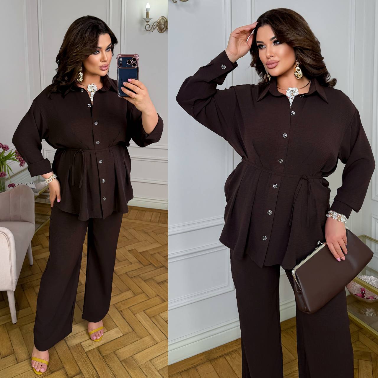 Особенности модели: рубашку можно фиксировать на талии, также носить как оверсайз.