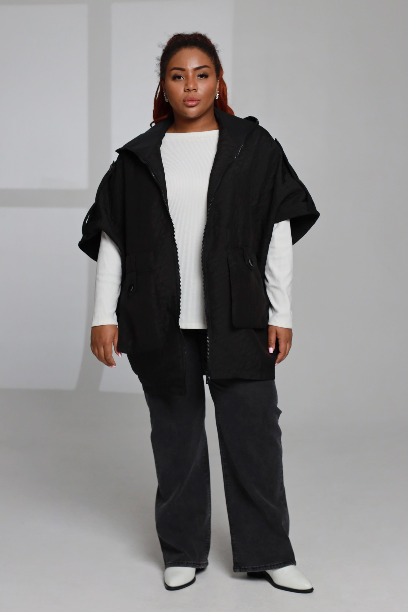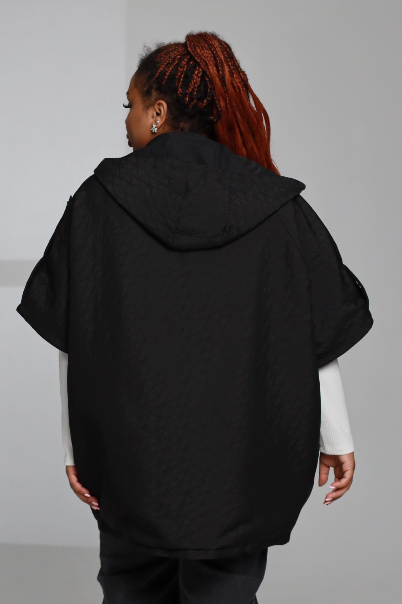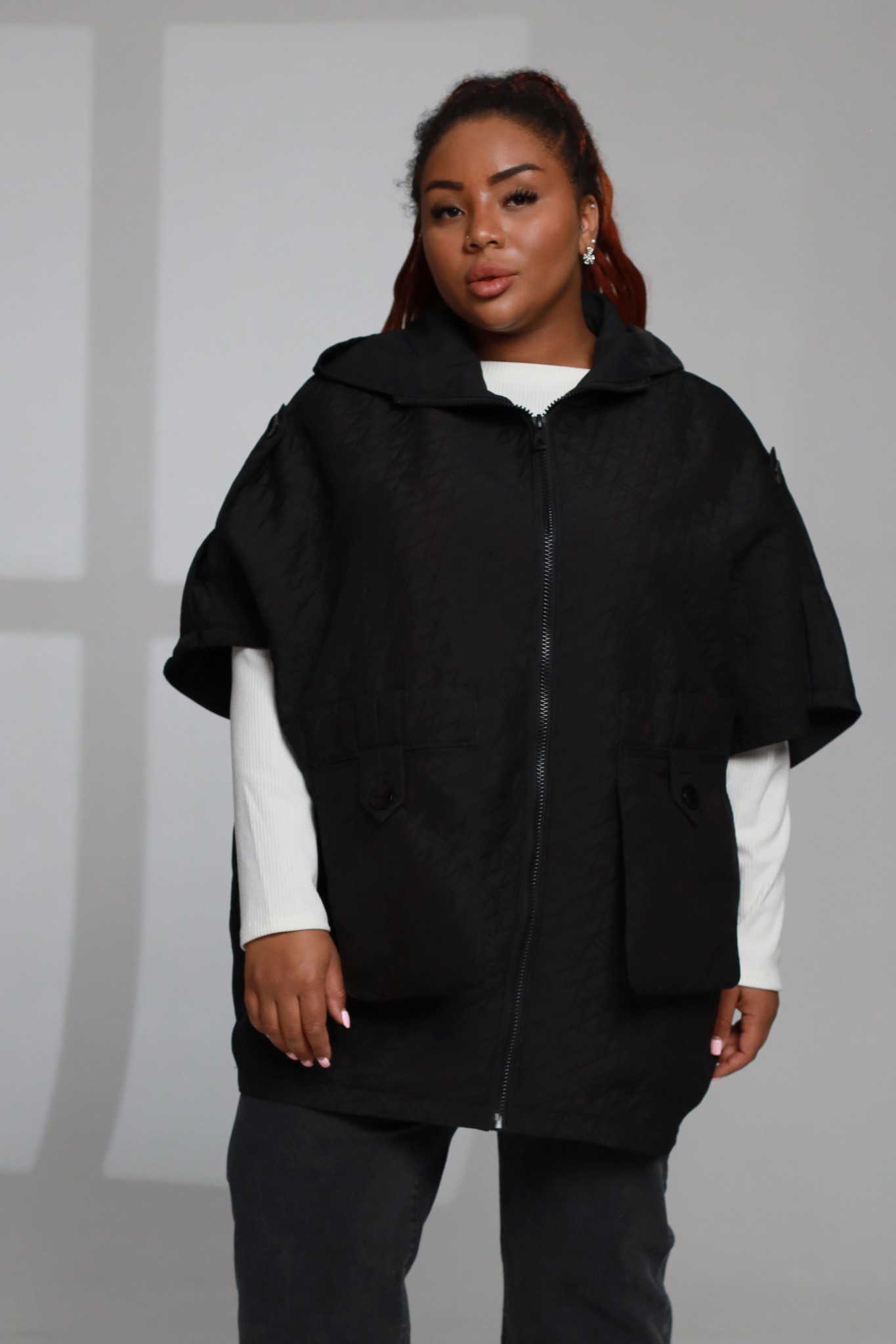 Куртка на молнии с капюшоном, рукава 1/2 черная
