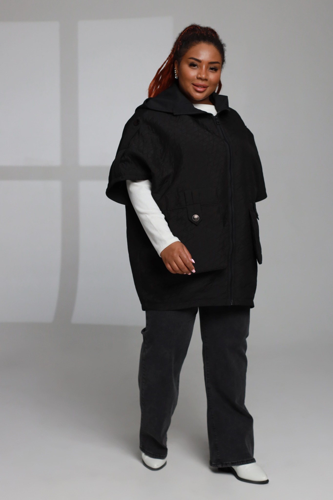 Удобная модная куртка с капюшоном на осень-весну. рукава укороченные: 1/2, застежка - молния, большие накладные карманы, в которых удобно носить разные мелочи. идеально подходит под ваши любимые свитера, пуловеры и футболки с длинным рукавом.
