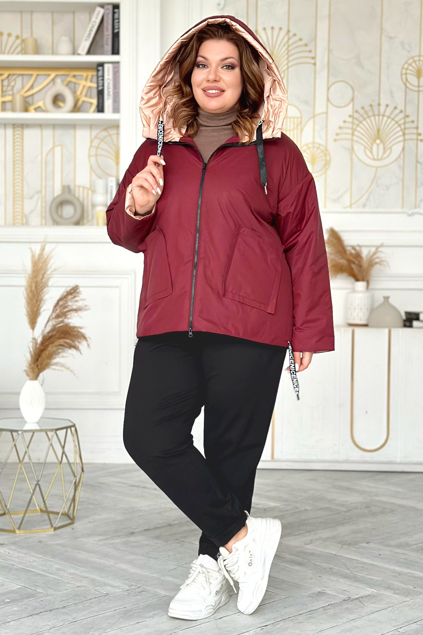 Ветровка, утепленная одним слоем синтепона – прекрасно подойдет для холодной весны и осени. модель прямого кроя, застегивается на двойную пластиковую молнию спереди. имеет большой капюшон на широких лентах-завязках с контрастной подкладкой. модель имеет рукава полной длины, оформленные по низу контрастным отворотом. объемные накладные карманы по бокам добавляют практичности. формирующие швы по спинке обеспечивают оптимальную посадку по фигуре. длину изделия по бокам можно регулировать лентами с модными надписями. обладая достаточно свободным кроем, модель не сковывает движений и скрывает возможные несовершенства фигуры. в прохладную погоду ветровка не только защитит от холода, но и поможет оставаться стильной и женственной.