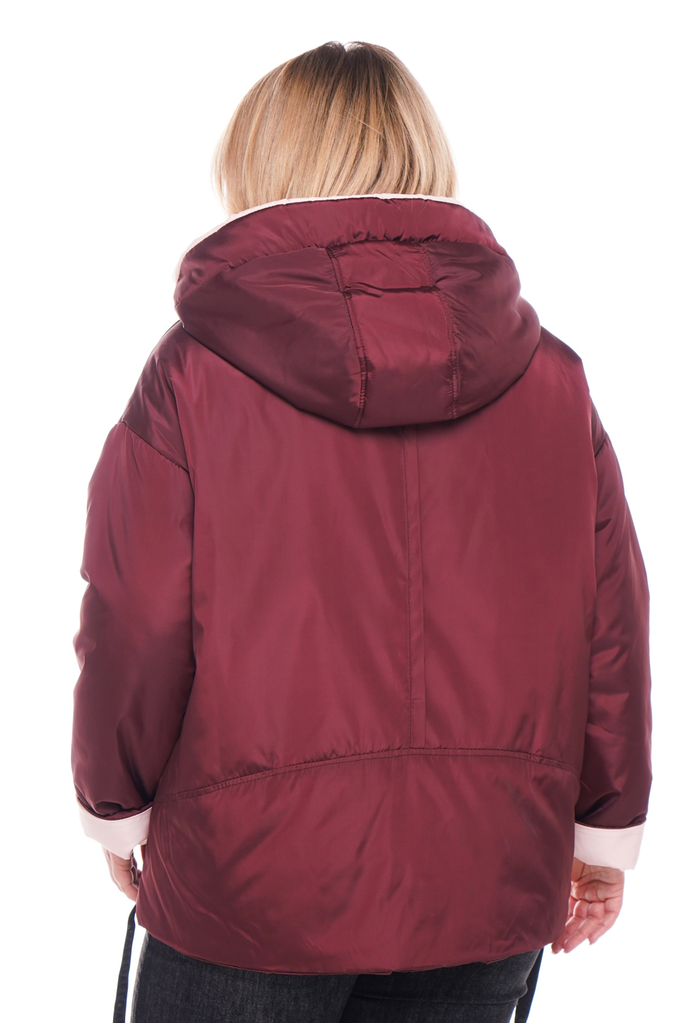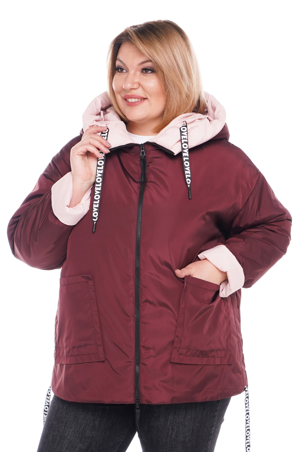 Куртка с нашивными карманами бордовая с розовой отделкой