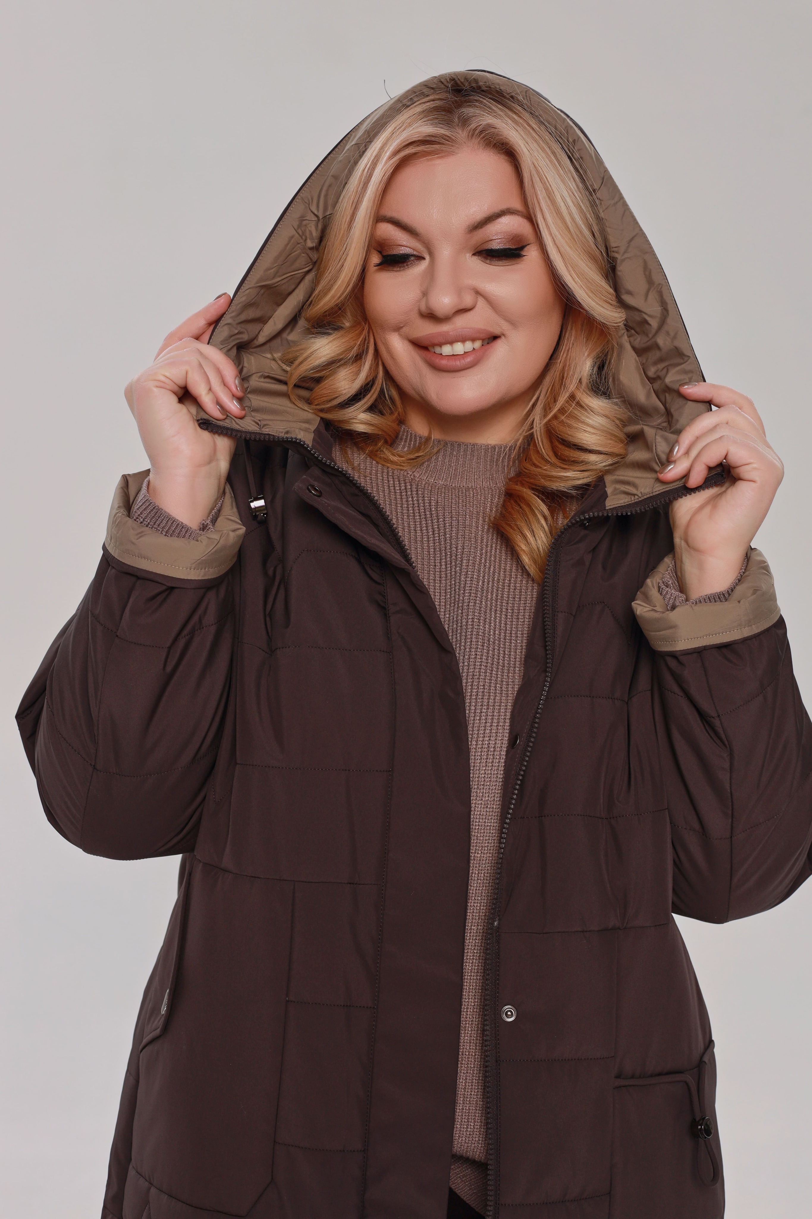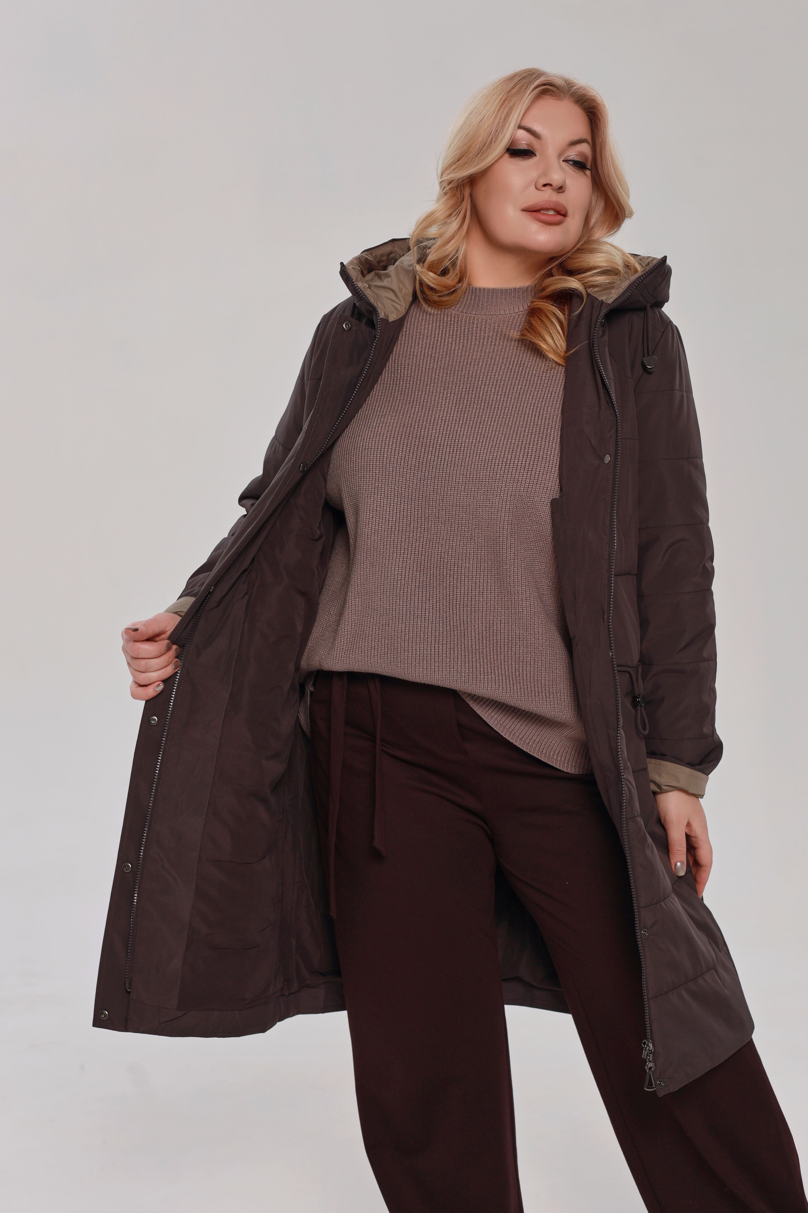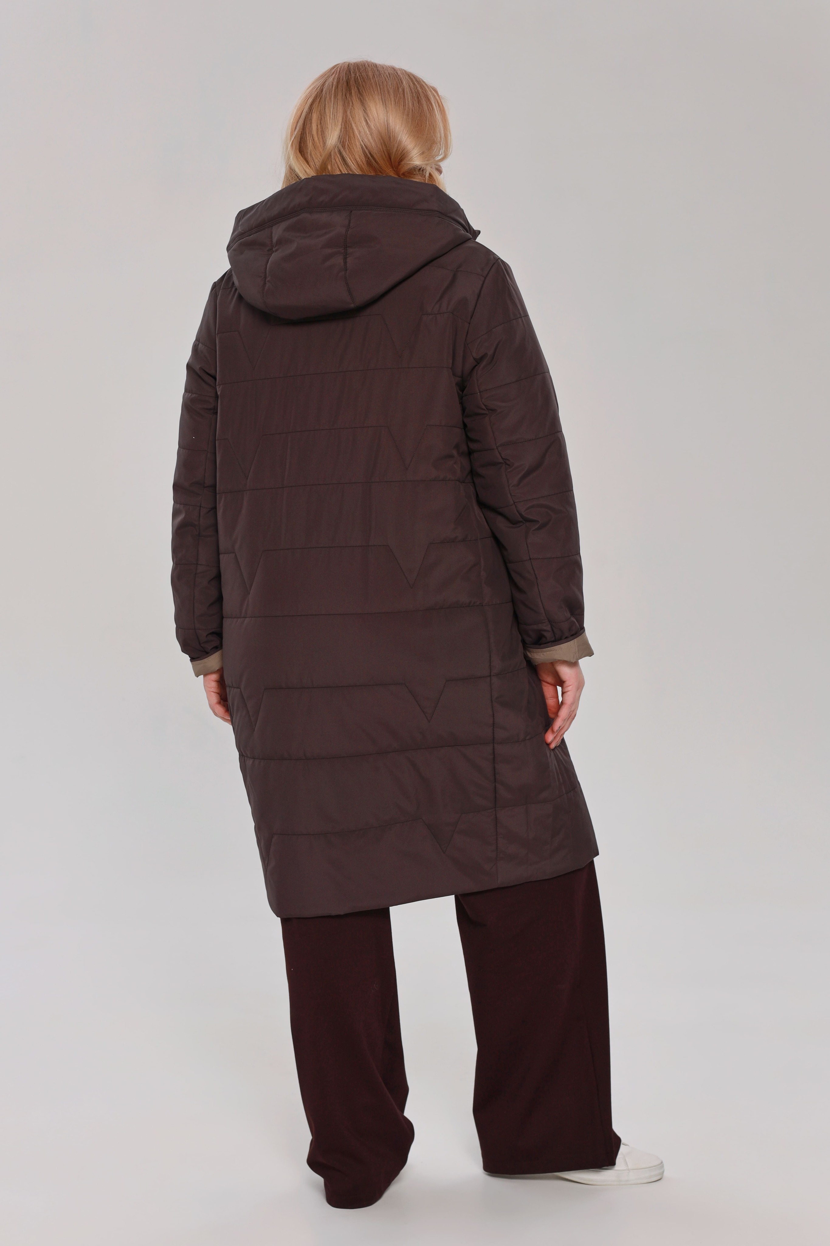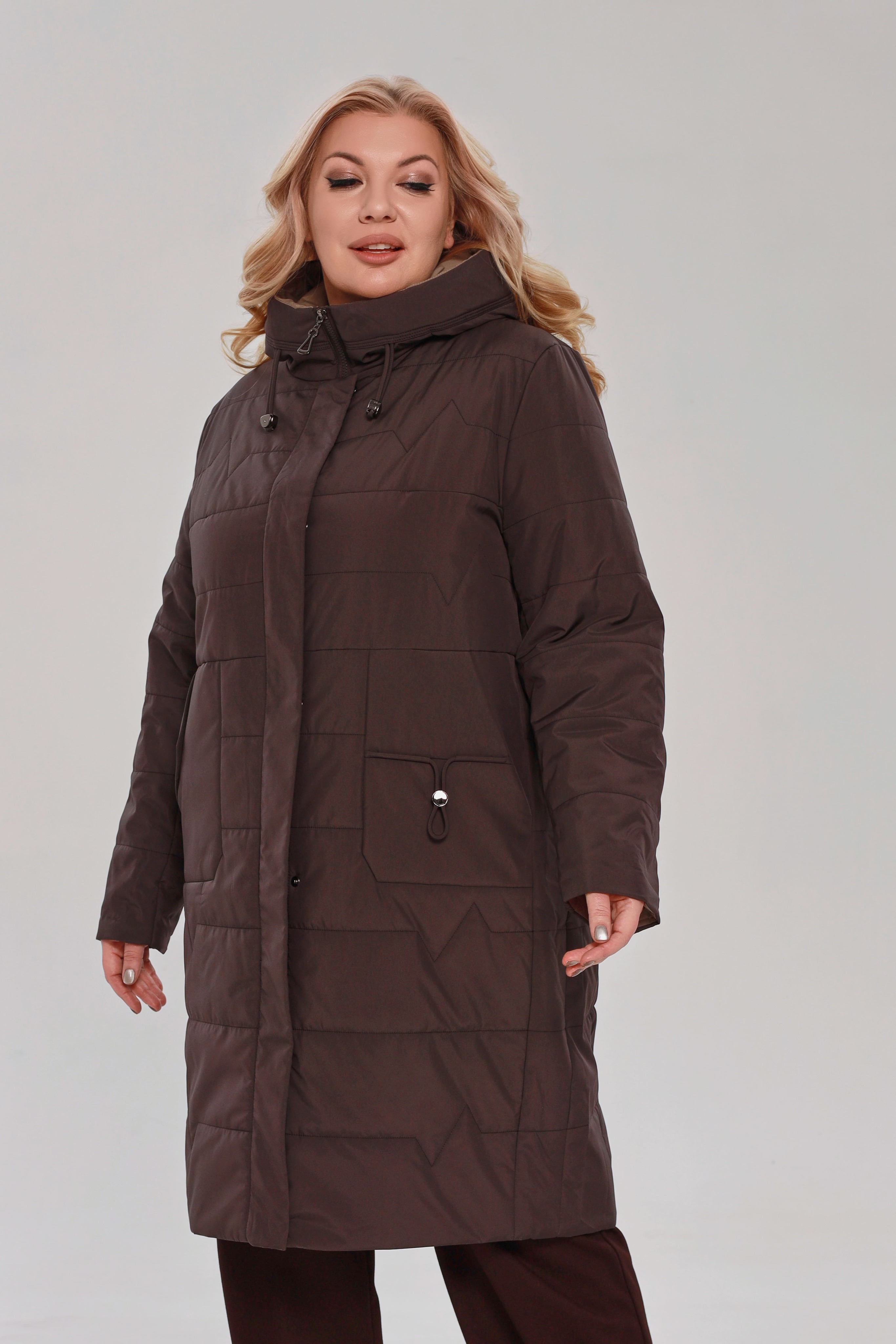 Куртка стеганная удлиненная с карманами серо-коричневый