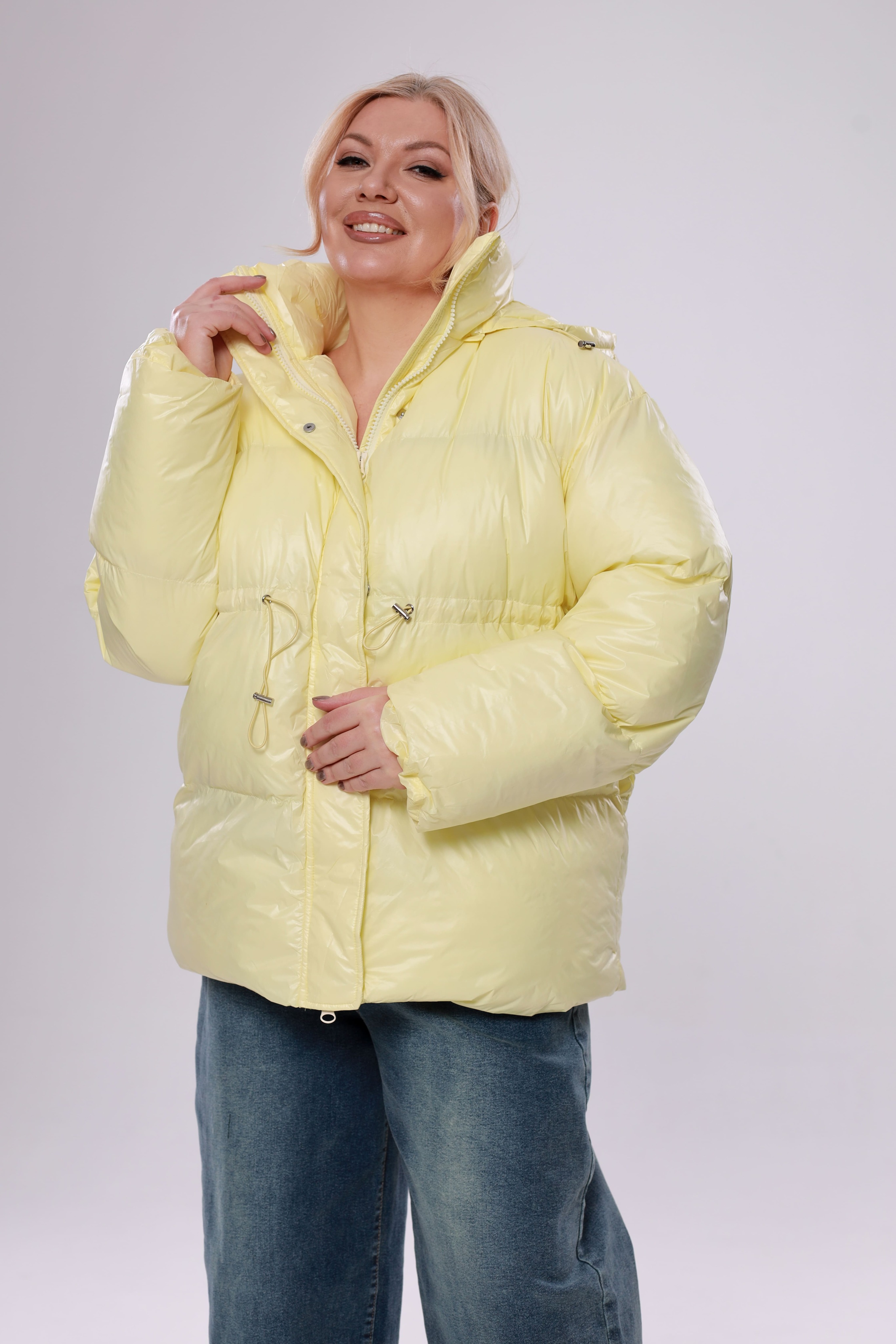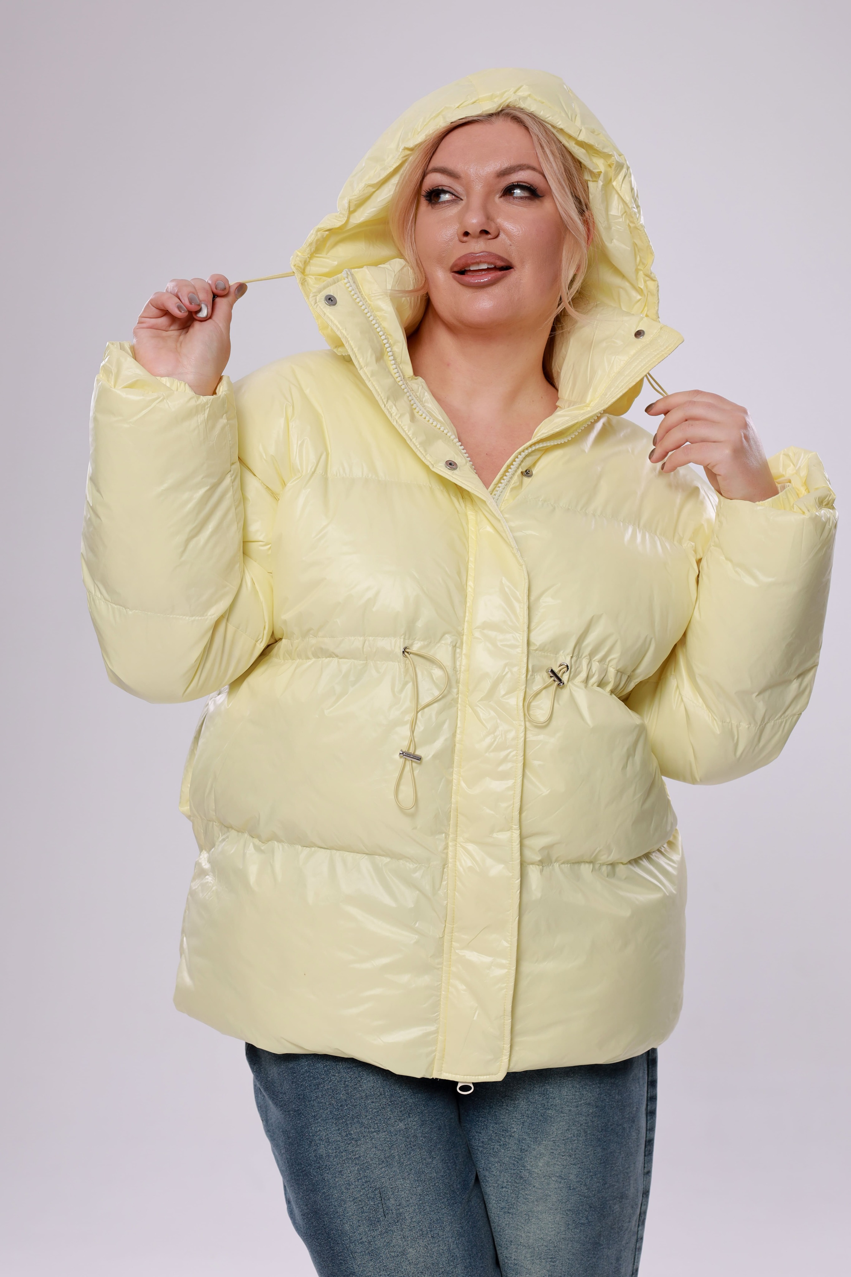 Куртка стеганная с завязкой и кнопками светло-желтый