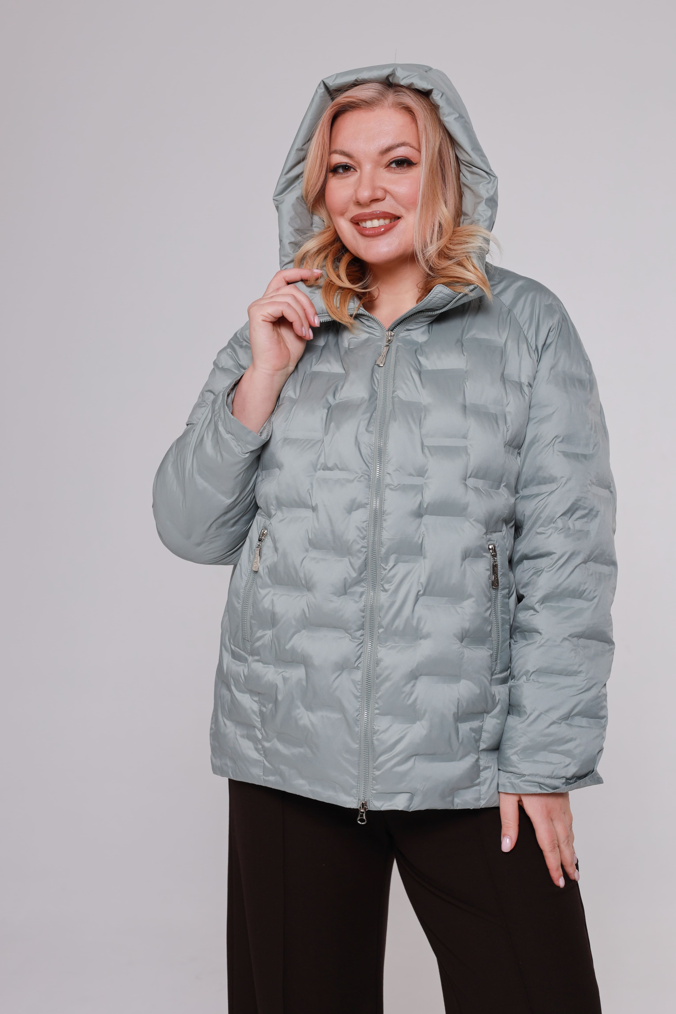 Стильная стеганая куртка. объемный капюшон хорошо защищает от ветра. модель прямого кроя, застёгивается спереди на двойную молнию. имеет рукава-реглан полной длины. по бокам практичные карманы с листочками и декоративной молнией. благодаря достаточно свободному силуэту, куртка комфортно сидит и не сковывает движений. в прохладную погоду куртка не только защитит от холода, но и поможет остаться стильной и женственной. будет отлично смотреться с джинсами и кроссовками.