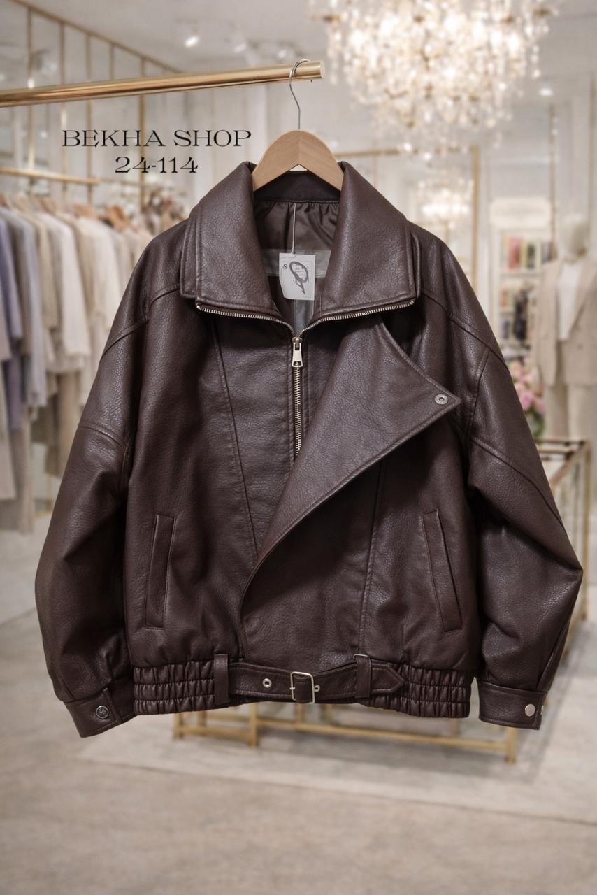 стильная укороченная куртка из эко-кожи в шоколадном цвете с молнией и поясом — идеальна для модных образов. Размер: s (42-44) m (46-48) l (50-52)