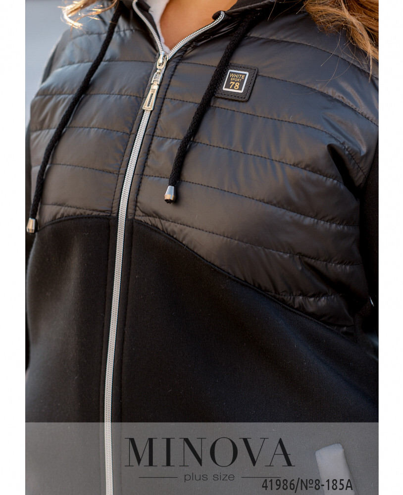 Удобная повседневная куртка с подкладкой на месте простёганных частей. капюшон изнутри мягкий, снаружи гладкий. сзади на подоле шлица с декоративной лентой. застёгивается на молнию спереди по центру. капюшон с пропущенным шнурком. сбоку на рукавах декоративные лампасы. по бокам - врезные карманы.