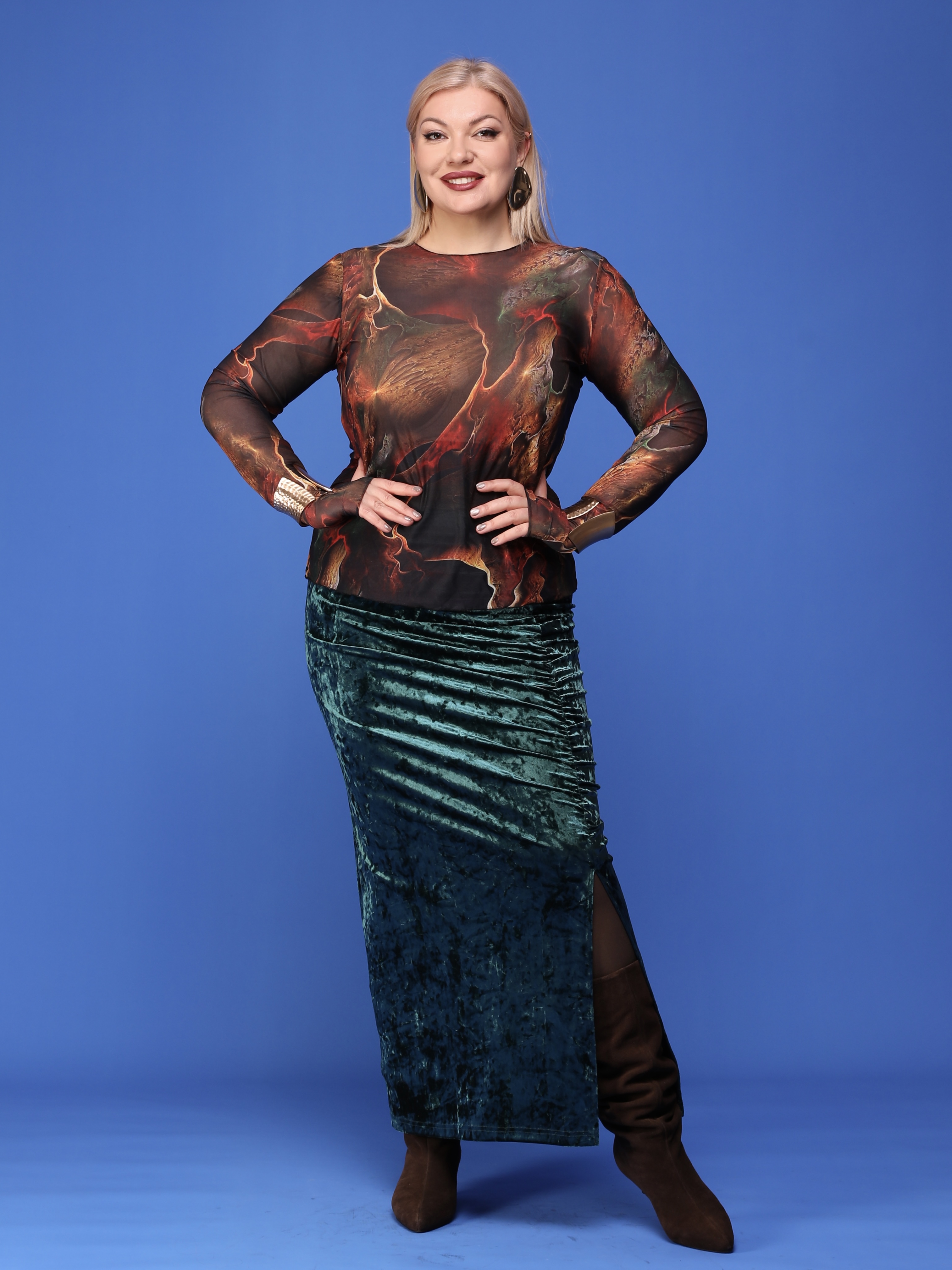 Лаконичный лонгслив из мягкого фатина имеет круглый вырез и удлиненные рукава с вырезом для пальцев, что добавляет дополнительный комфорт. обтягивающий крой и уникальный фасон делают его стильным выбором, подчеркивая фигуру. базовая модель сочетается со всеми элементами гардероба. материал с добавлением эластичных волокон хорошо тянется, тем самым не сковывает движений. актуальный принт добавляет динамичности. мягкий, приятный телу материал подарит комфорт на весь день. вы можете комбинировать лонгслив как с юбками различной длины, так и с брюками и джинсами. лонгслив идеально подходит для создания трендовых образов.