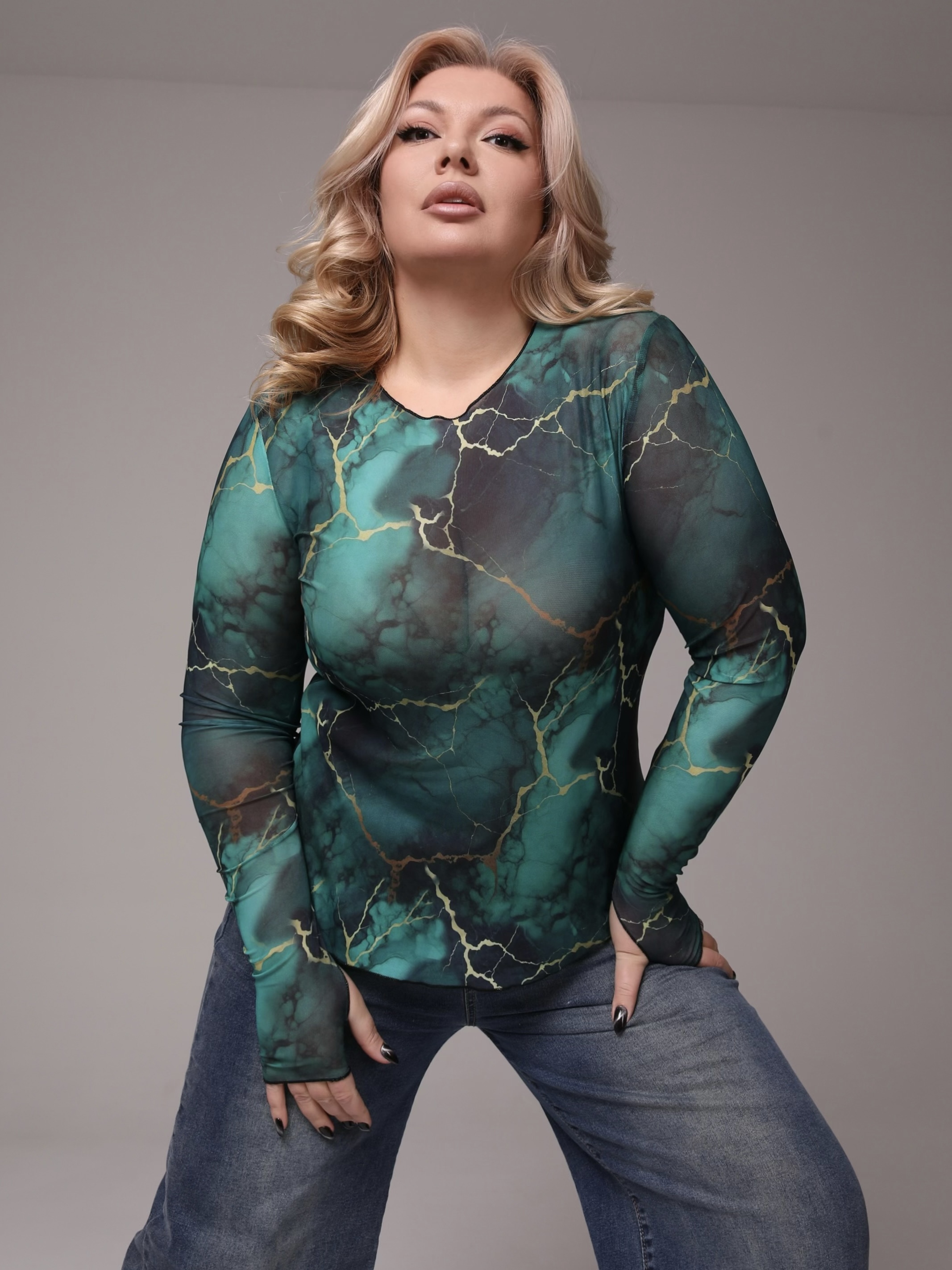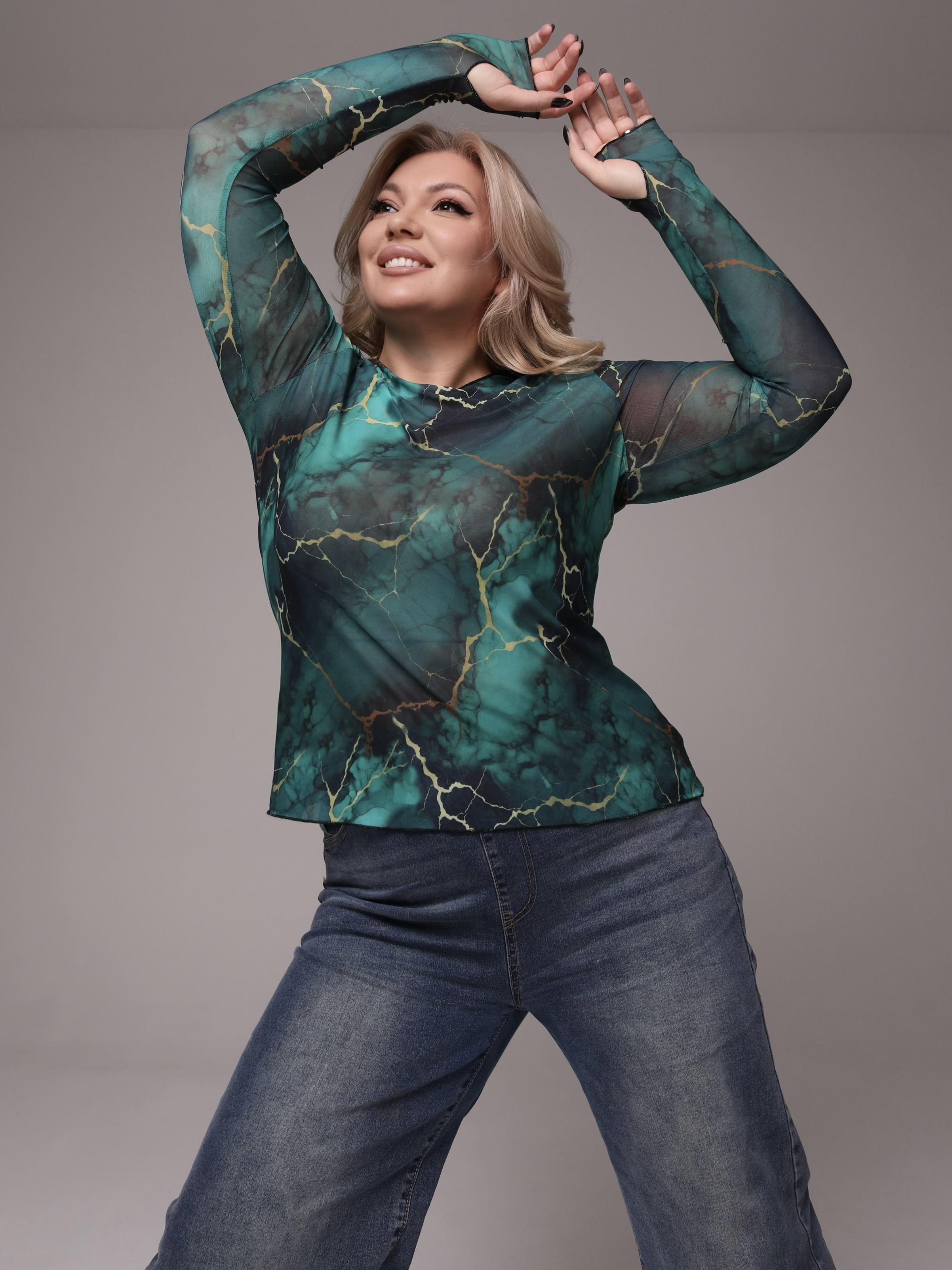 Лаконичный лонгслив из мягкого фатина имеет круглый вырез и удлиненные рукава с вырезом для пальцев, что добавляет дополнительный комфорт. обтягивающий крой и уникальный фасон делают его стильным выбором, подчеркивая фигуру. базовая модель сочетается со всеми элементами гардероба. материал с добавлением эластичных волокон хорошо тянется, тем самым не сковывает движений. актуальный принт добавляет динамичности. мягкий, приятный телу материал подарит комфорт на весь день. вы можете комбинировать лонгслив как с юбками различной длины, так и с брюками и джинсами. лонгслив идеально подходит для создания трендовых образов.