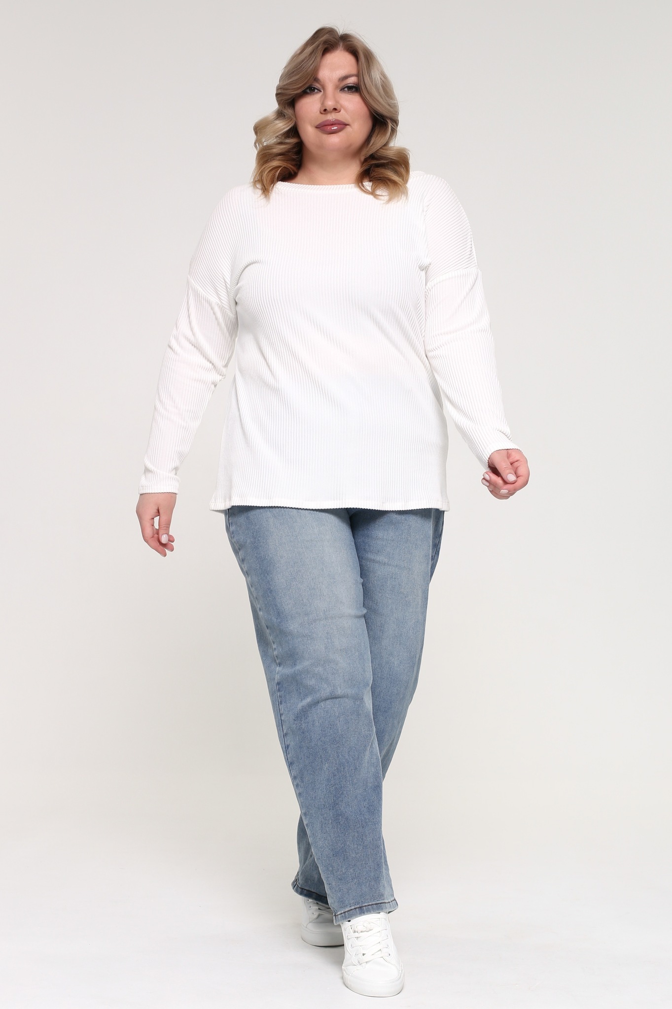 Лонгслив однотонный "лапша" белый