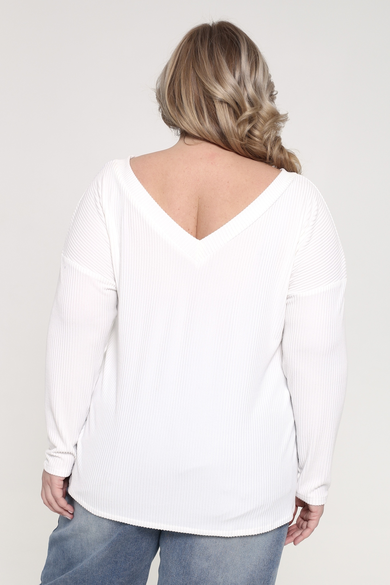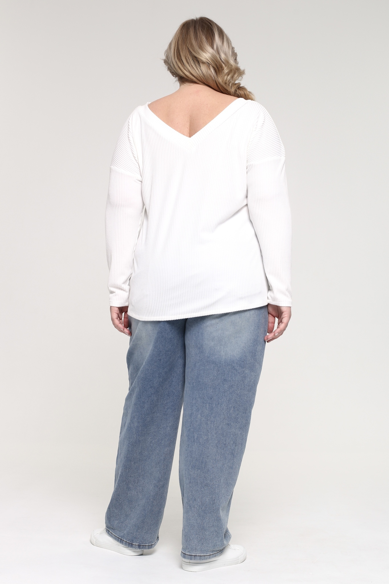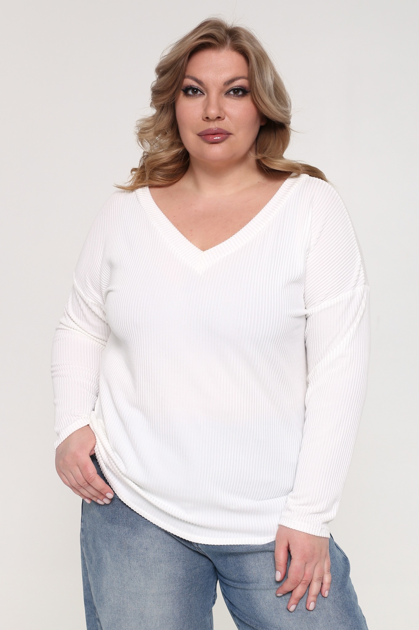 Лонгслив из мягкого трикотажного материала в рубчик отличается женственным v-образным вырезом и приспущенными рукавами полной длины. полуприлегающий силуэт изящно подчёркивает фигуру, а фактурная вязка добавляет динамике. однотонная классическая модель будет актуальна на протяжении многих сезонов, сохраняя свой безупречный внешний вид. этот универсальный элемент гардероба прекрасно сочетается с узкими брюками и юбками, обеспечивая комфорт и уют на протяжении всего дня благодаря приятному на ощупь материалу.