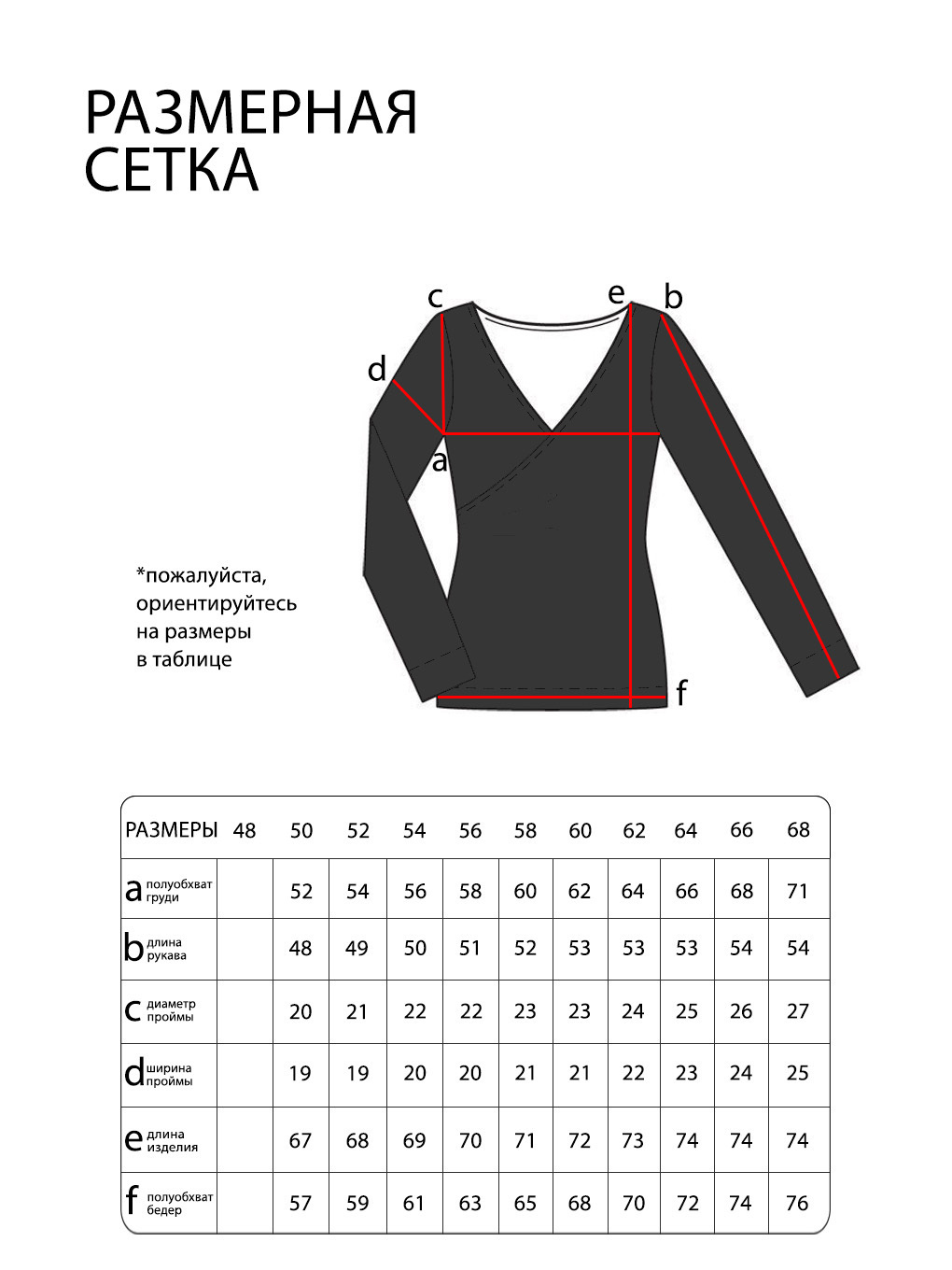 Просим обратить внимание, что в таблице приведены замеры фигуры, а не изделия.