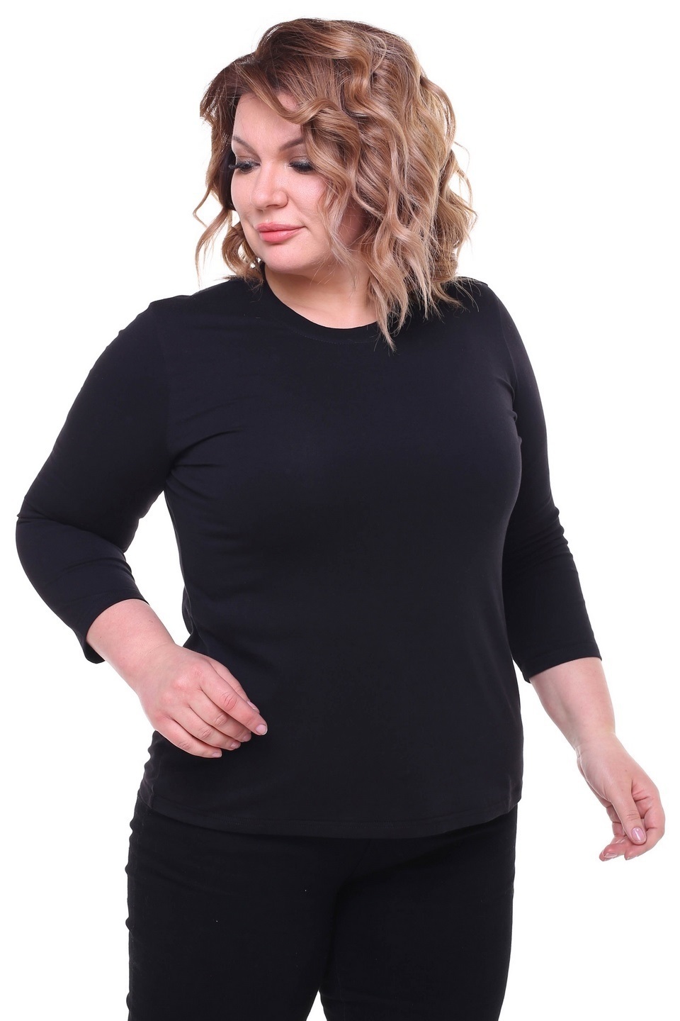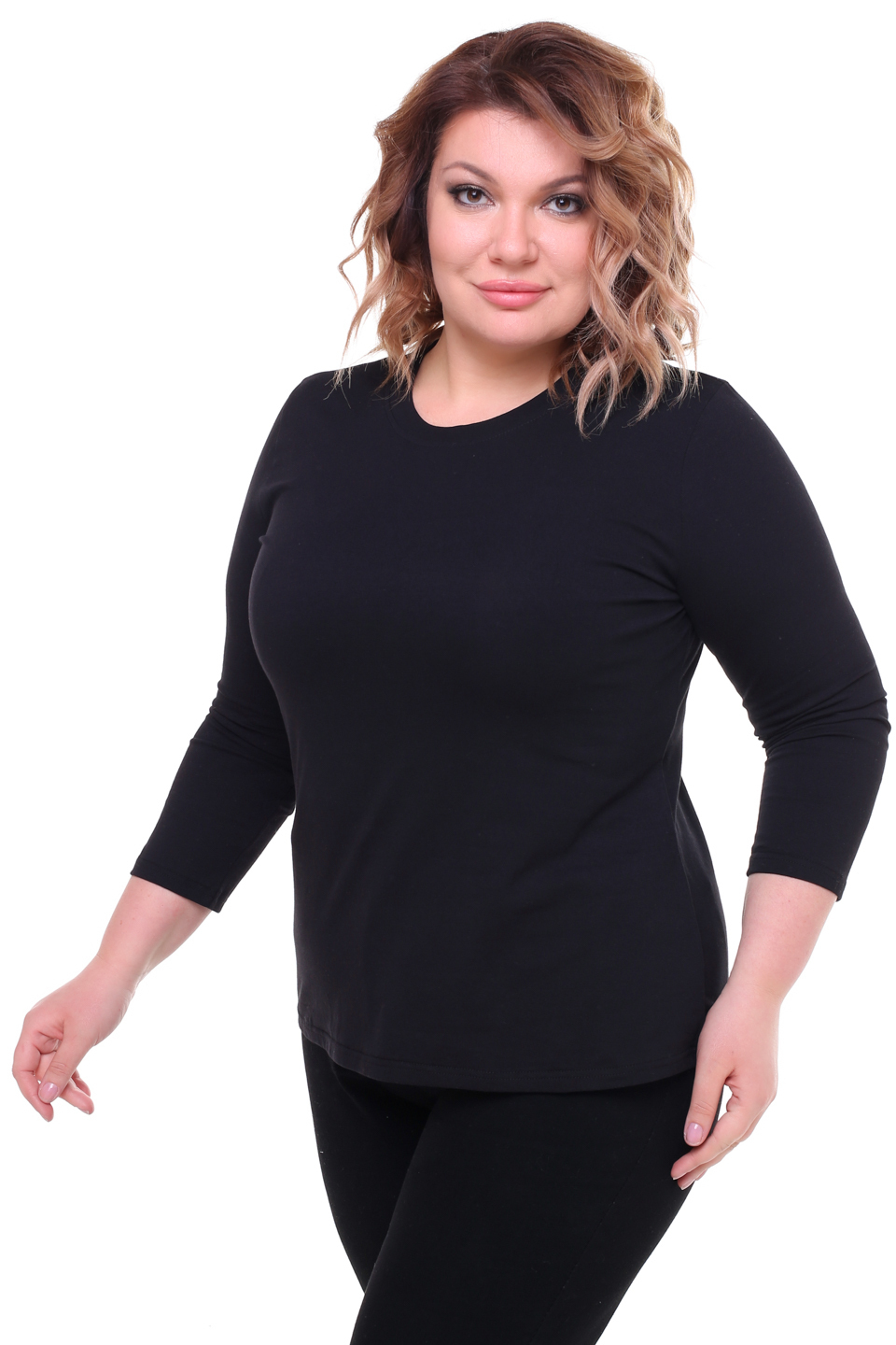 Стильный женский лонгслив из мягкого материала. модель имеет классический круглый вырез и рукава длиной 3/4. модель приятна для тела, хорошо сидит и красиво обыгрывает фигуру. вы можете носить его с юбками различной длины, брюками и джинсами. такая универсальная модель подходит ко всему, а приятный на ощупь материал обеспечивает комфорт и уют на весь день.
