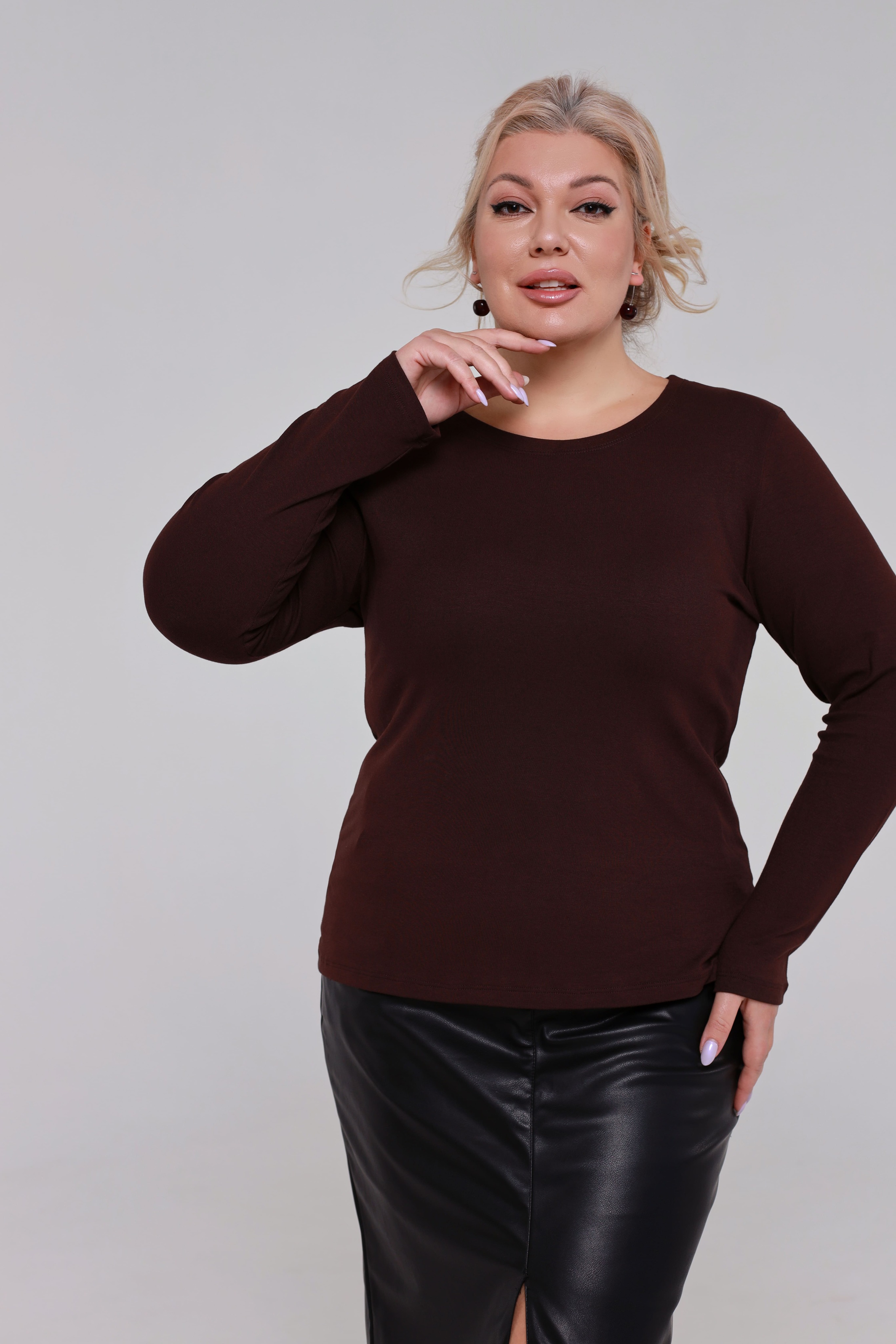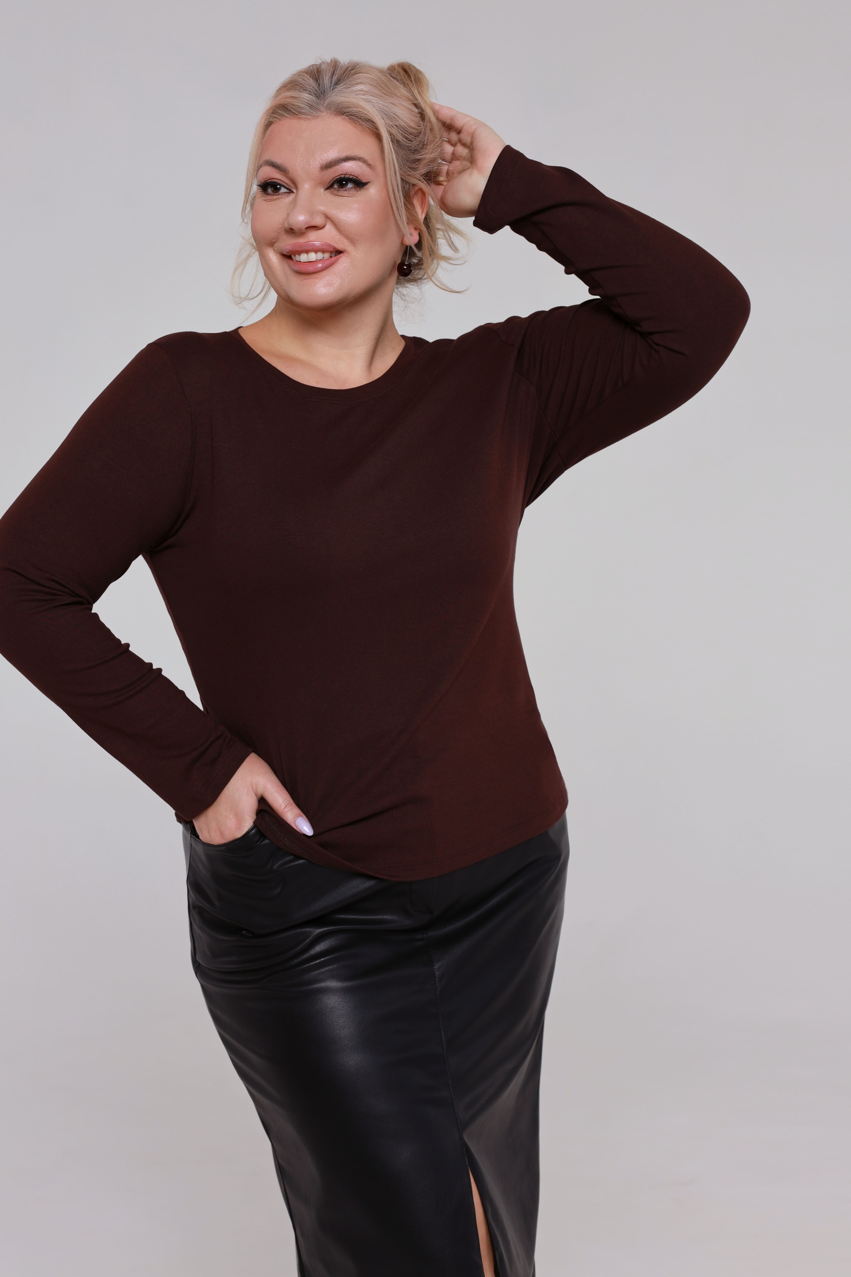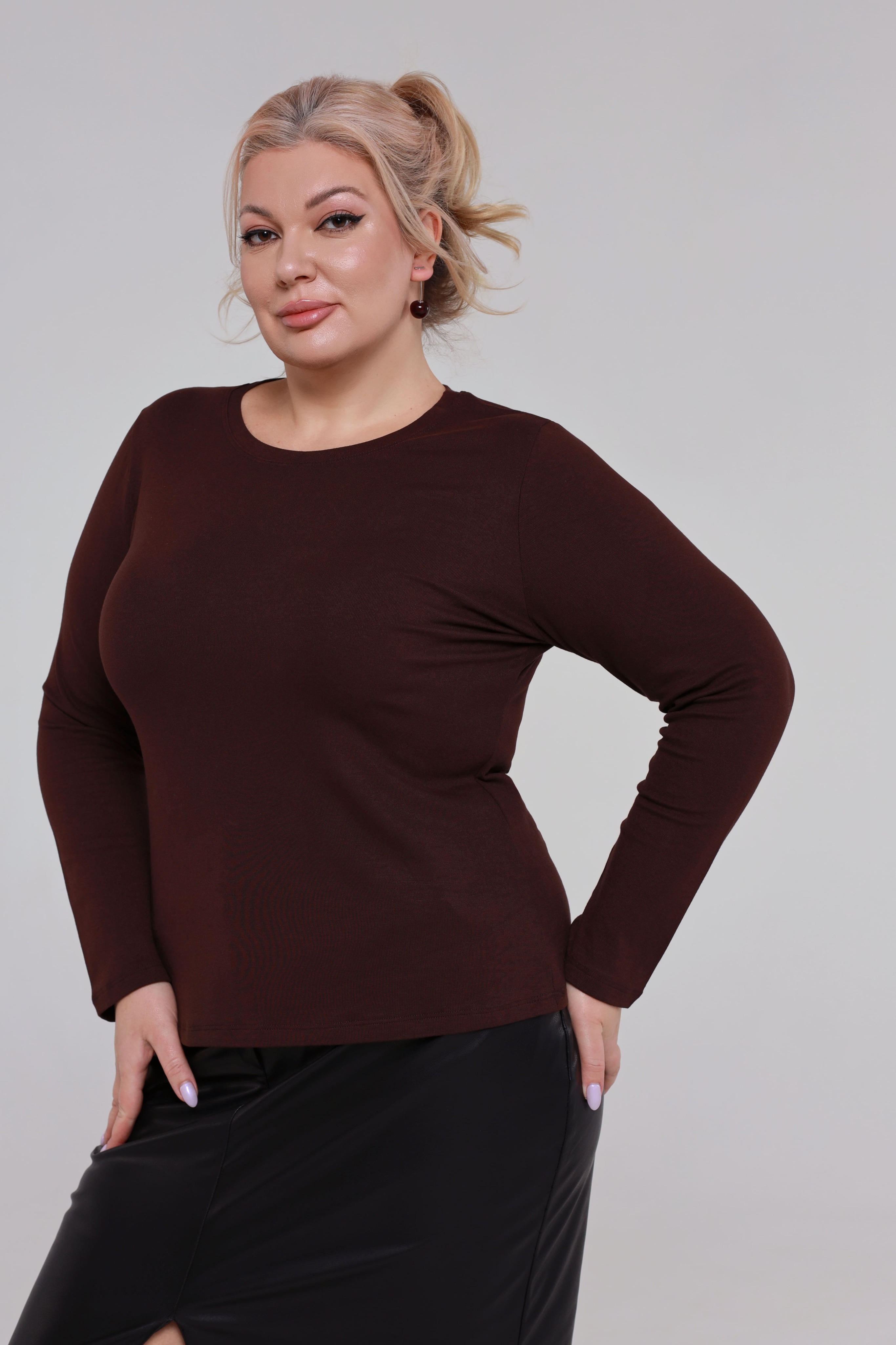 Лонгслив однотонный коричневый