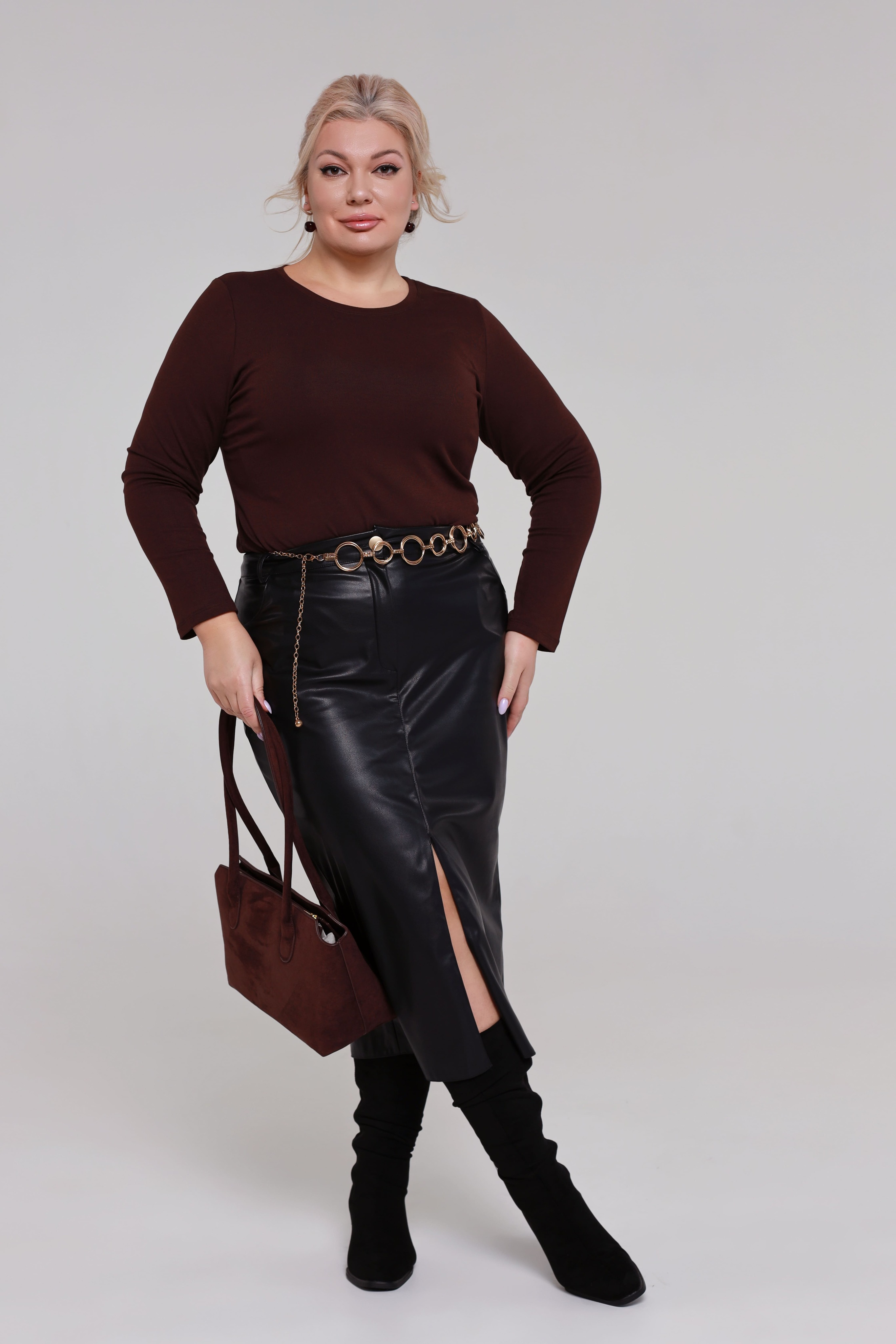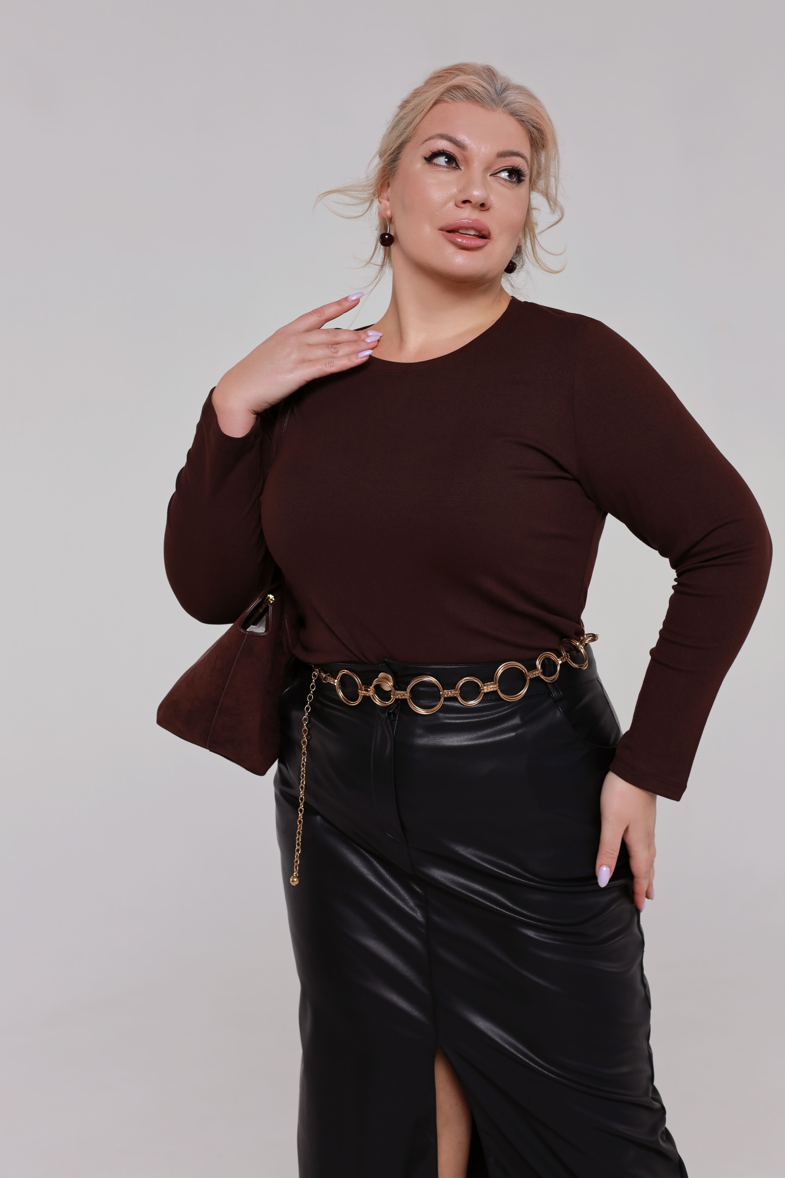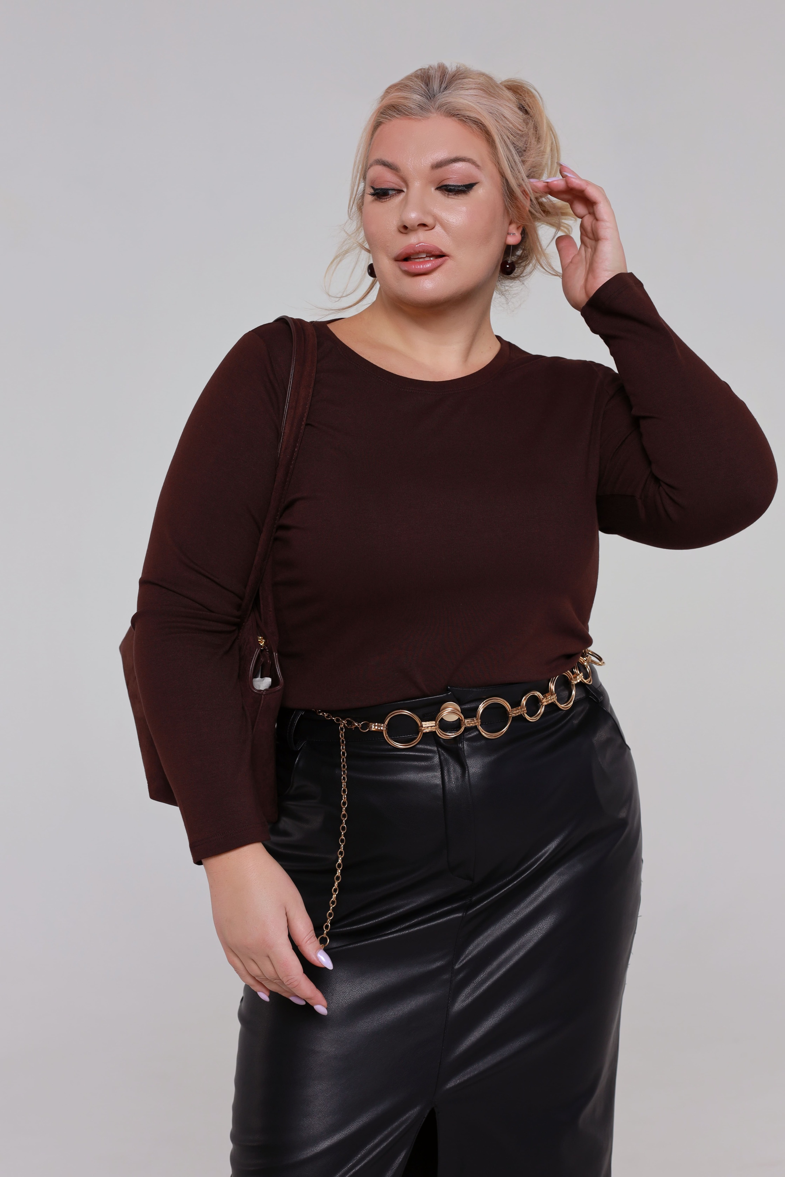 Лонгслив однотонный коричневый