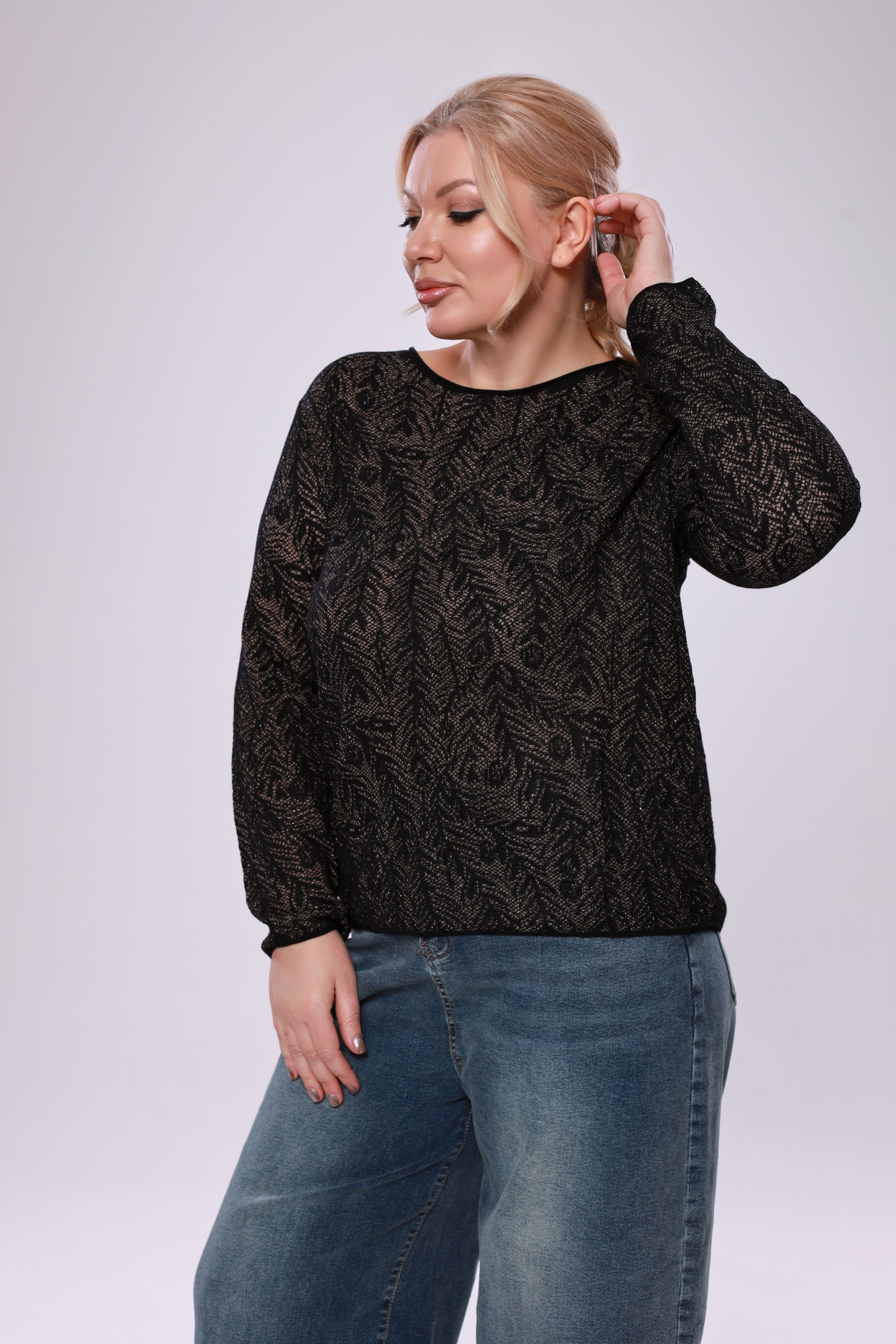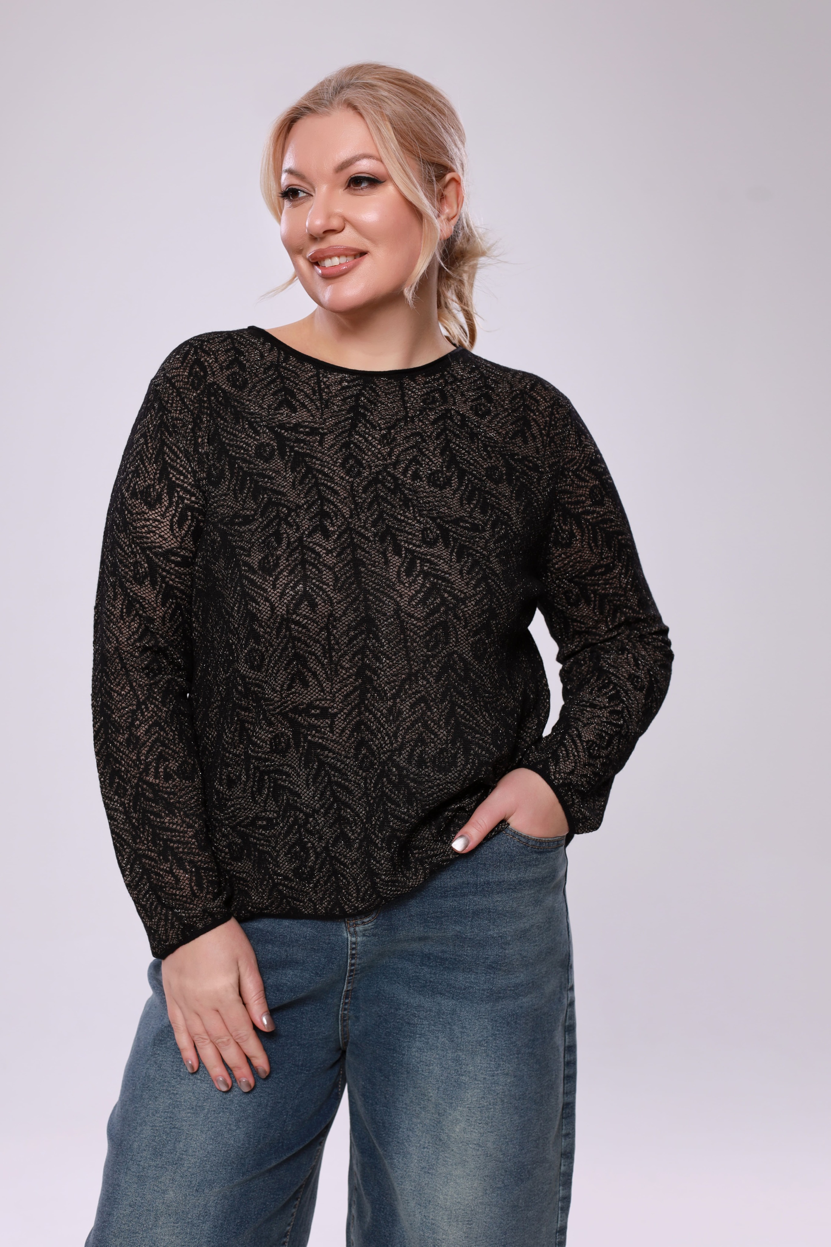 Элегантный лонгслив полуприлегающего силуэта выполнен из мягкого трикотажа с декоративной сеткой, создавая современный и женственный образ. круглая горловина обработана довязом как и втачной рукав, обеспечивая удобную посадку и аккуратный внешний вид. модель формирует аккуратный приталенный силуэт, мягко подчёркивает фигуру и обеспечивает комфорт в течение дня. трикотажная ткань приятна к телу, хорошо тянется и сохраняет форму, делая изделие удобным для ежедневной носки. по переду и по спинке на сетке выполнены декоративные рельефы, которые визуально вытягивают силуэт и добавляют выразительность образу. универсальная модель отличный выбор для женщин, ценящих комфорт, стиль и красивую посадку.
