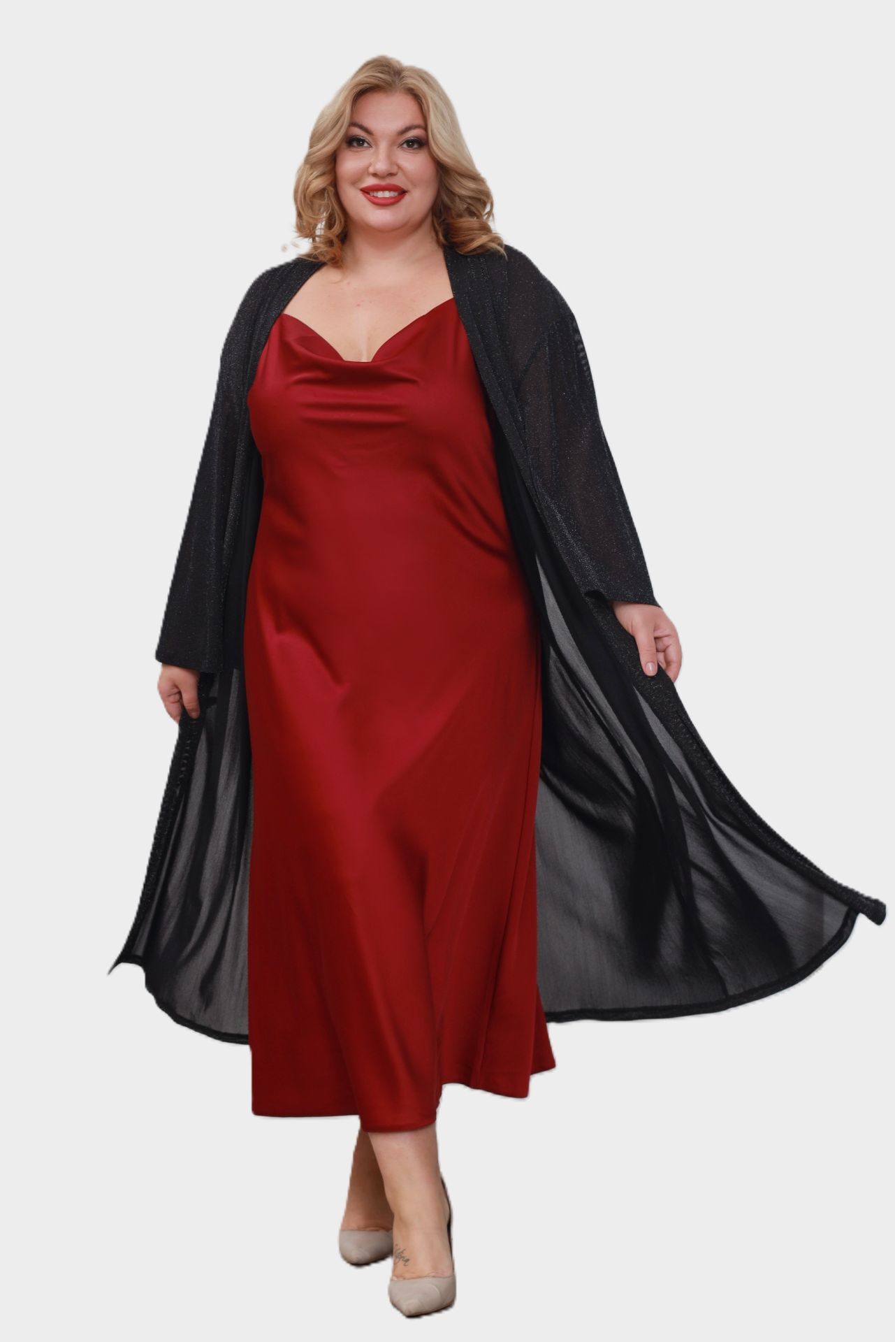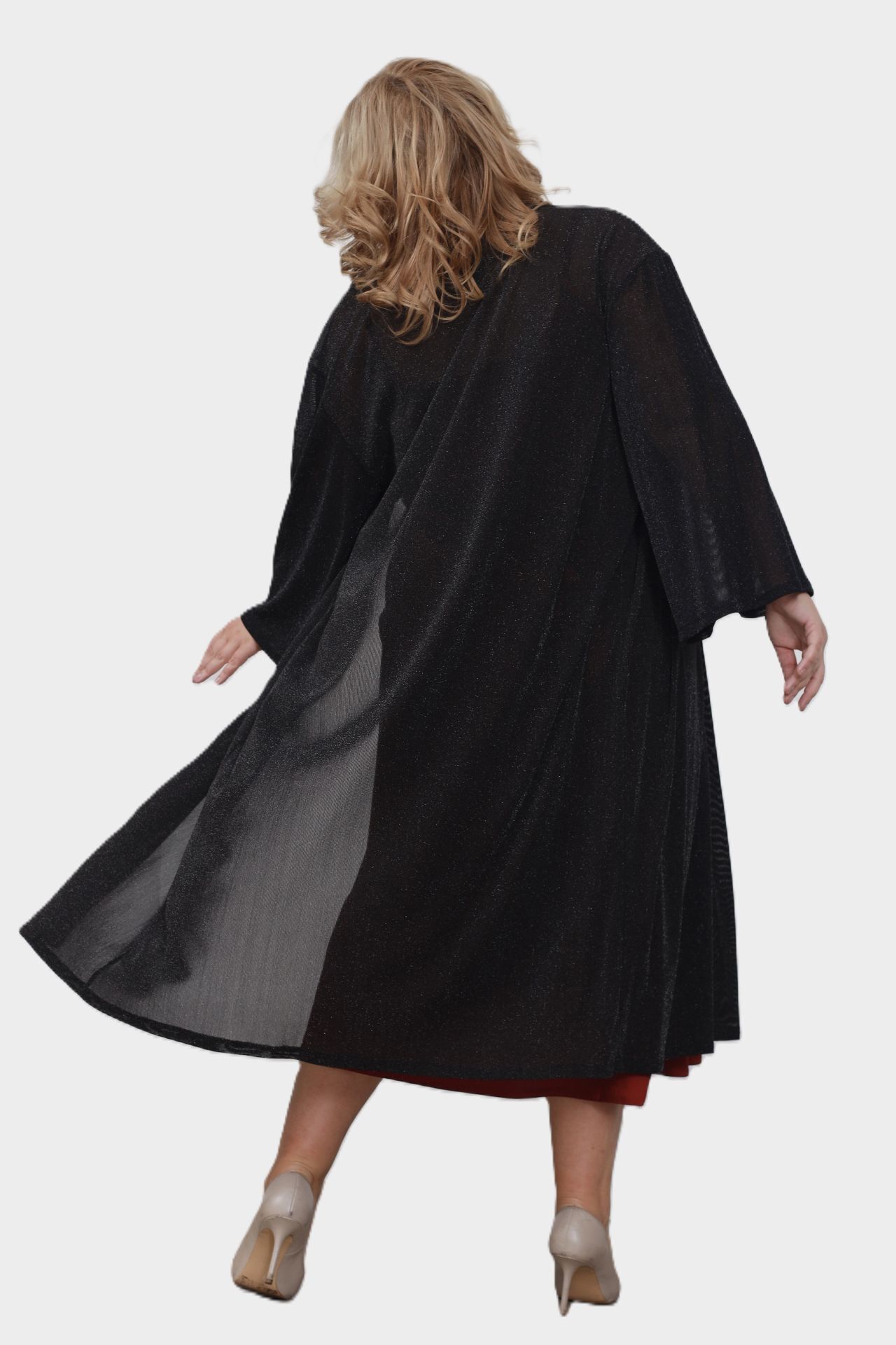 Элегантная накидка изготовлена из легкого шифона. изысканный крой с просторными рукавами длиной до запястья обеспечивает свободу движений и комфорт. распашной силуэт позволяет легко надевать кардиган через голову. глубокие разрезы по бокам придают образу женственность и легкость. тонкий пояс может подчеркнуть талию при желании. эта вещь маскирует мелкие недостатки фигуры, а однотонная палитра гармонично сочетается с различными базовыми оттенками, создавая стильный и эффектный образ.