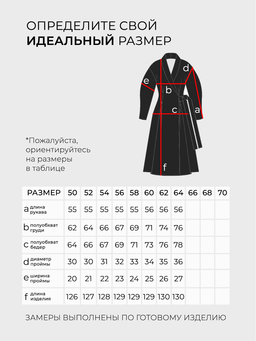 Просим обратить внимание, что в таблице приведены замеры фигуры, а не изделия.