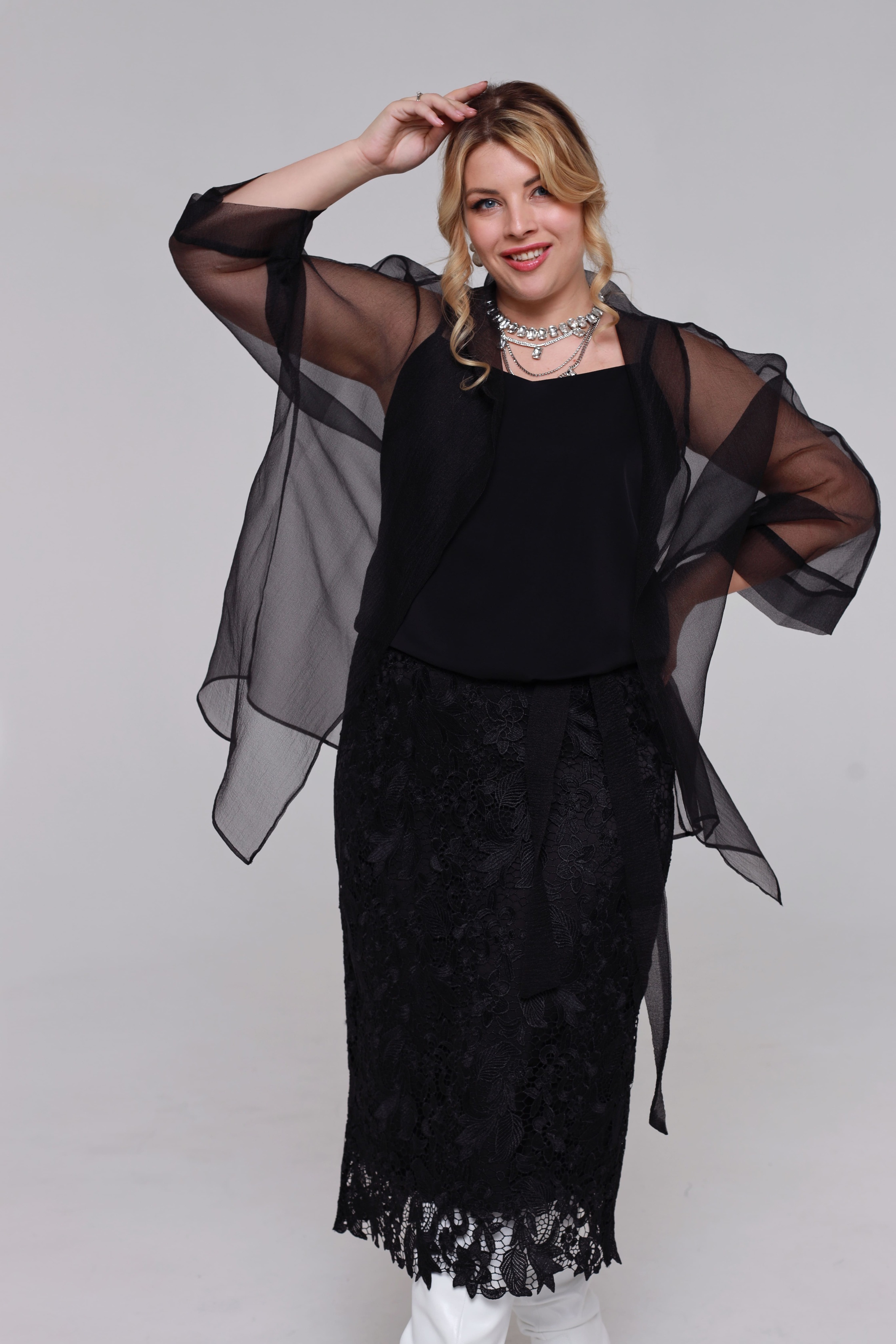 Нежная накидка свободного кроя из мягкой органзы с запахом. глубокий v-образный вырез дополнен отложным воротом. цельнокроеные рукава длиной 3/4 по низу оформлены широкой планкой. тонкий и прозрачный материал, создаст неповторимый образ воздушности и подчеркнет вашу индивидуальность. накидку можно носить как в стиле оверсайз, так и с классическими образами, подчеркнув талию поясом в тон. независимо от времени года и погоды, эта накидка станет элегантным аксессуаром для любого случая.