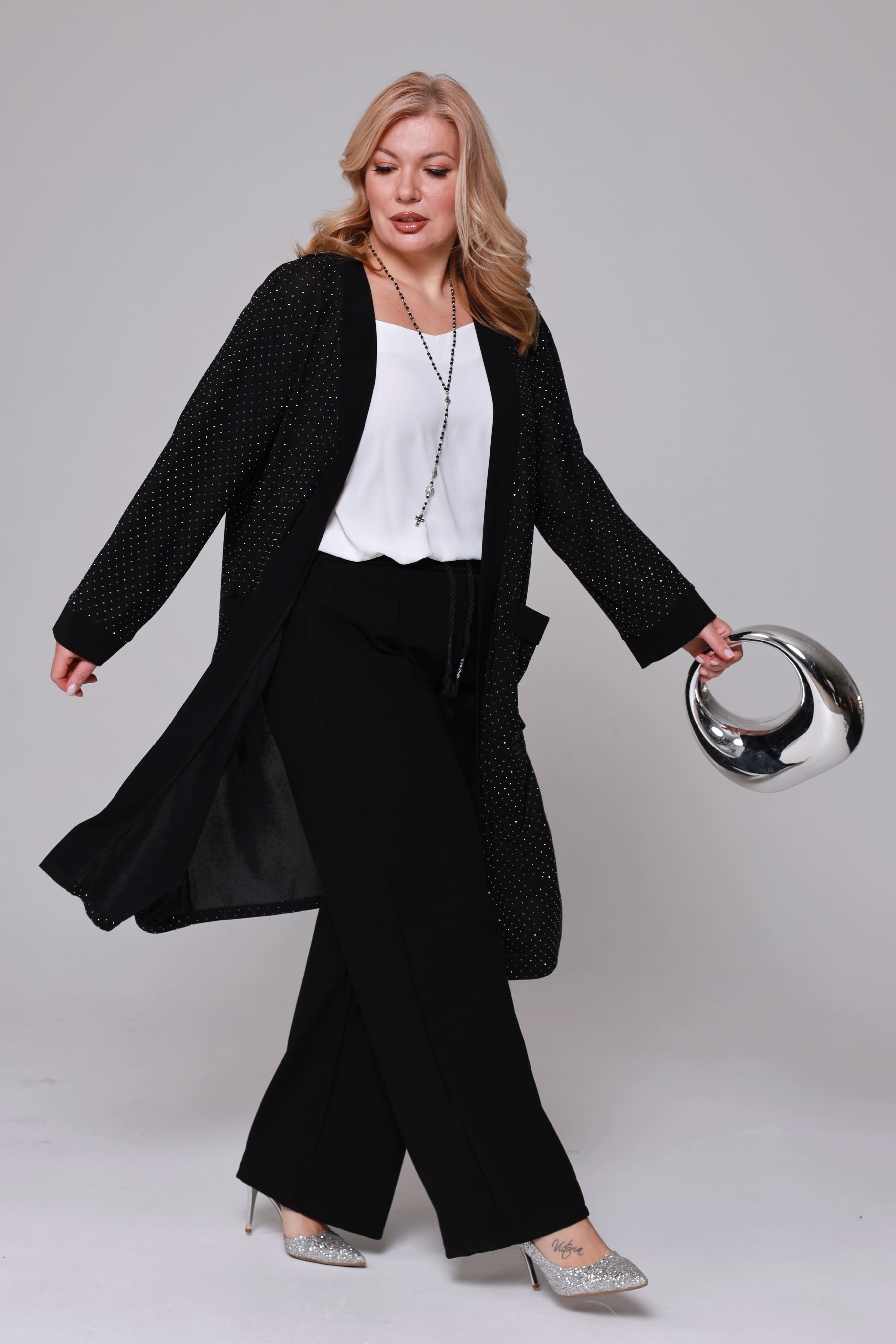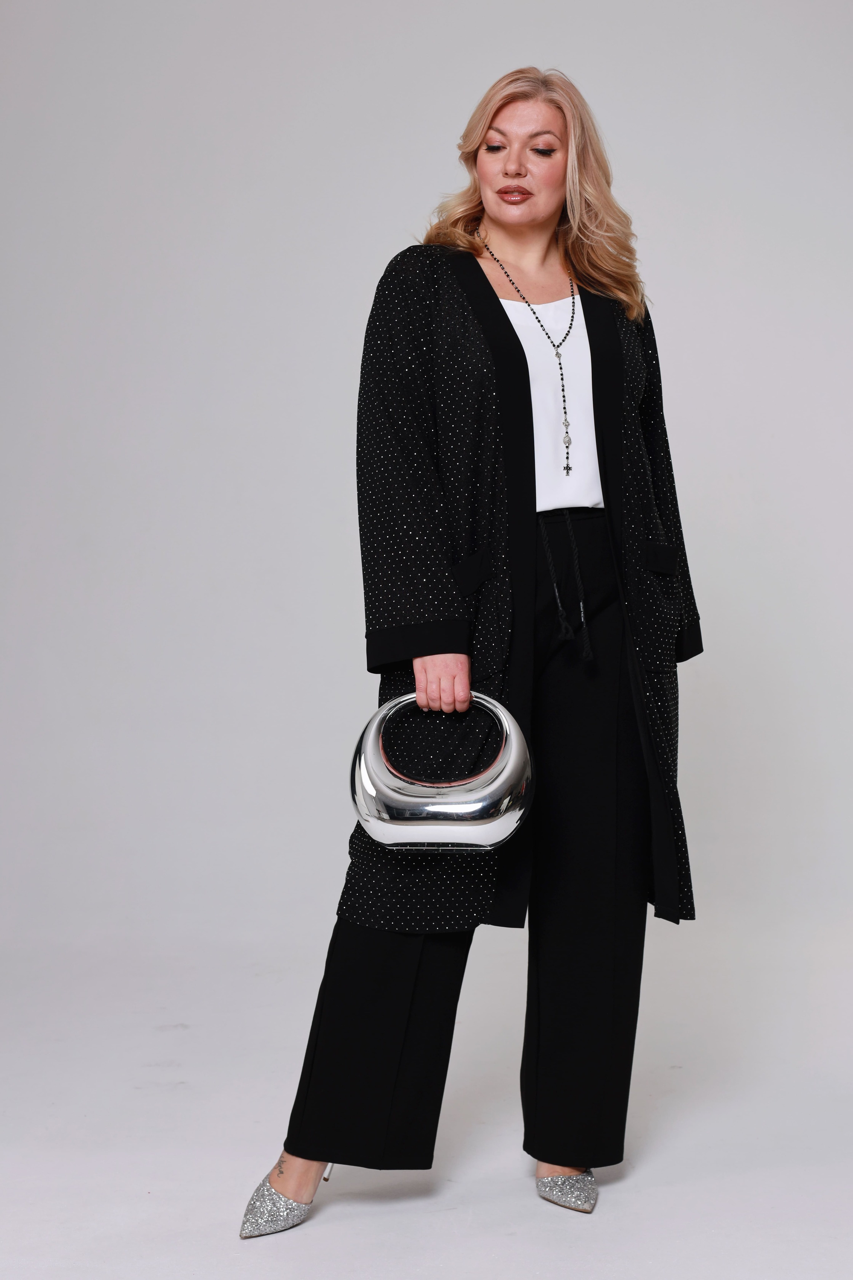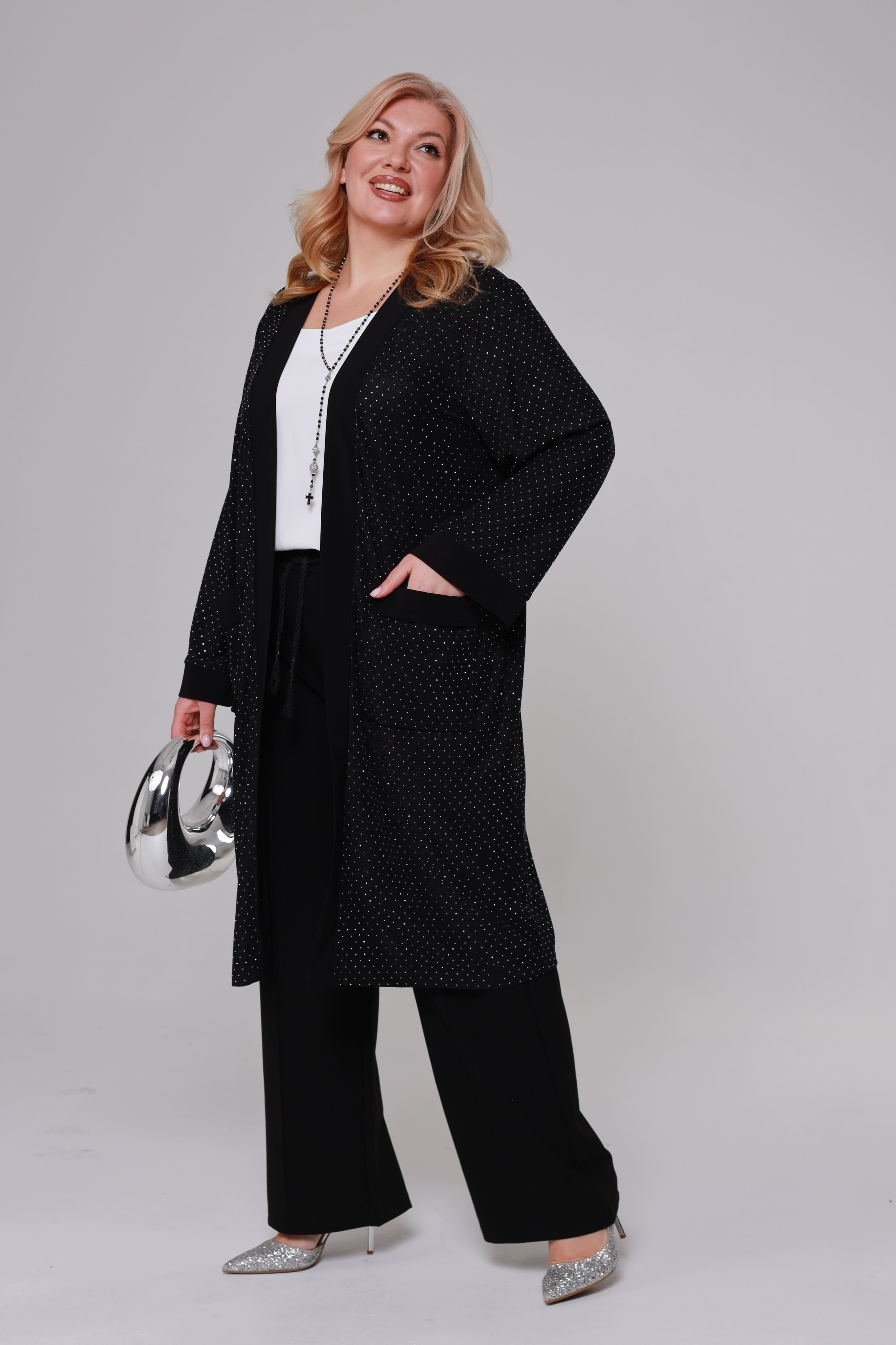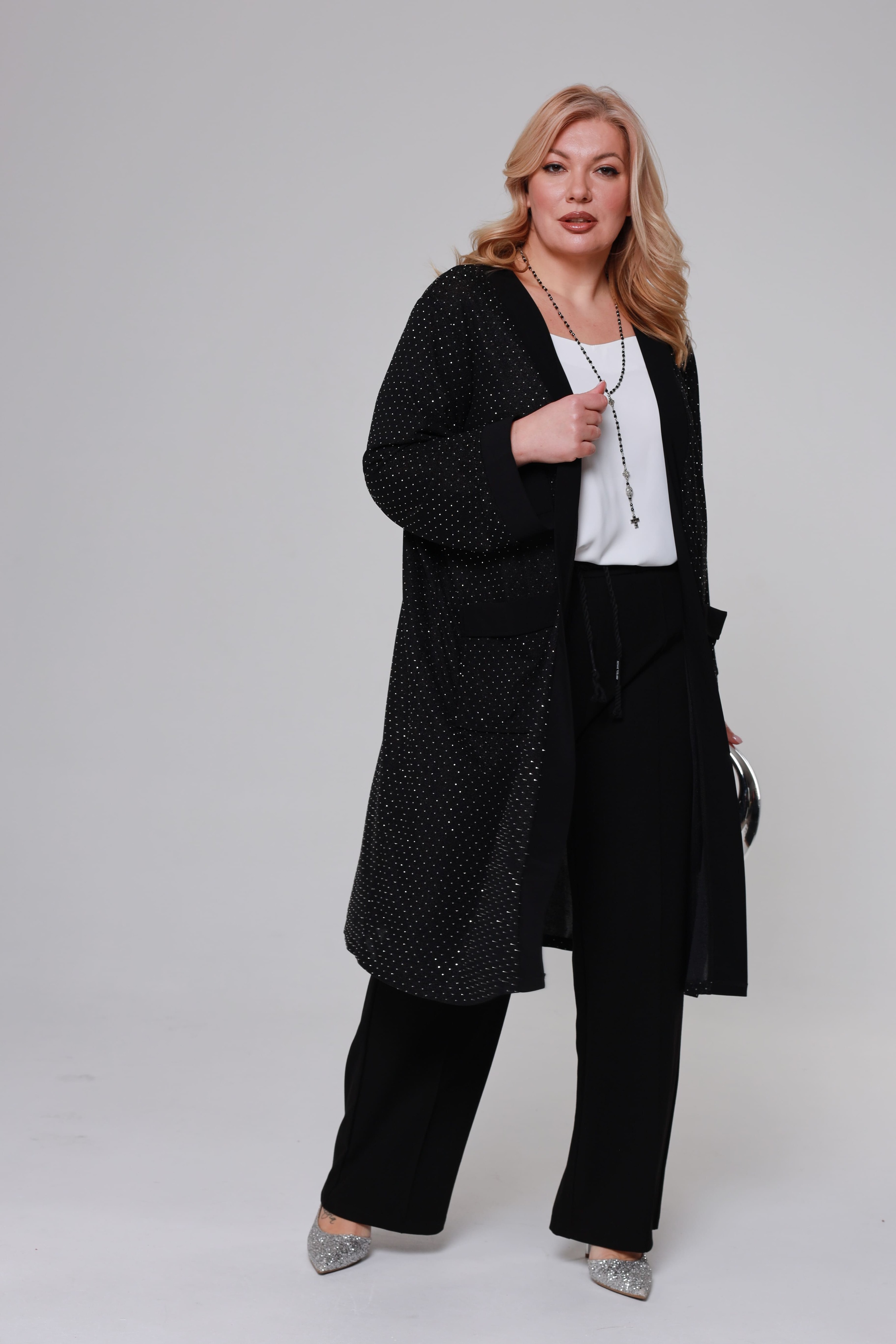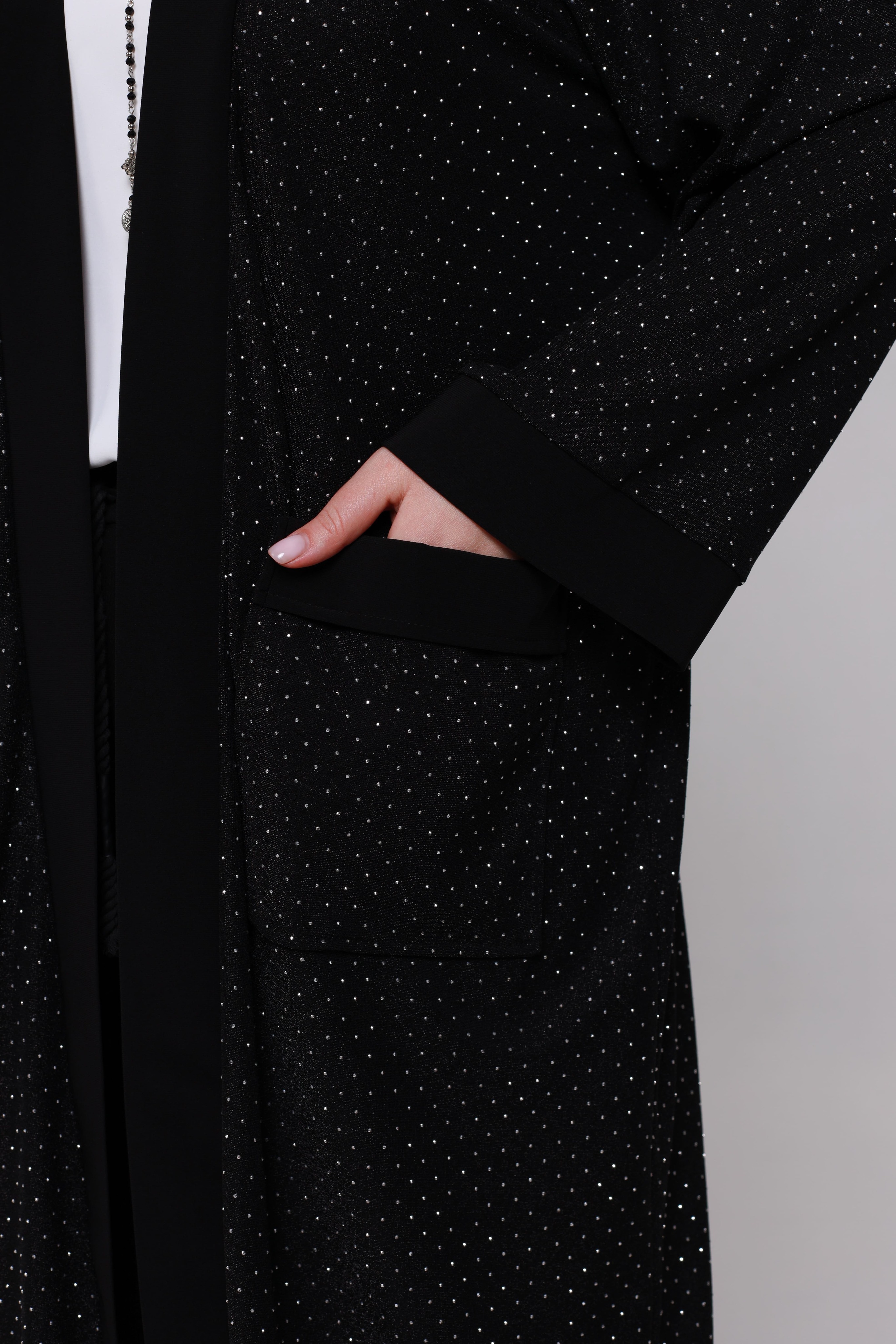 Накидка удлиненная со стразами и карманом черная