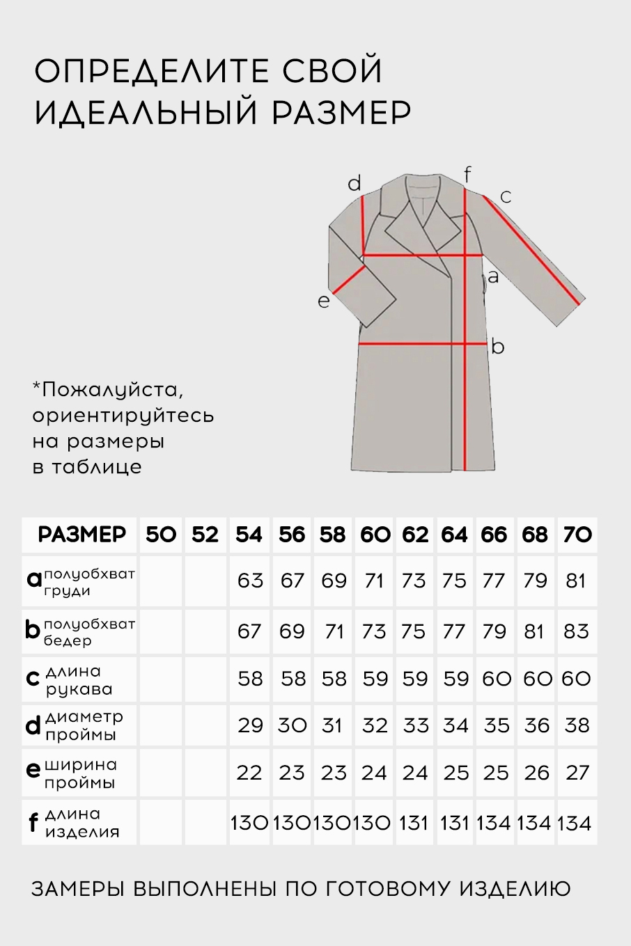 Таблица размеров