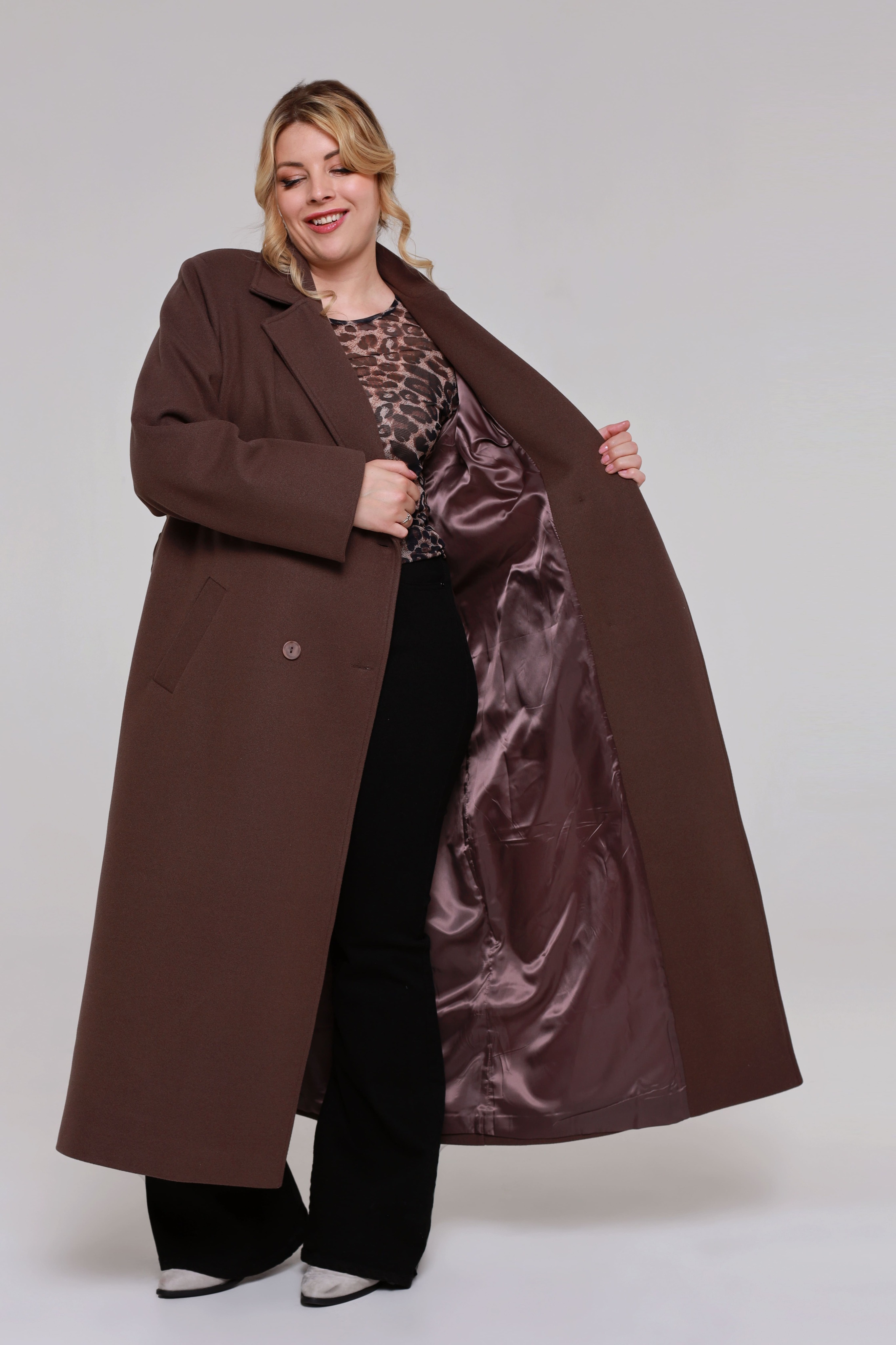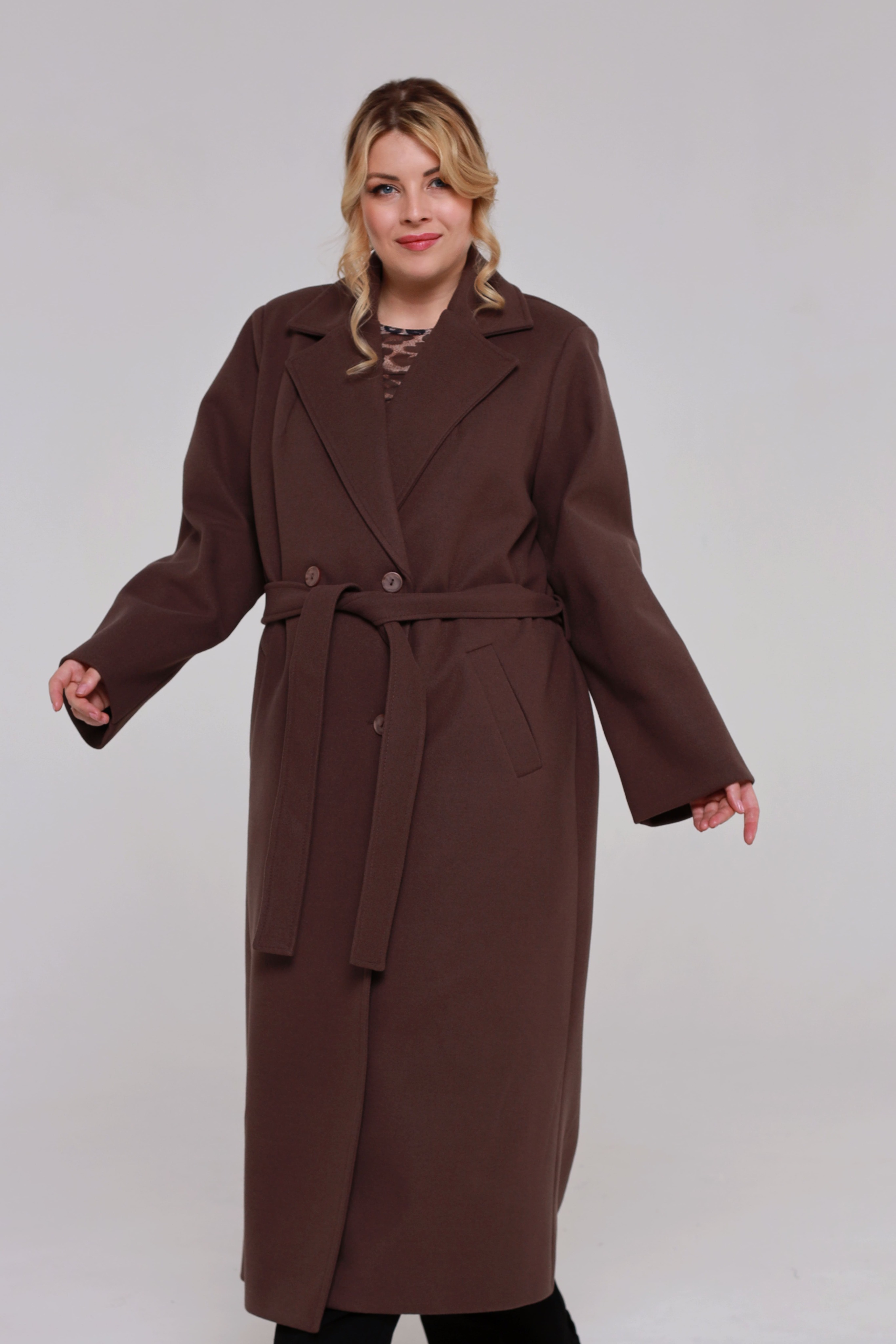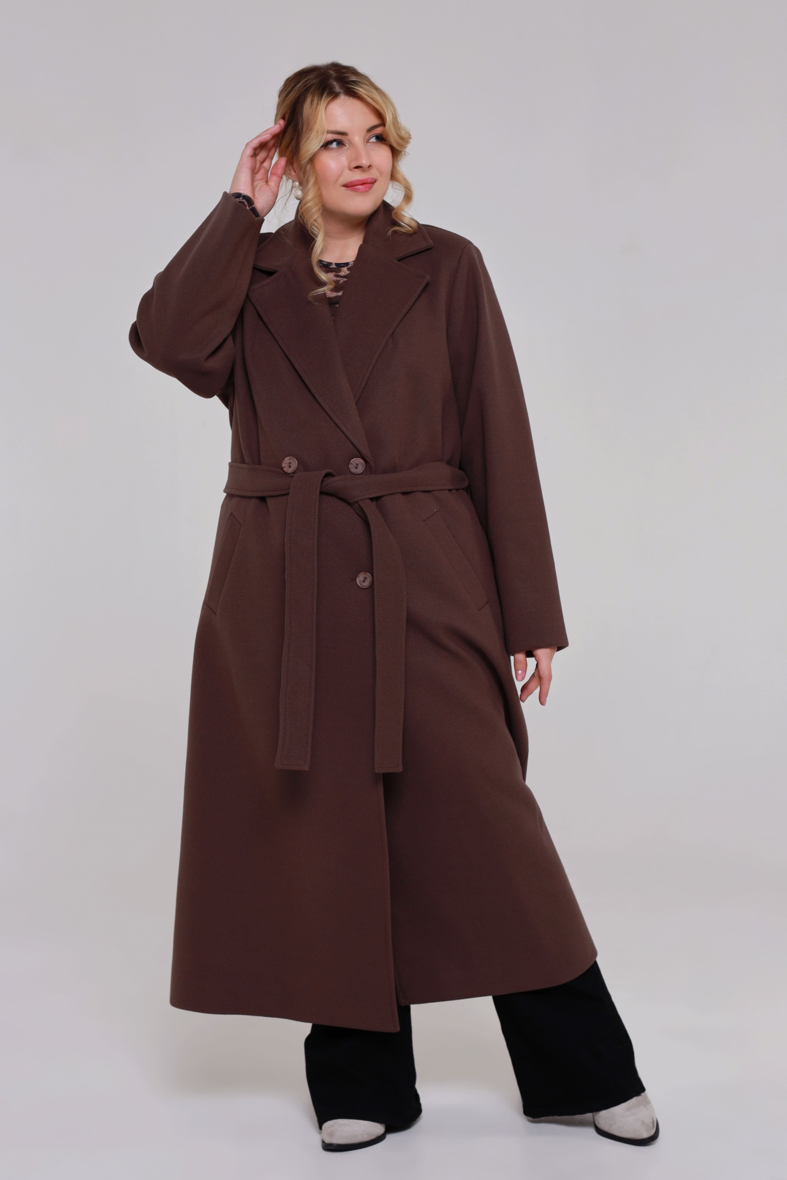 Пальто с втачным рукавом коричневое Параметры модели: Рост 173 см, Размер 54