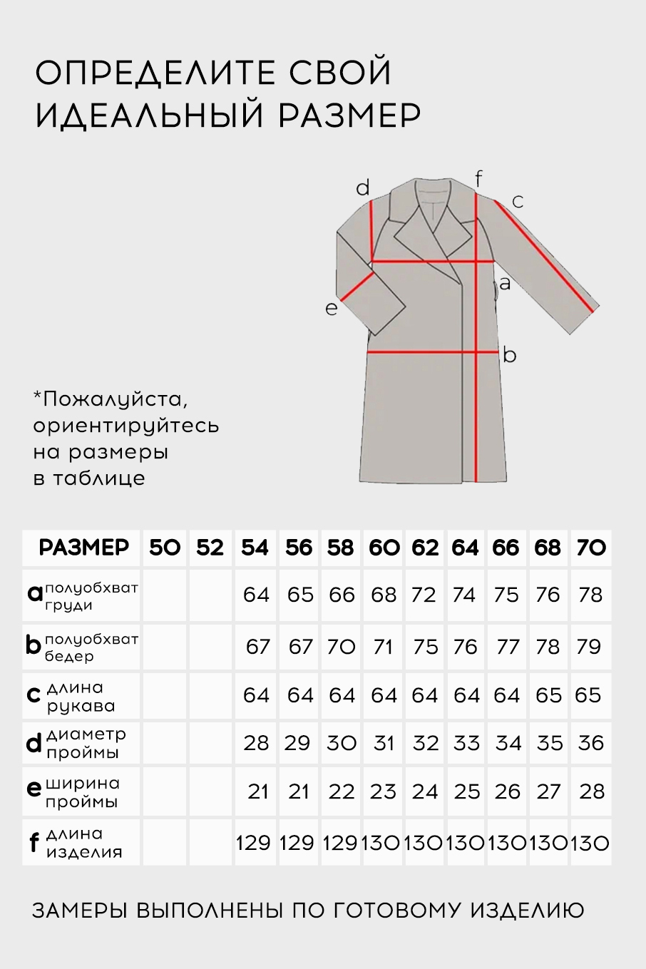Таблица размеров
