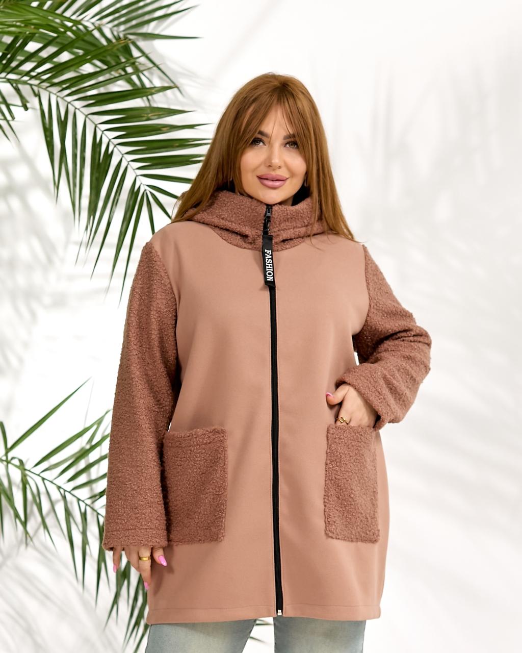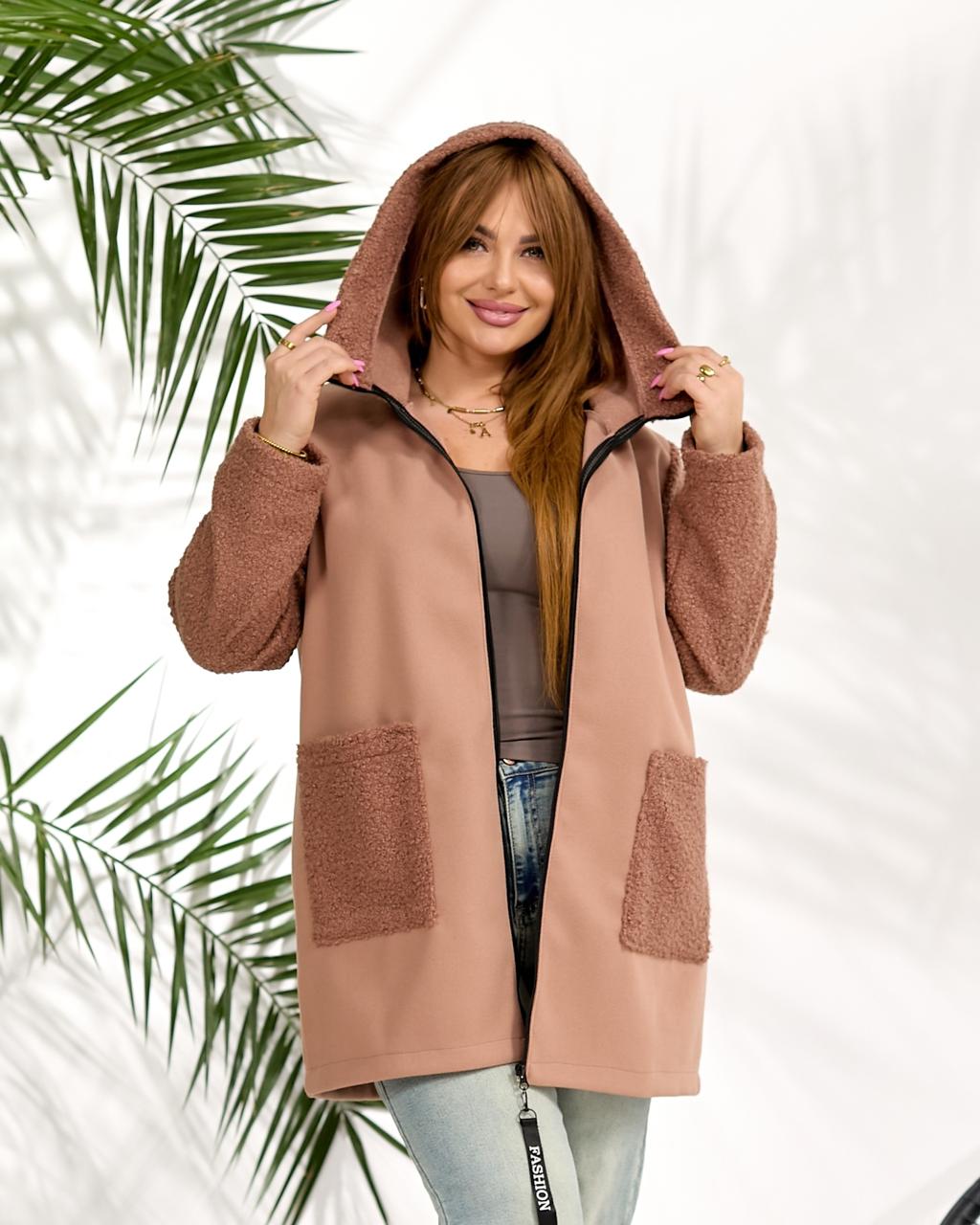 Демисезонное пальто из кашемира и букле шерсти. изделие свободного силуэта, имеет два украшенных кармана с обеих сторон, с капюшоном, застежка на молнии, рукав вшивной.