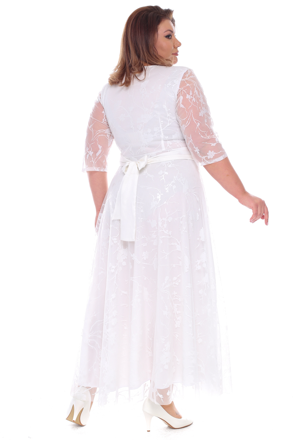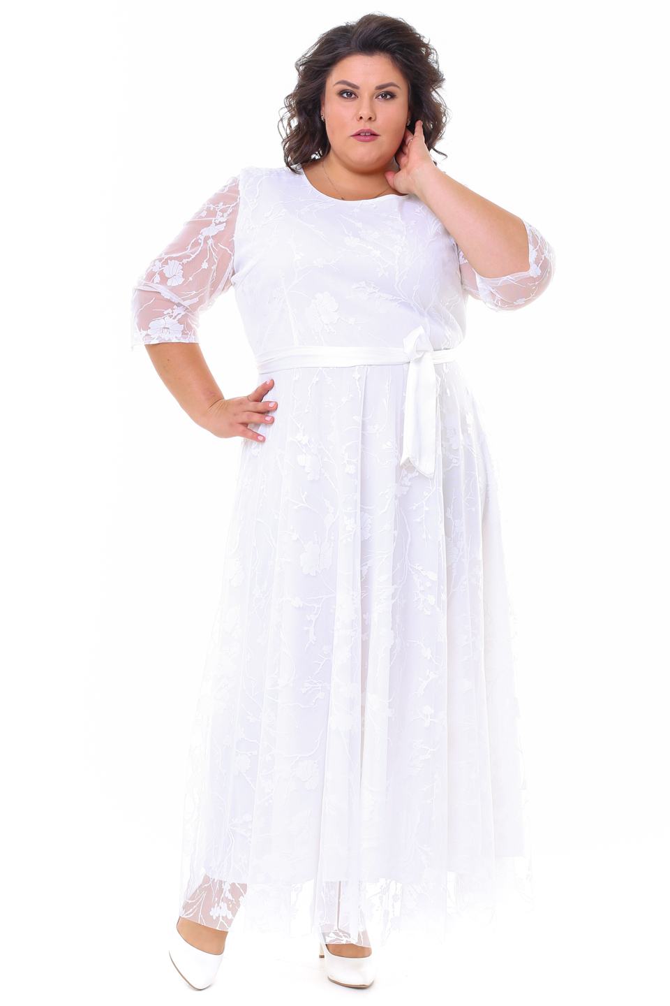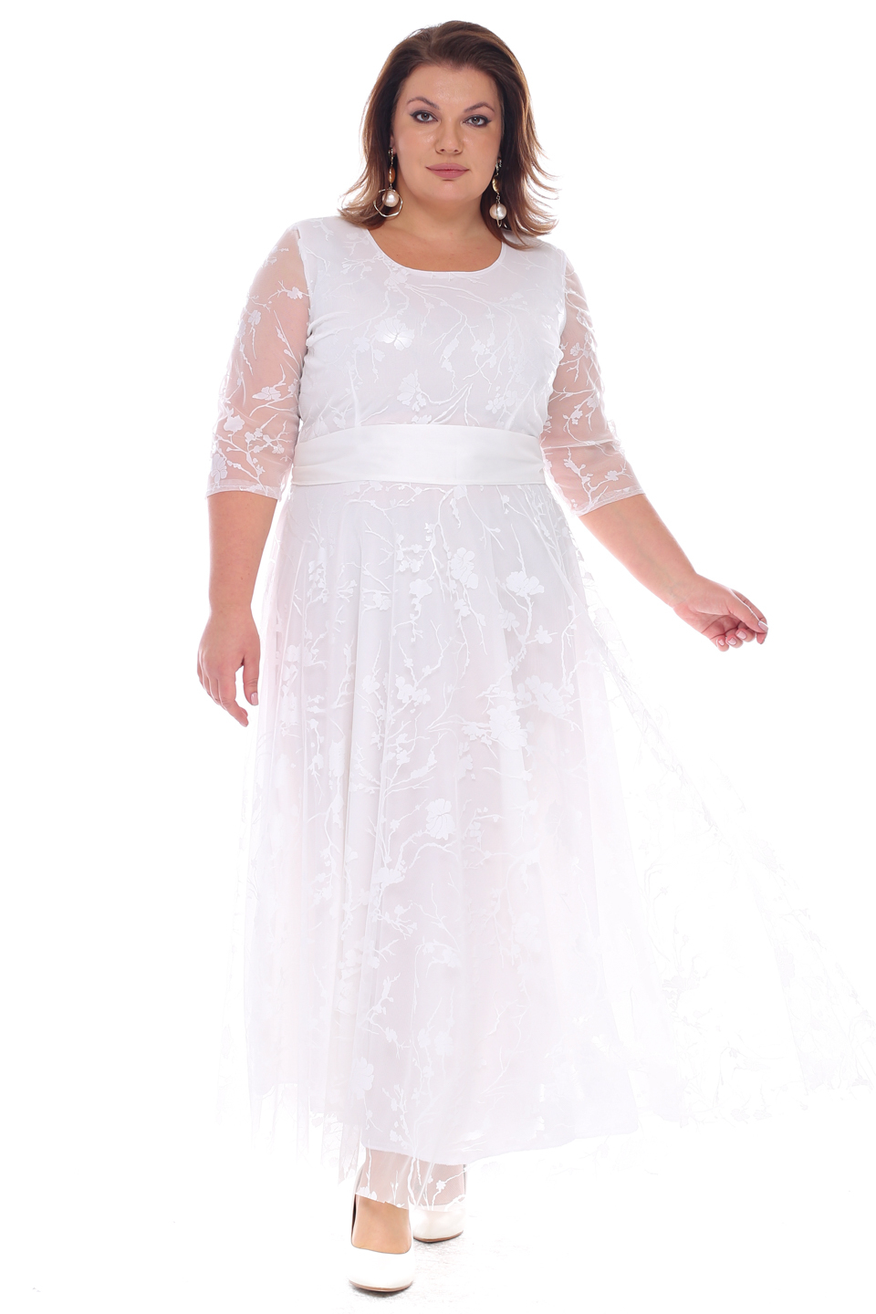 Платье длинное круглый вырез "сакура" двойное белое
