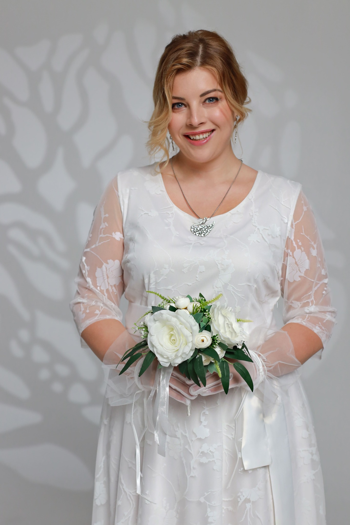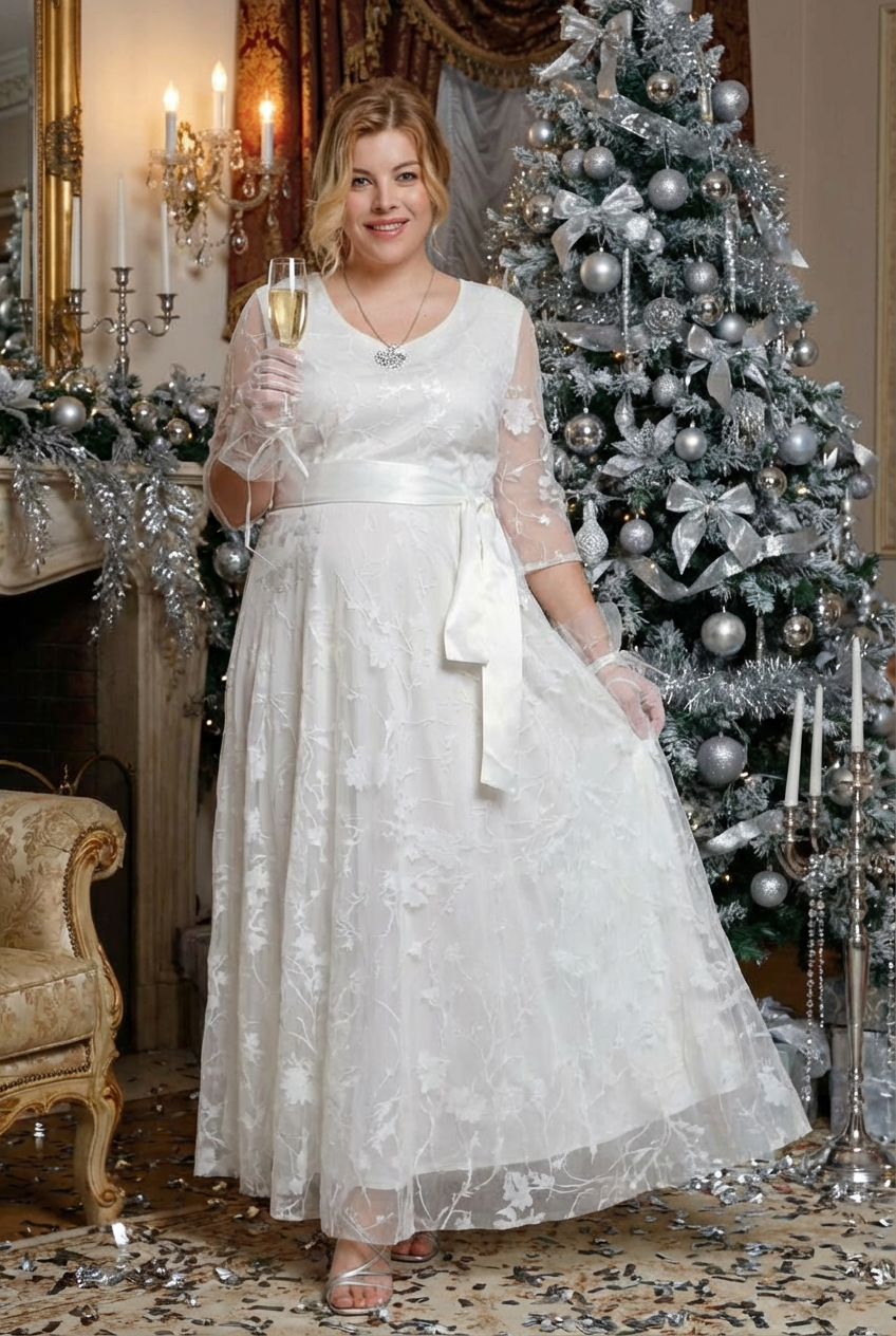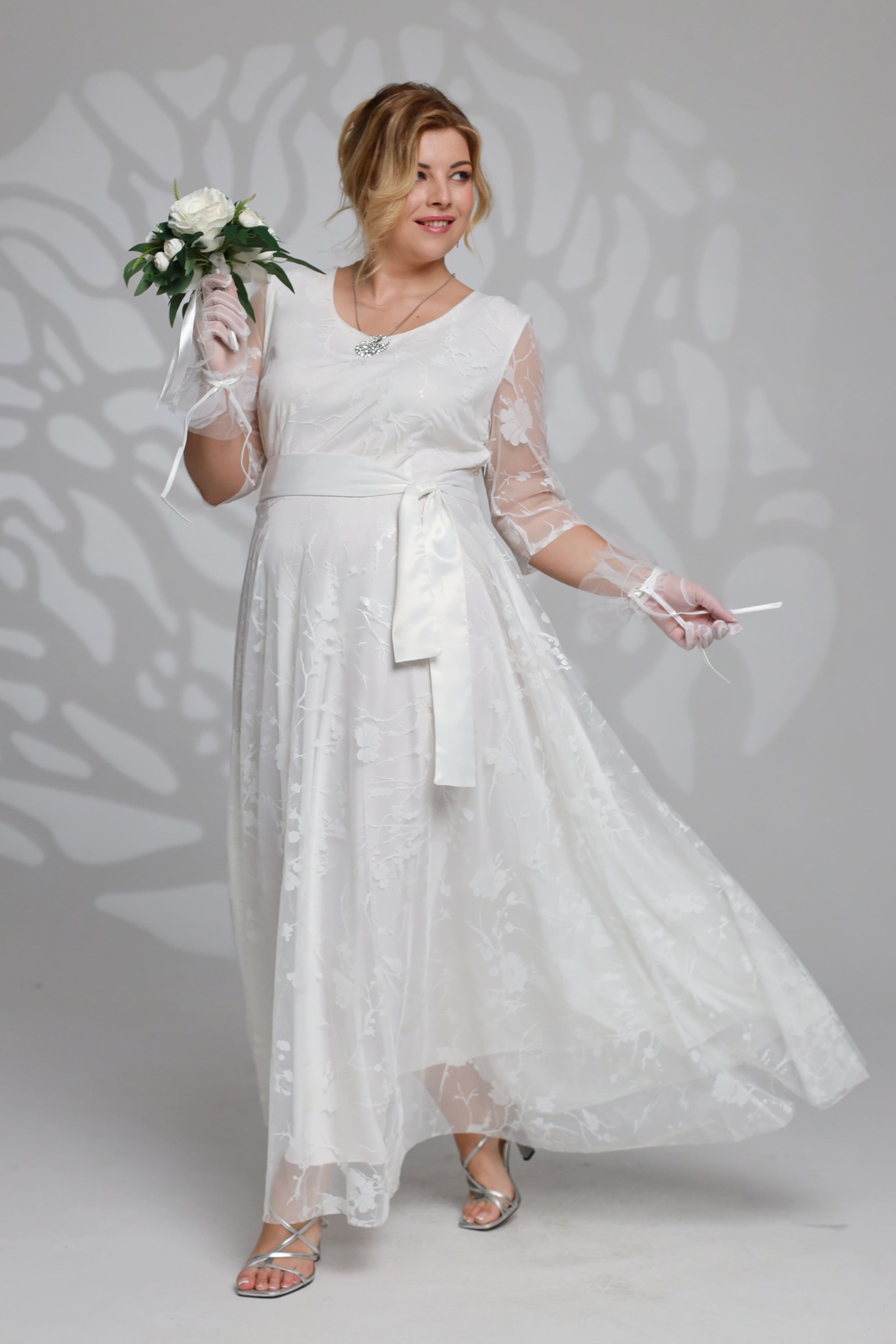 Платье длинное круглый вырез "сакура" двойное белое