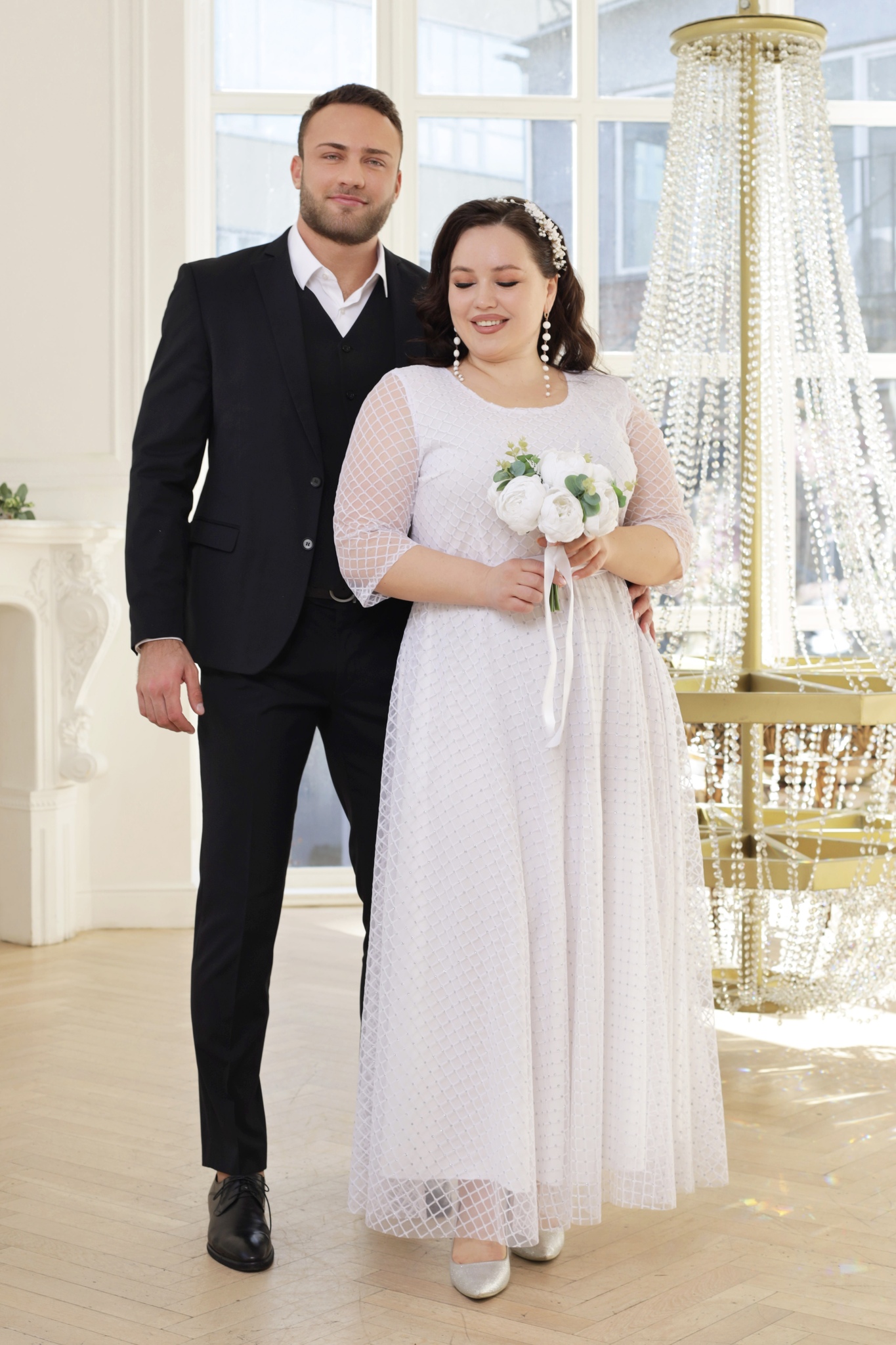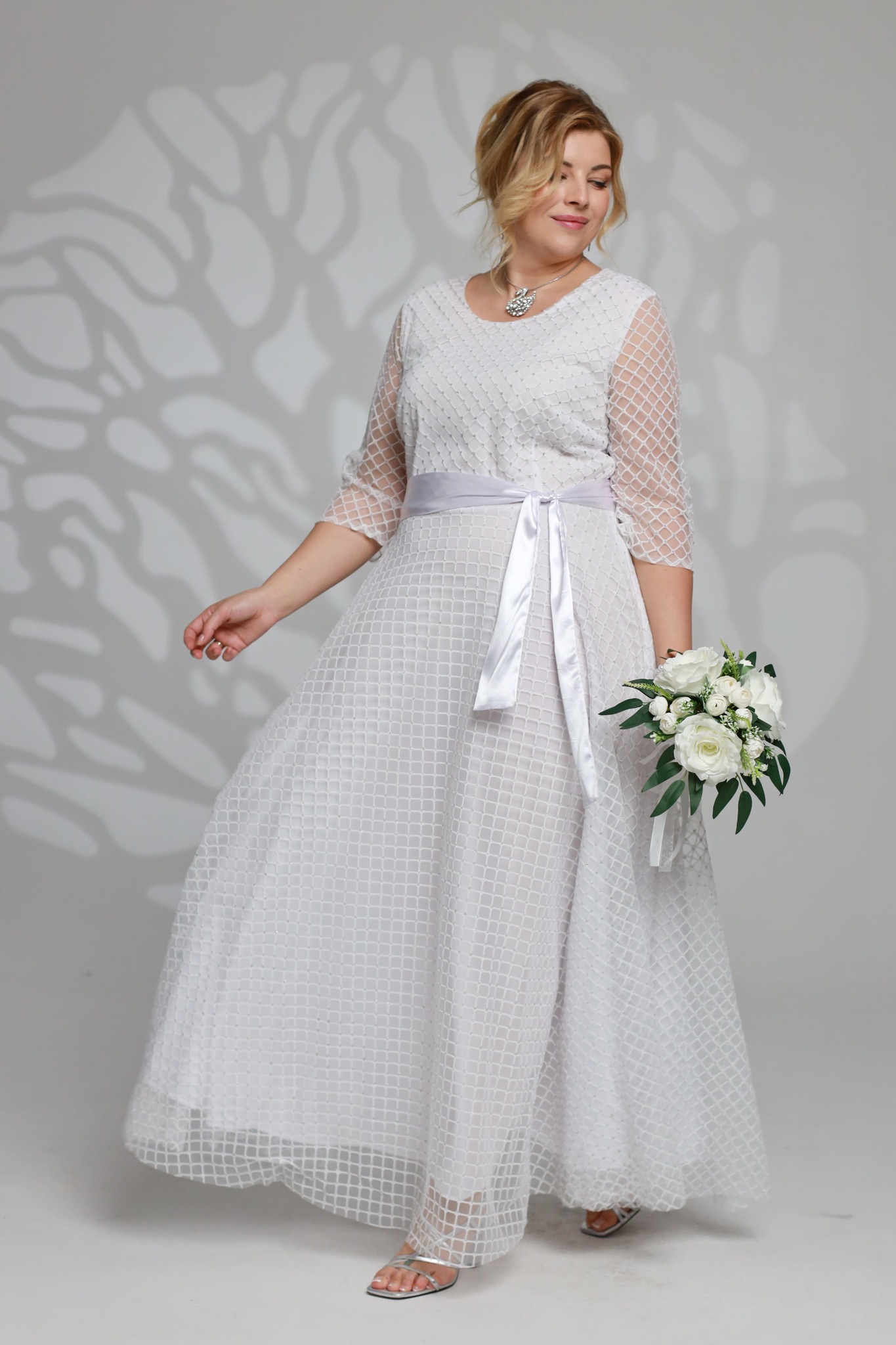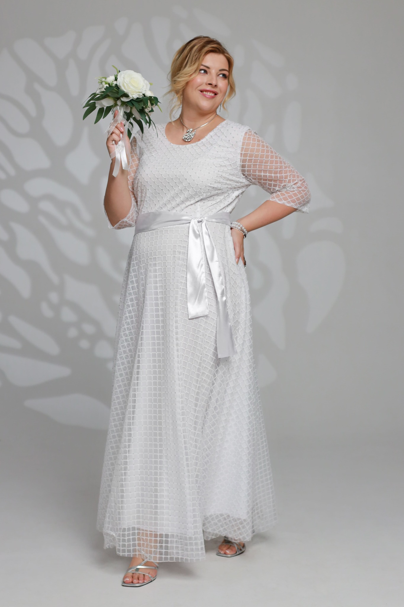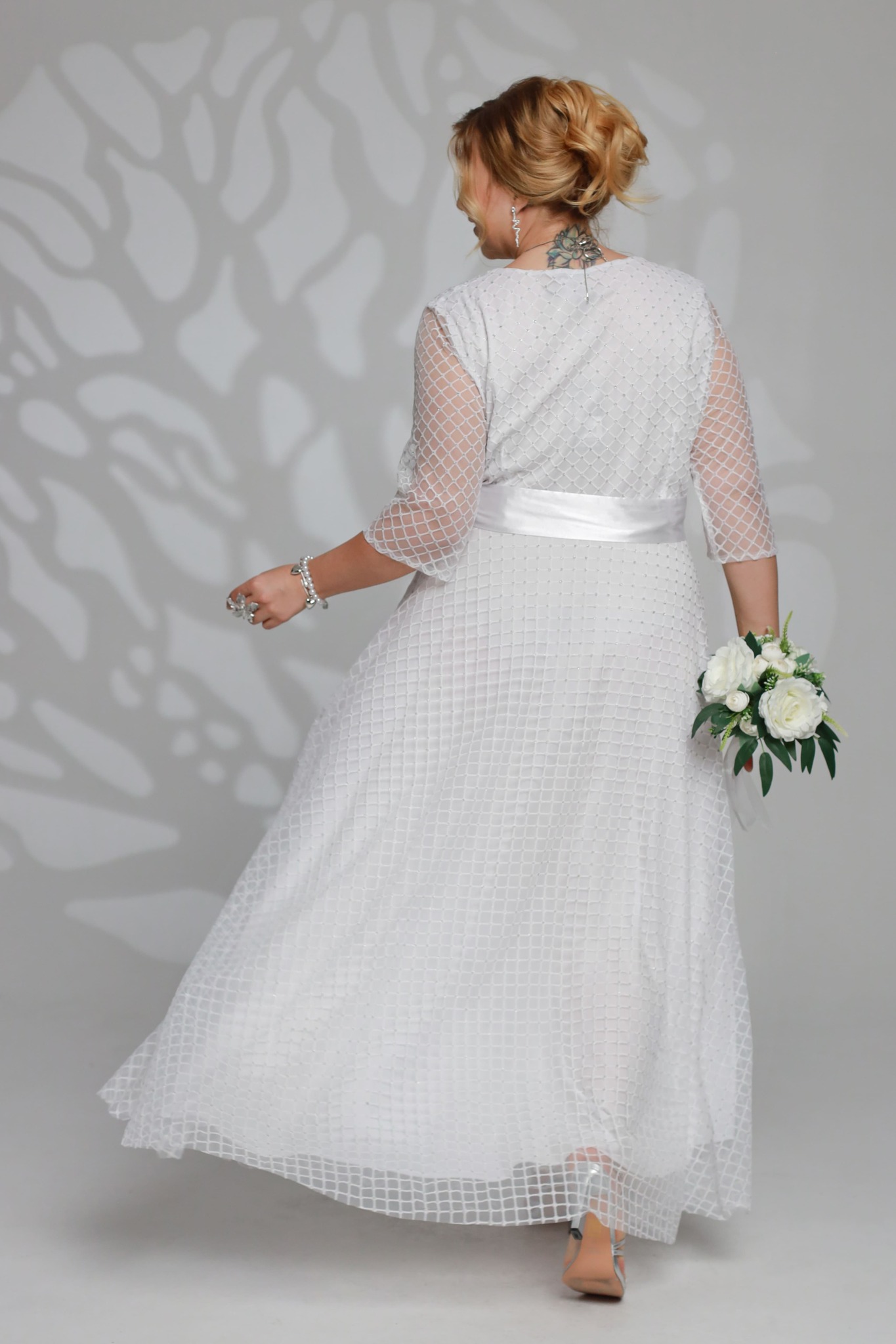 Платье длинное круглый вырез "ромбики" двойное белое свадебное