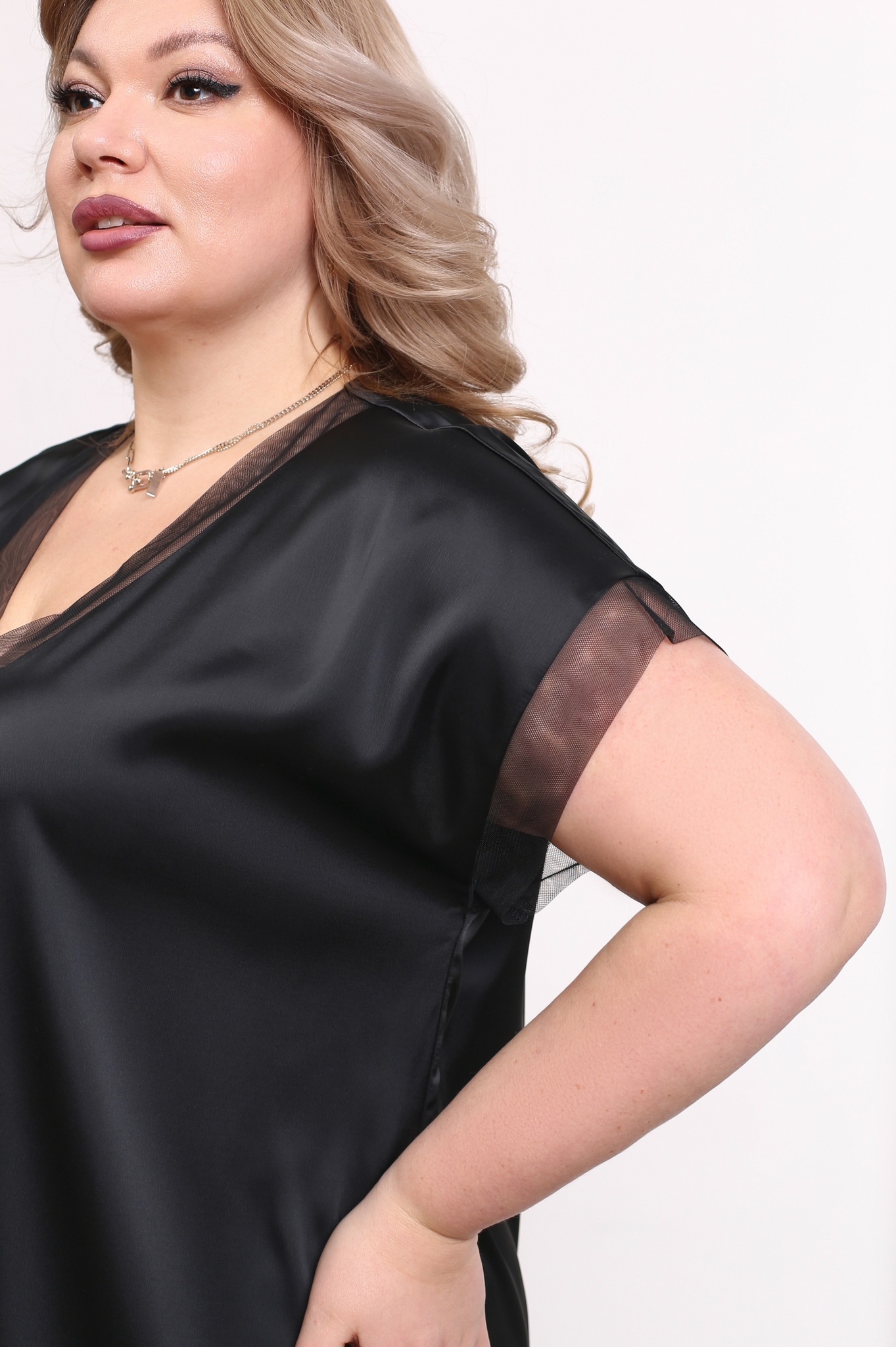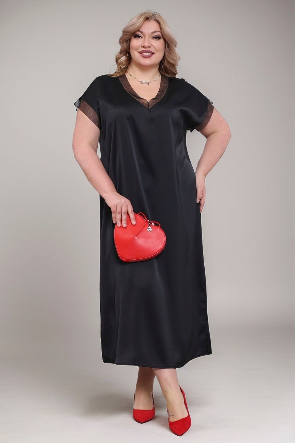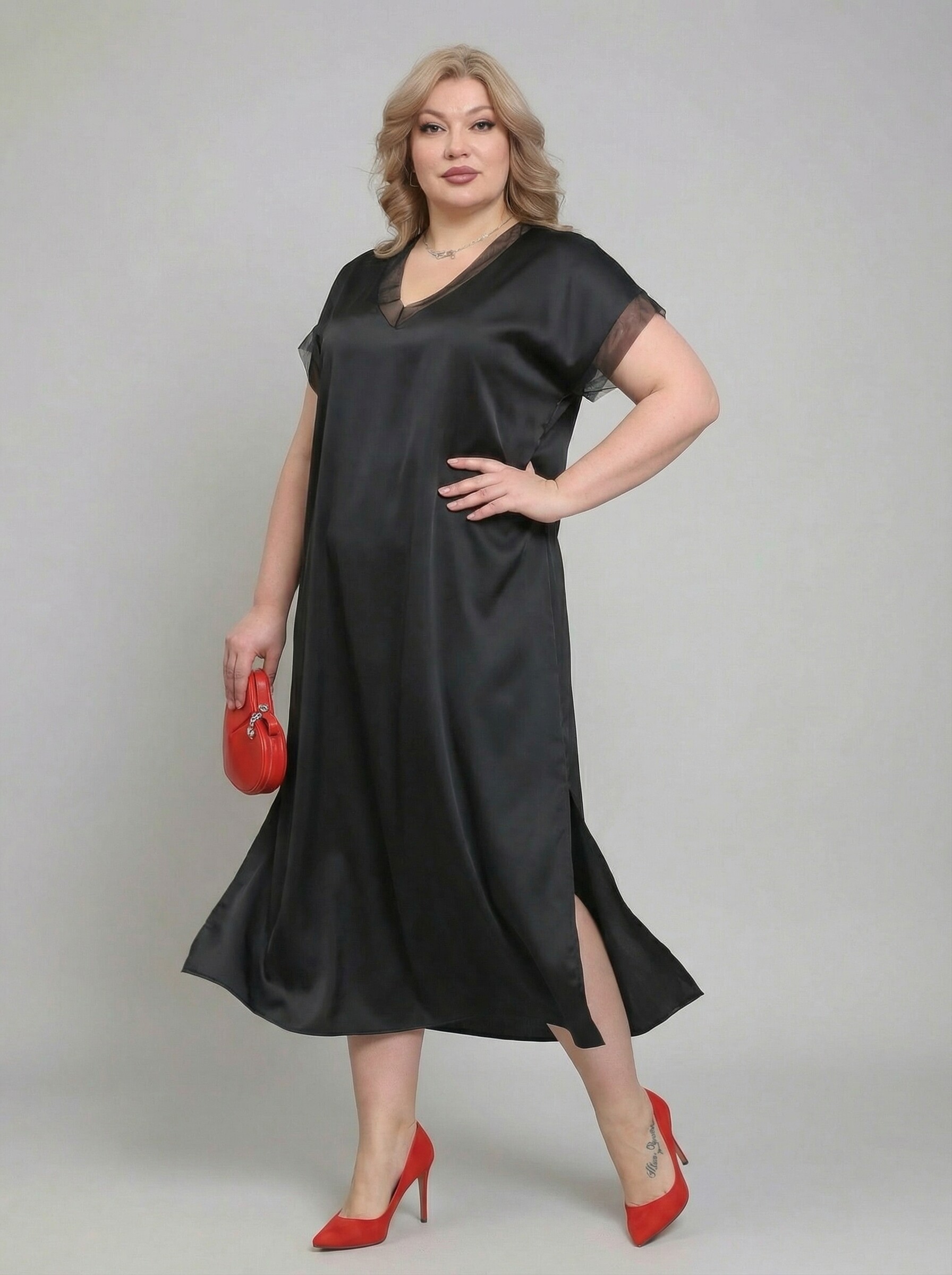 Платье шелковое v-вырез с прозрачной отделкой черное