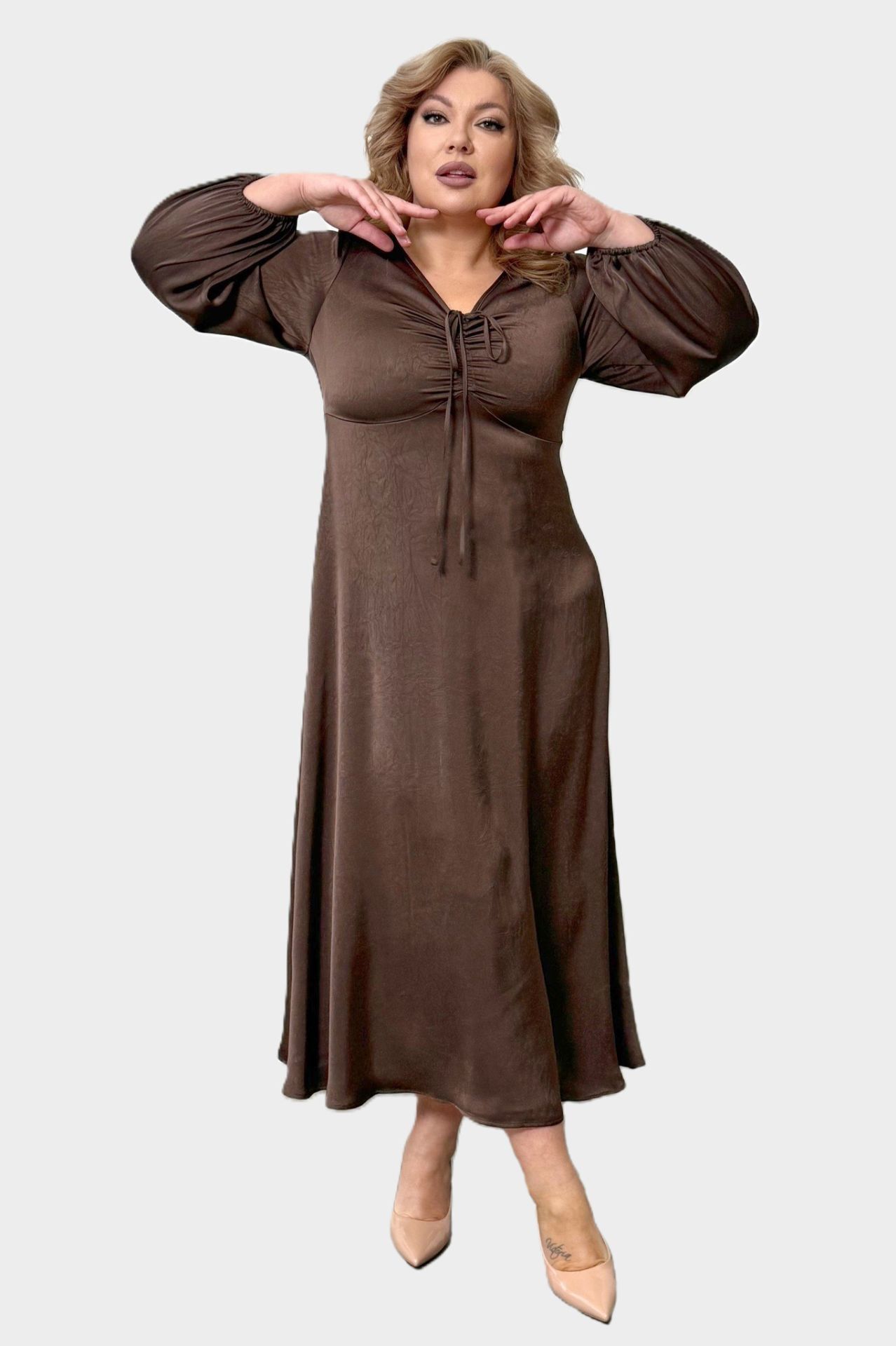 Платье шелковое с завязкой на груди капучино