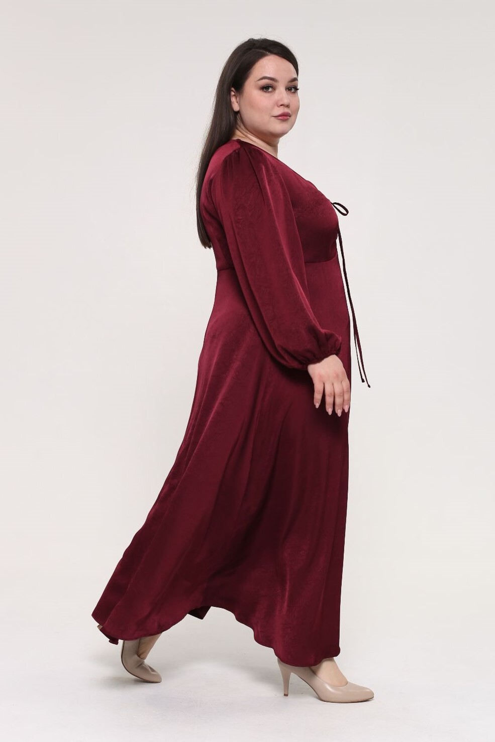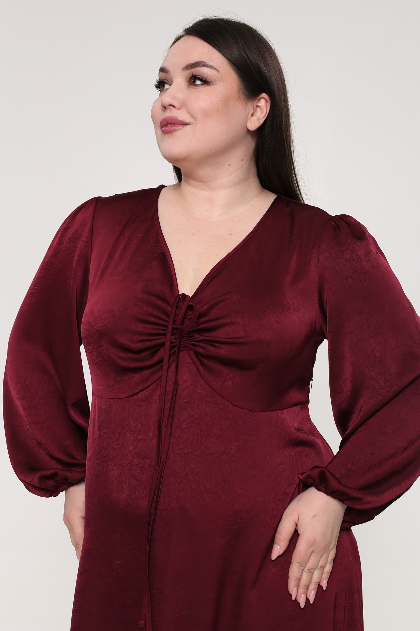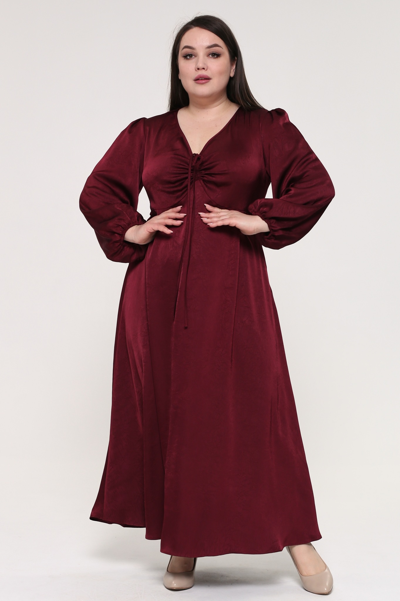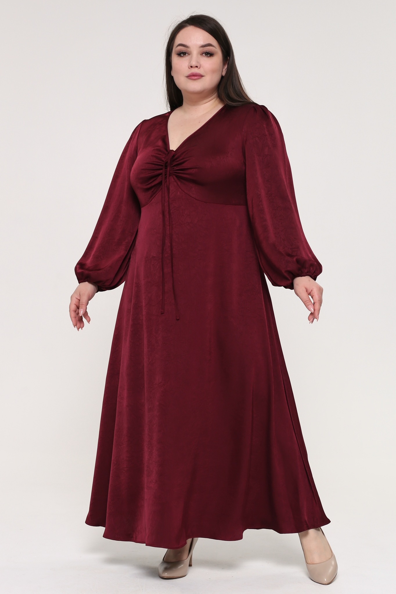 Элегантное платье из мягкой струящейся ткани - подчеркнет вашу женственность и изящность. модель имеет рукава полной длины, которые по низу присобраны тонкой резинкой. полуприлегающий верх подчеркивает декольте благодаря v-образному вырезу с оригинальной завязкой на груди. расклешенная струящаяся юбка искусно обыгрывает область бедер и добавляет женственности. вытачки на груди и по спинке обеспечивают оптимальную посадку по фигуре. легкий струящийся материал виртуозно обыгрывает фигуру благодаря свободному крою модели. платье создано для того, чтобы подчеркивать достоинства и скрывать недостатки, вам нужно лишь добавить обувь на каблуках и идеальный образ готов.