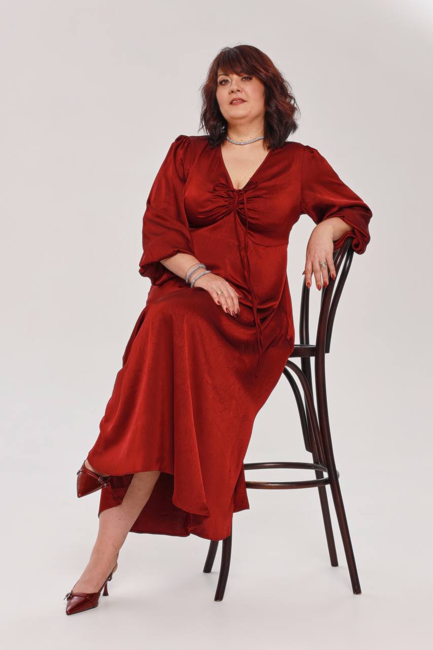 Платье шелковое с завязкой на груди красное