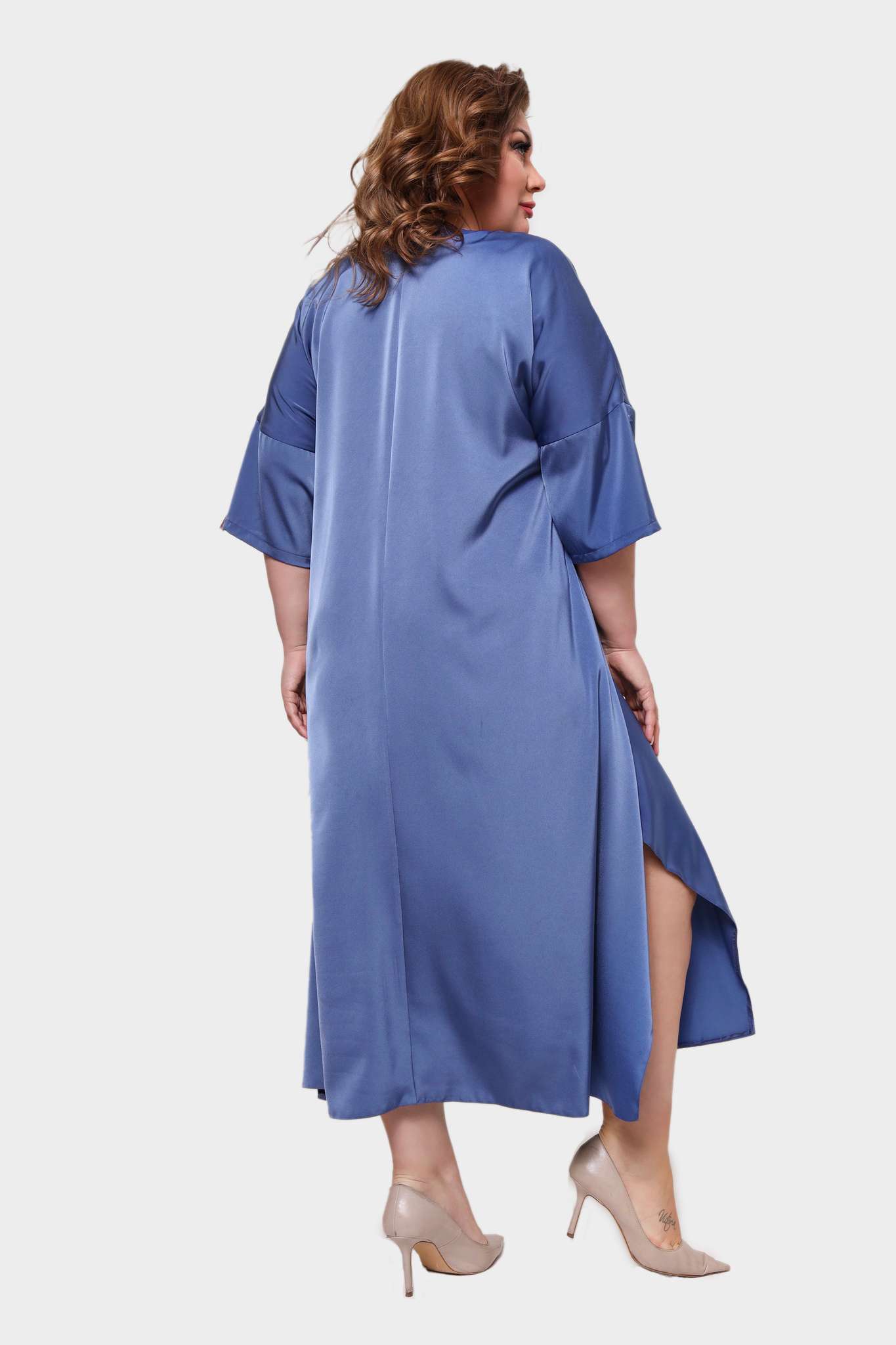 Стильное платье из мягкого струящегося материала. модель имеет u-образный вырез. цельнокроеные рукава длиной 3/4 присобраны по низу хлястиками. линия талии, по желанию, можно подчеркнуть оригинальным поясом. свободный силуэт и мягкий материал искусно обыгрывают фигуру и дарят комфорт в течение всего дня. небольшие разрезы по бокам обеспечивают оптимальную посадку по фигуре. платье создано для того, чтобы подчеркивать достоинства и скрывать недостатки. стильный клатч и туфли на каблуках станут идеальным дополнением к нарядному образу. (пояс в комплект не входит)