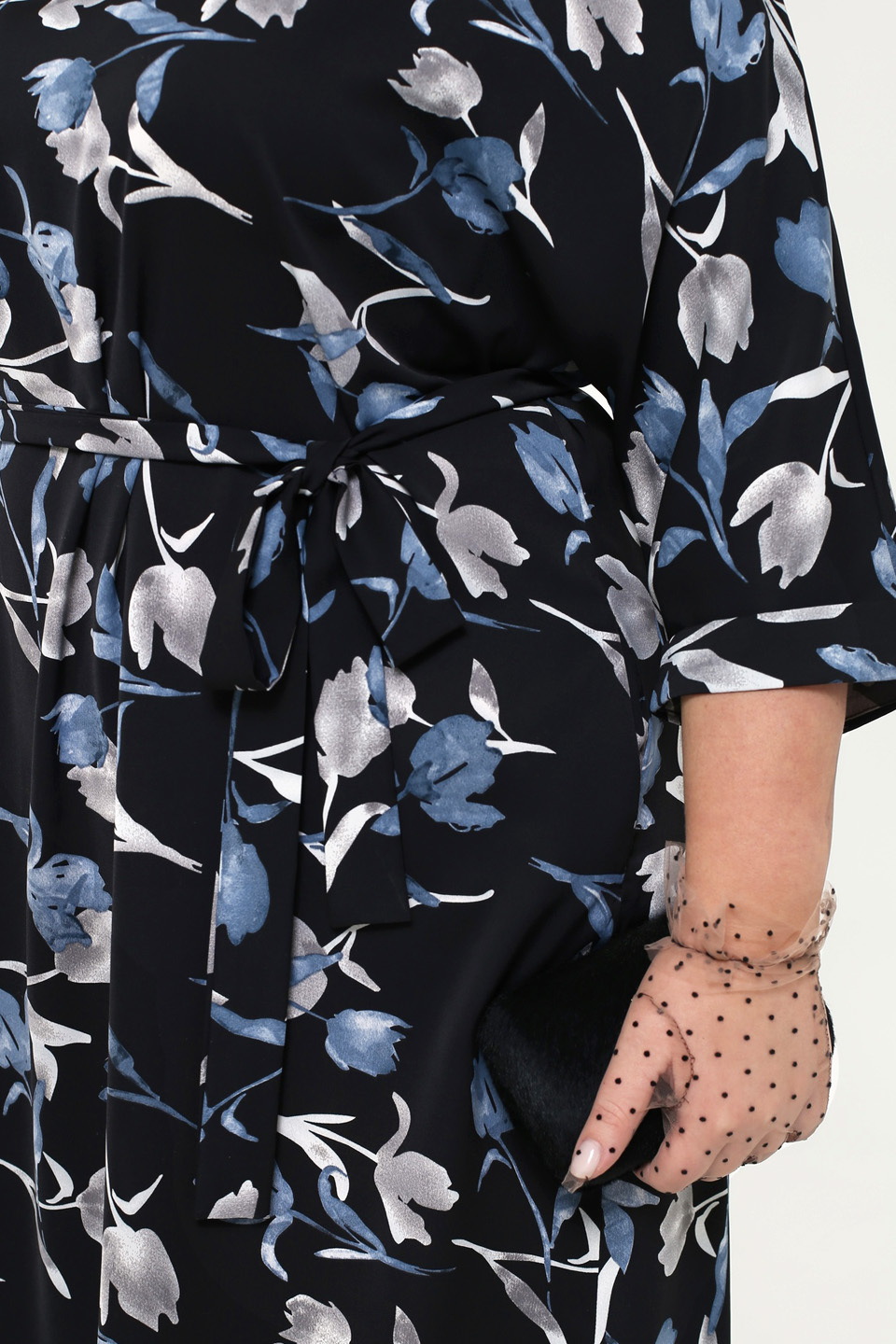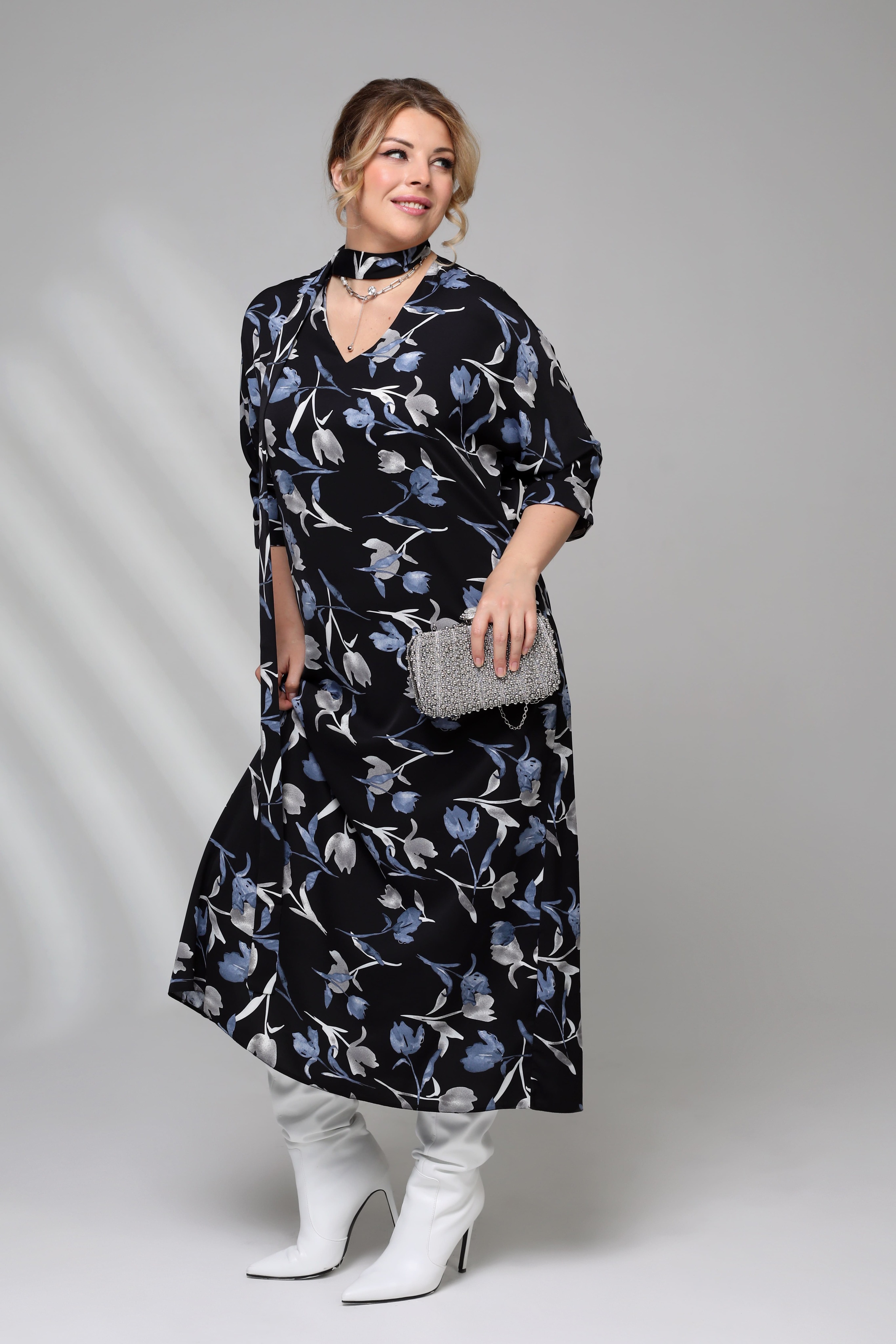 Платье v-вырез с завязкой на вороте "цветы" черное