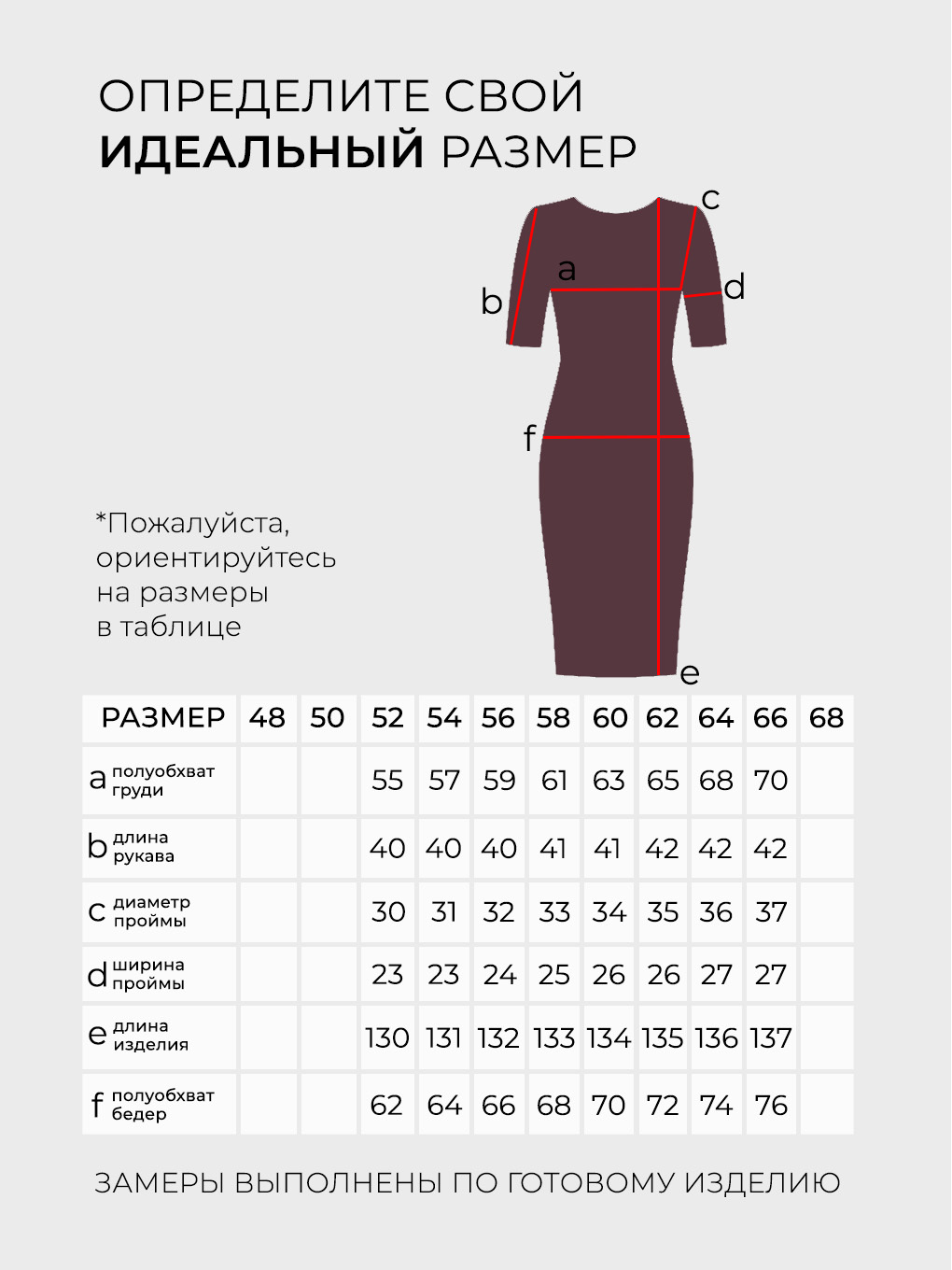 Просим обратить внимание, что в таблице приведены замеры фигуры, а не изделия.