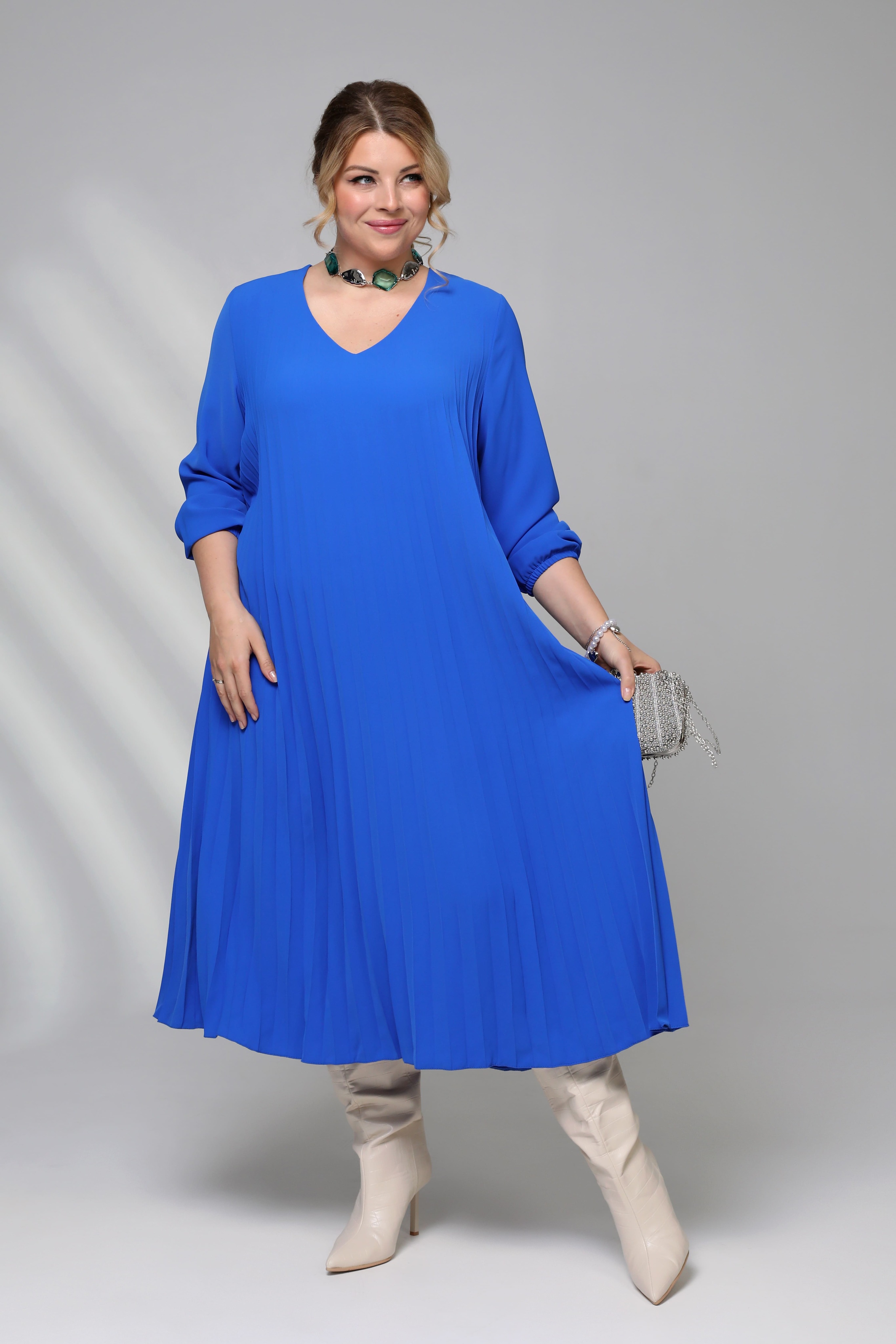 Платье гофрированное электрик