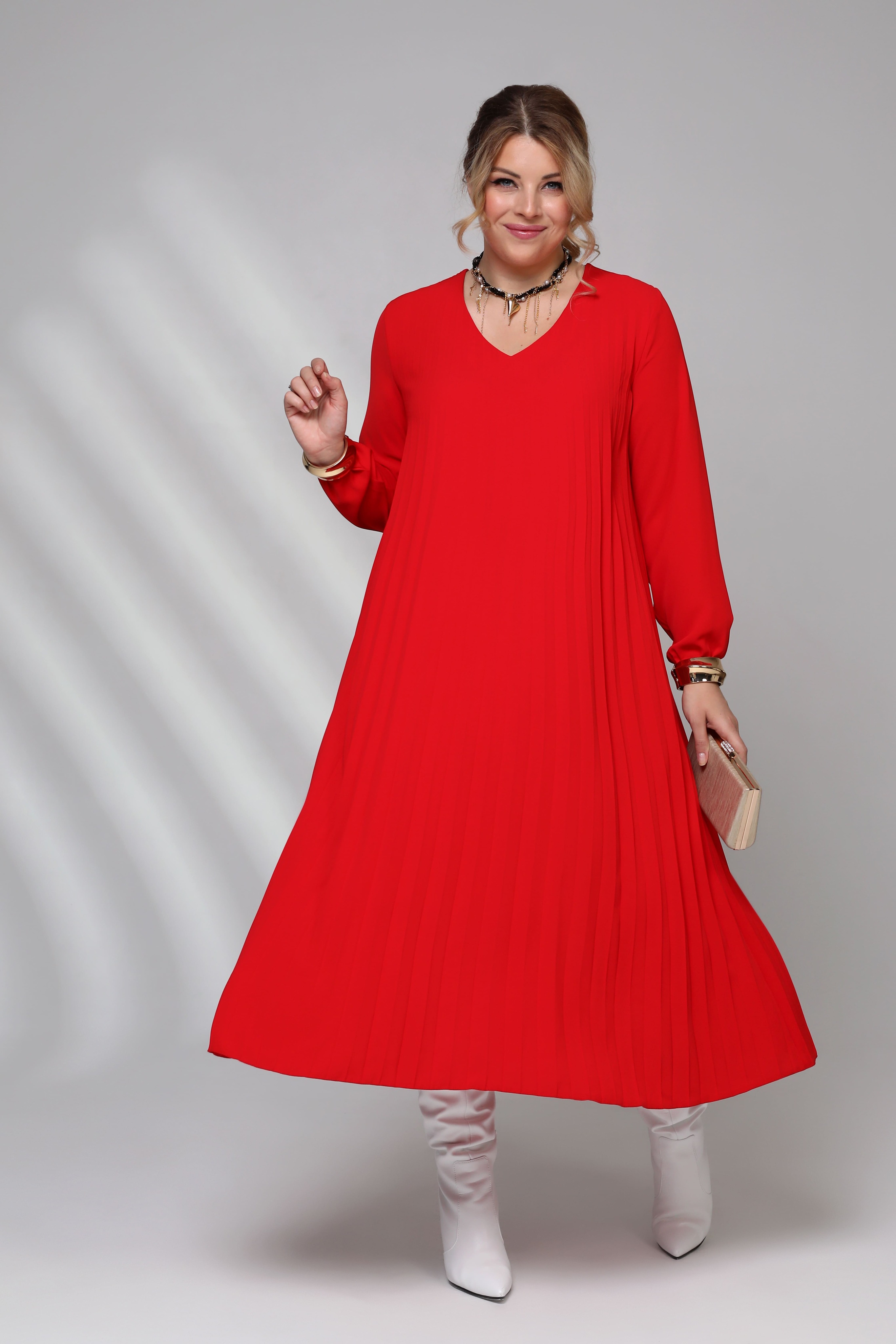 Стильное женское платье трапеция из мягкого гофрированного материала. имеет классический v-образный вырез. рукава полной длины по низу дополнены тонкой резинкой. аккуратная плиссировка зрительно вытягивает силуэт и визуально стройнит. полуприлегающий силуэт и мягкий материал искусно обыгрывают фигуру и дарят комфорт в течение всего дня. стильный клатч и туфли на каблуках станут идеальным дополнением к нарядному образу.