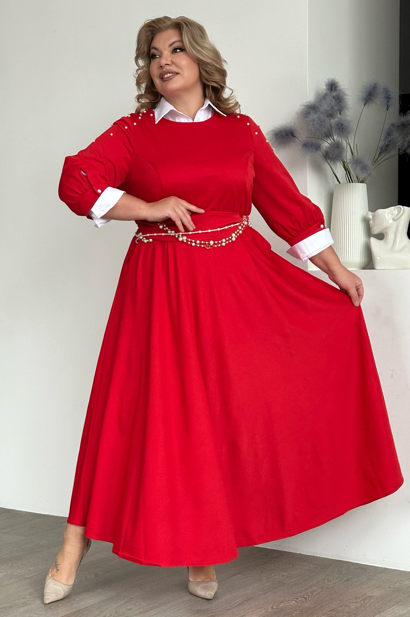 Романтичное платье «макси» с отрезной талией из плотного струящегося материала. классический круглый вырез, рукава с широкими манжетами на пуговицах и однотонная расцветка подчеркивают элегантность модели. прилегающий верх с формирующими швами отлично садится по фигуре. нарядности добавляет россыпь бусин, под имитацию жемчуга, в области плеч и рукавов. расклешенная струящаяся юбка с карманами искусно обыгрывает область бедер. талию можно подчеркнуть широким съемным поясом-завязкой в тон. застегивается на потайную молнию и пуговицу сзади.