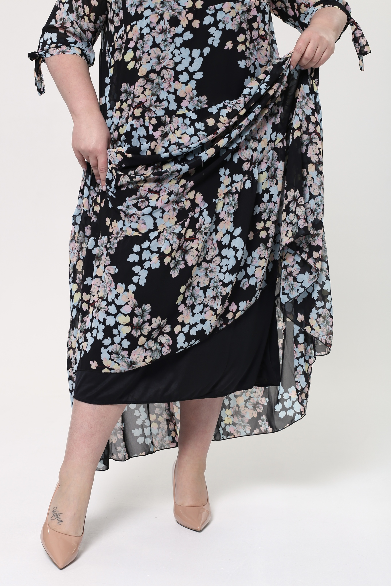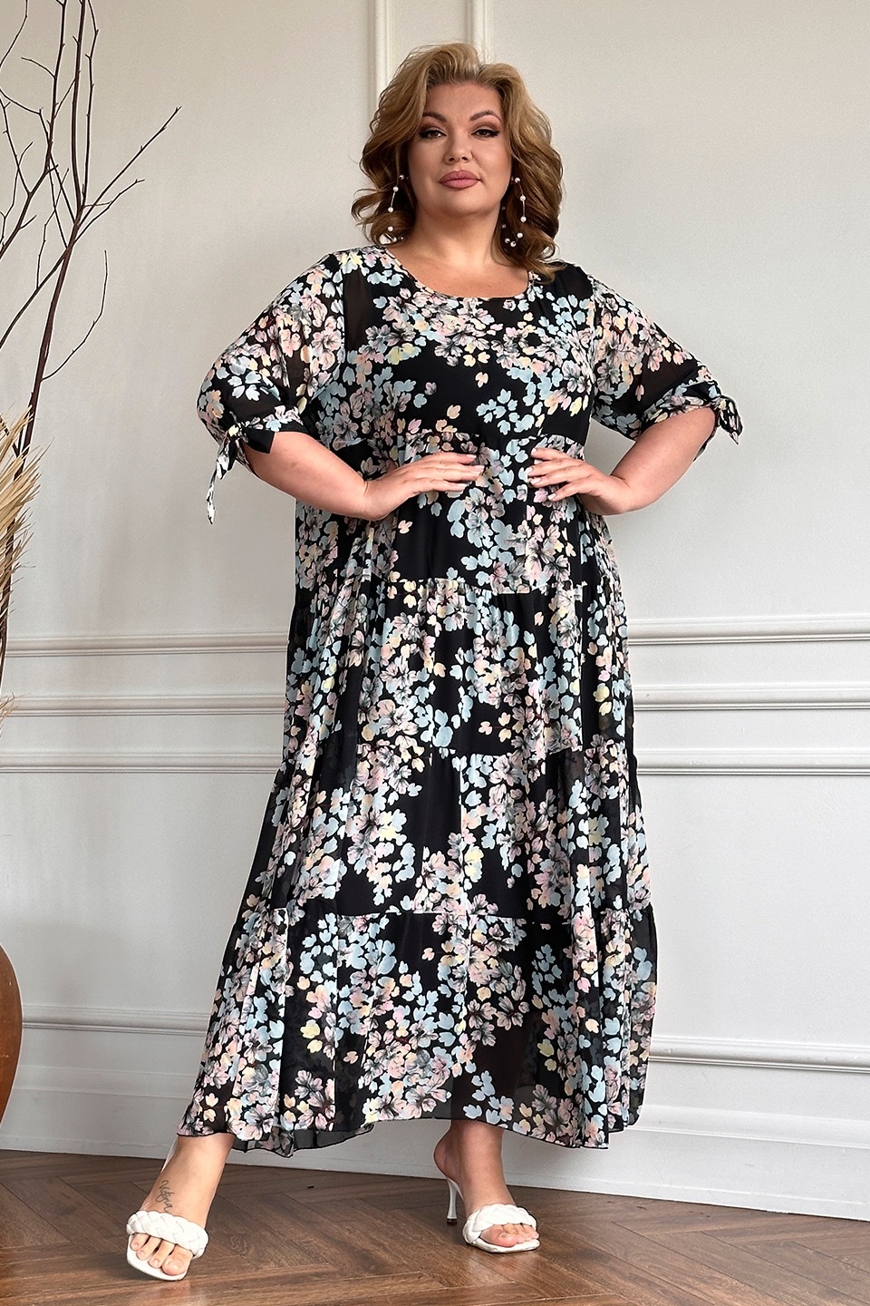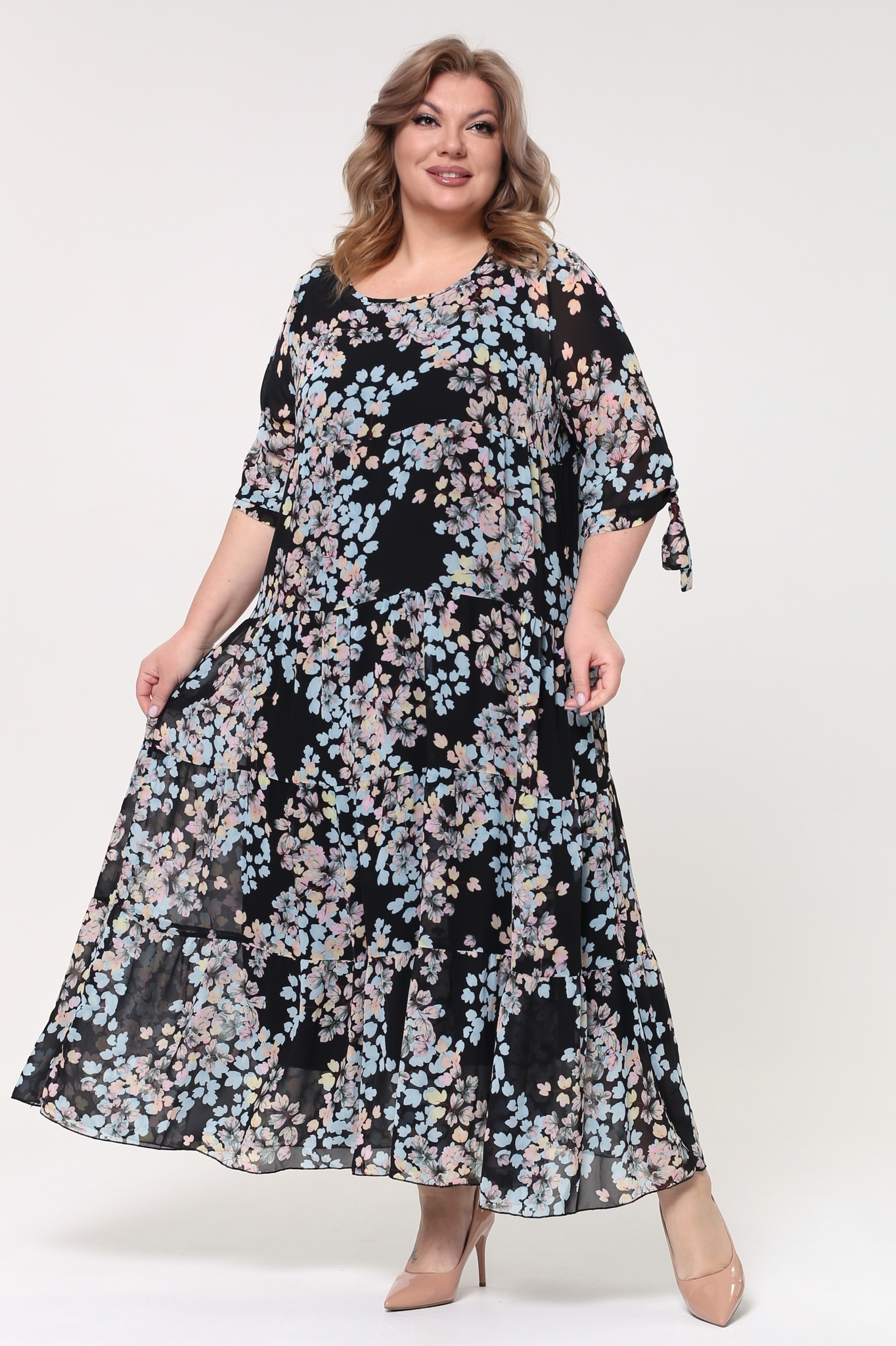 Легкое шифоновое платье "макси" свободного силуэта на съемной подкладе. имеет круглый вырез и рукава с манжетами на завязках. платье отрезное по линии груди с многоярусной расклешенной юбкой. свободный крой не сковывает движений и скрывает несовершенства фигуры. модель приятна телу, хорошо сидит и красиво обыгрывает фигуру. нежный принт по всему изделию добавляет образу динамичности. стильное платье в пол идеально подойдет для торжественных мероприятий разного характера и для летних прогулок. подчеркните лаконичность образа длинными серьгами и туфлями на высоких каблуках.