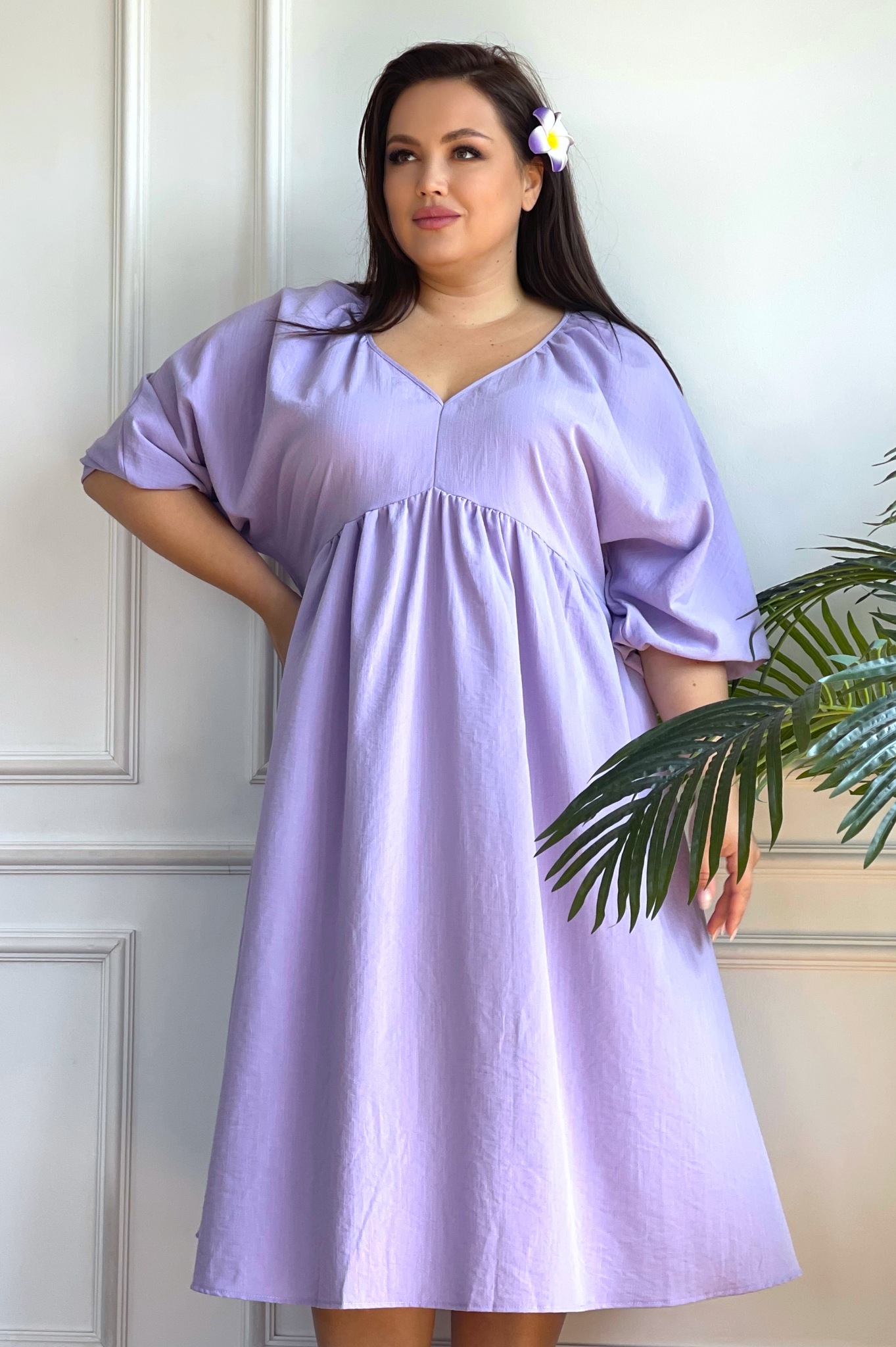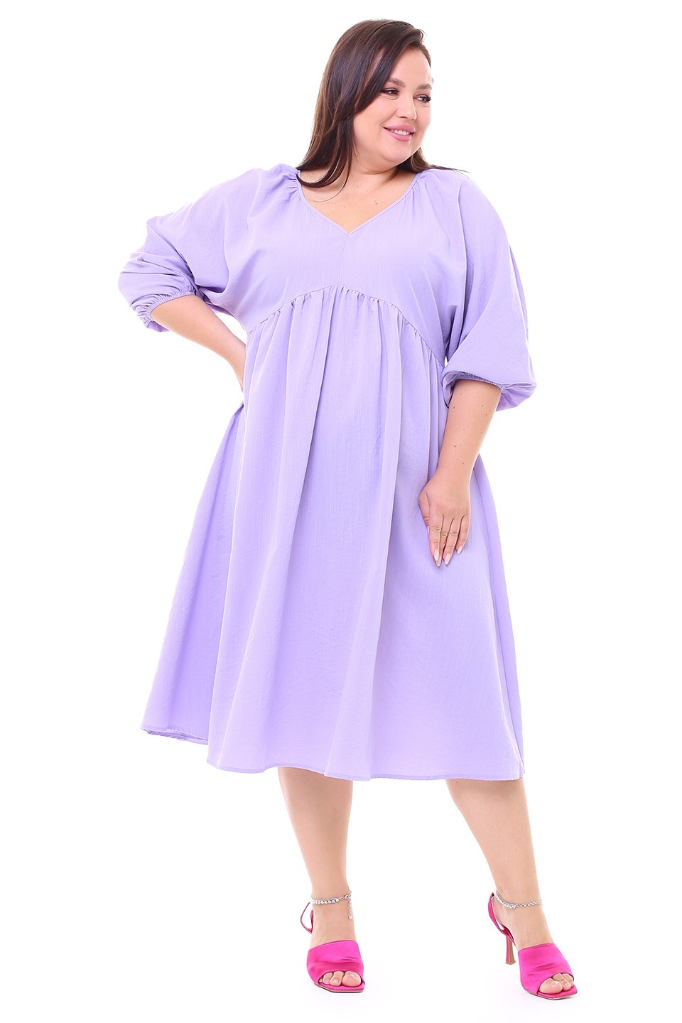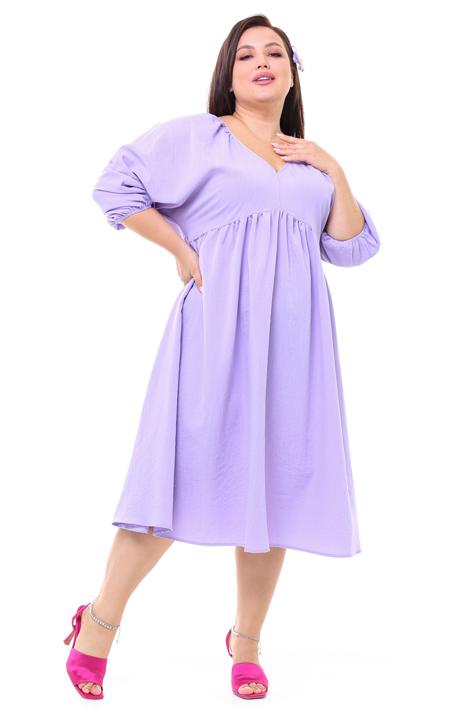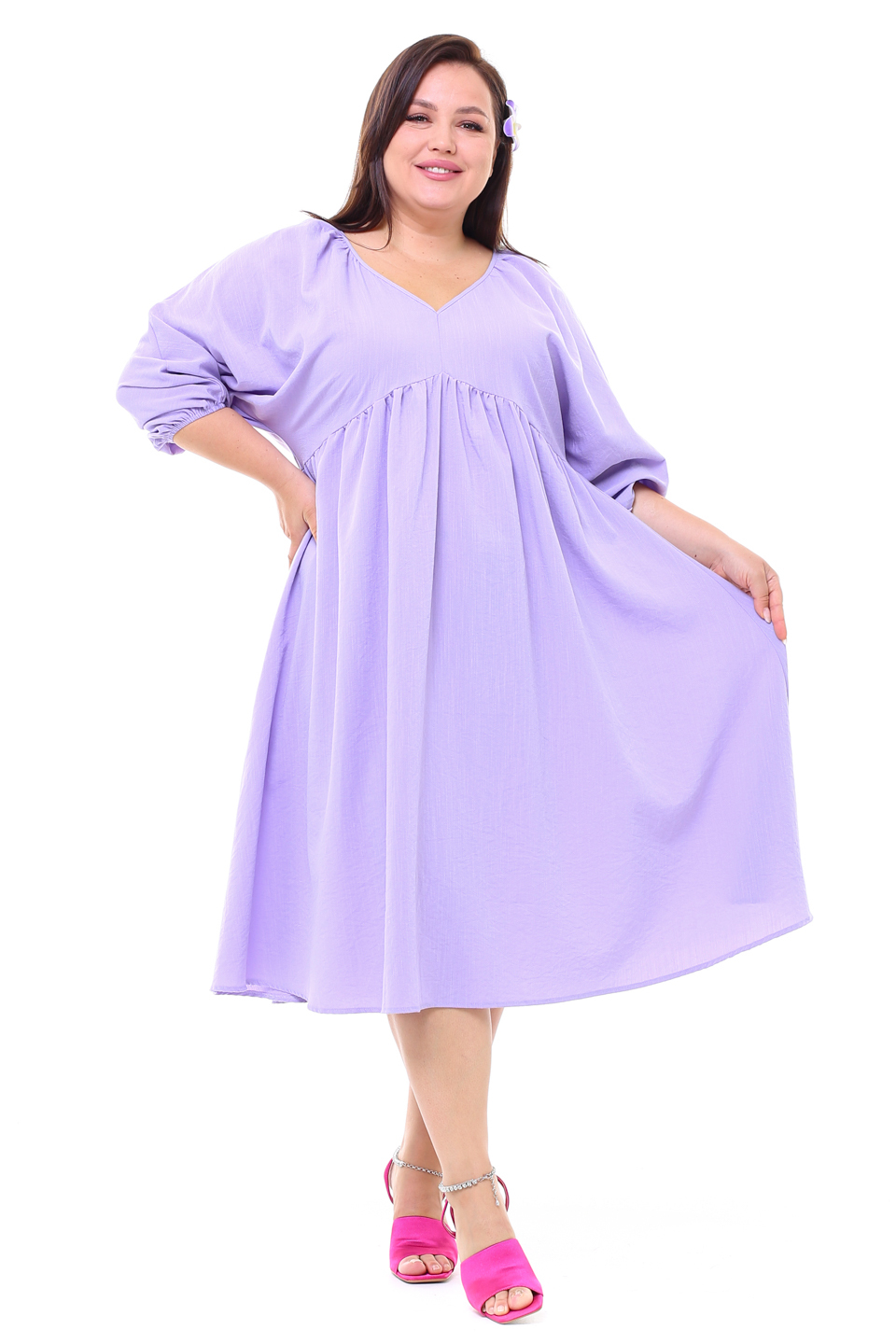 Платье жатое v-вырез со сборкой под грудью лаванда