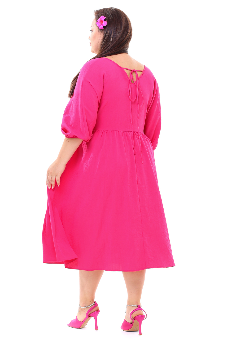 Стильное платье из мягкого материала. модель имеет по переду и спинке v-образный вырез, который по спинке оформлен оригинальными завязками. широкие цельнокроеные рукава длиной 3/4 по низу оформлены узкими резинками. фигурная завышенная линия талии искусно обыгрывает область живота и бедер, маскируя небольшие недостатки фигуры. центральный шов по спинке обеспечивает оптимальную посадку по фигуре. платье создано для того, чтобы подчеркивать достоинства. стильный клатч и туфли на каблуках станут идеальным дополнением к нарядному образу.