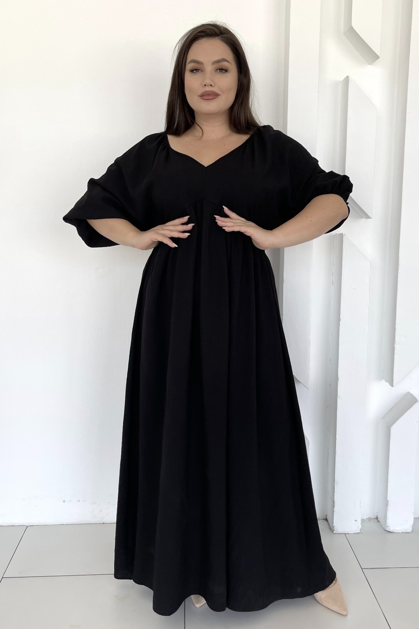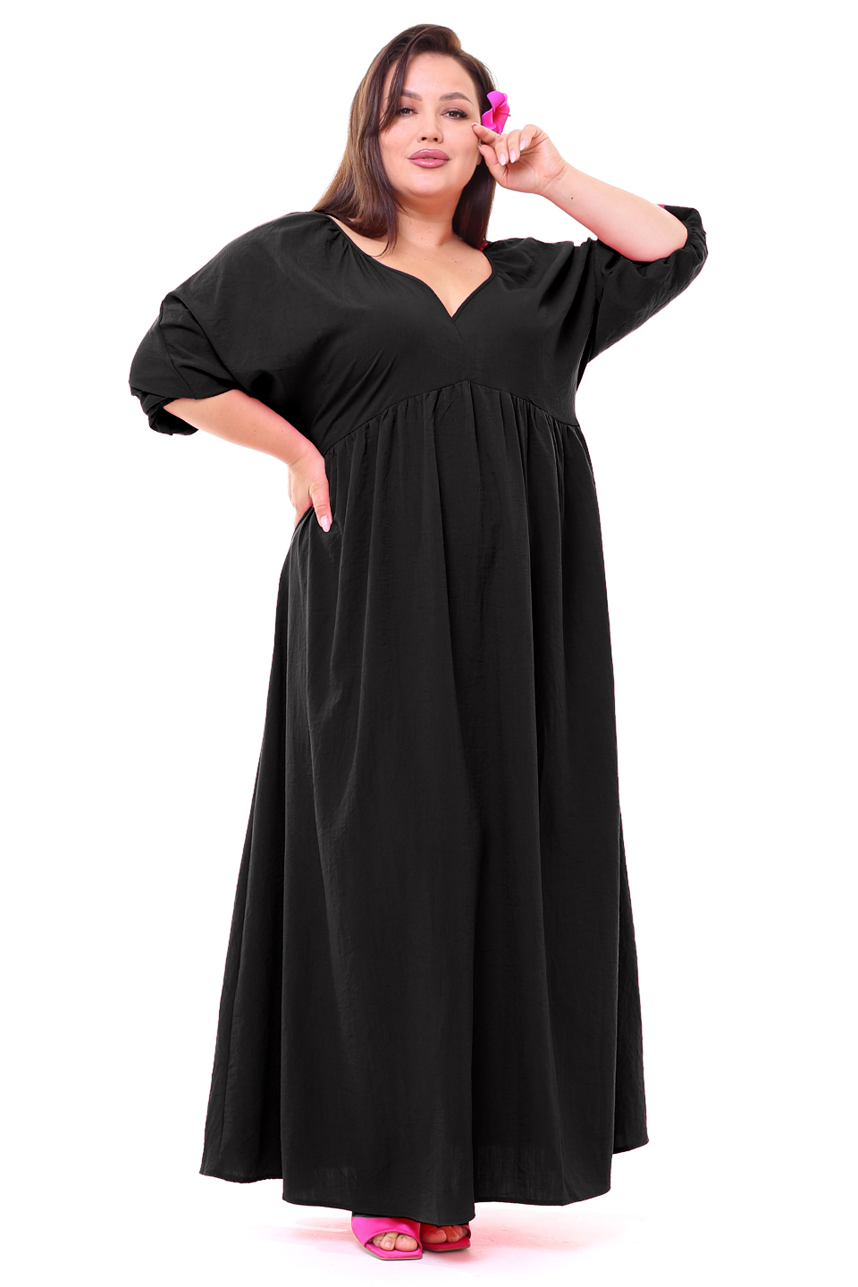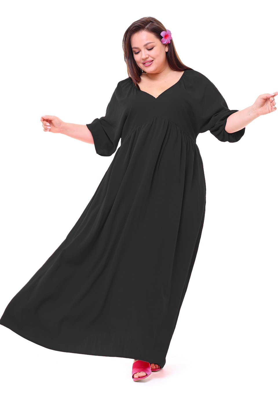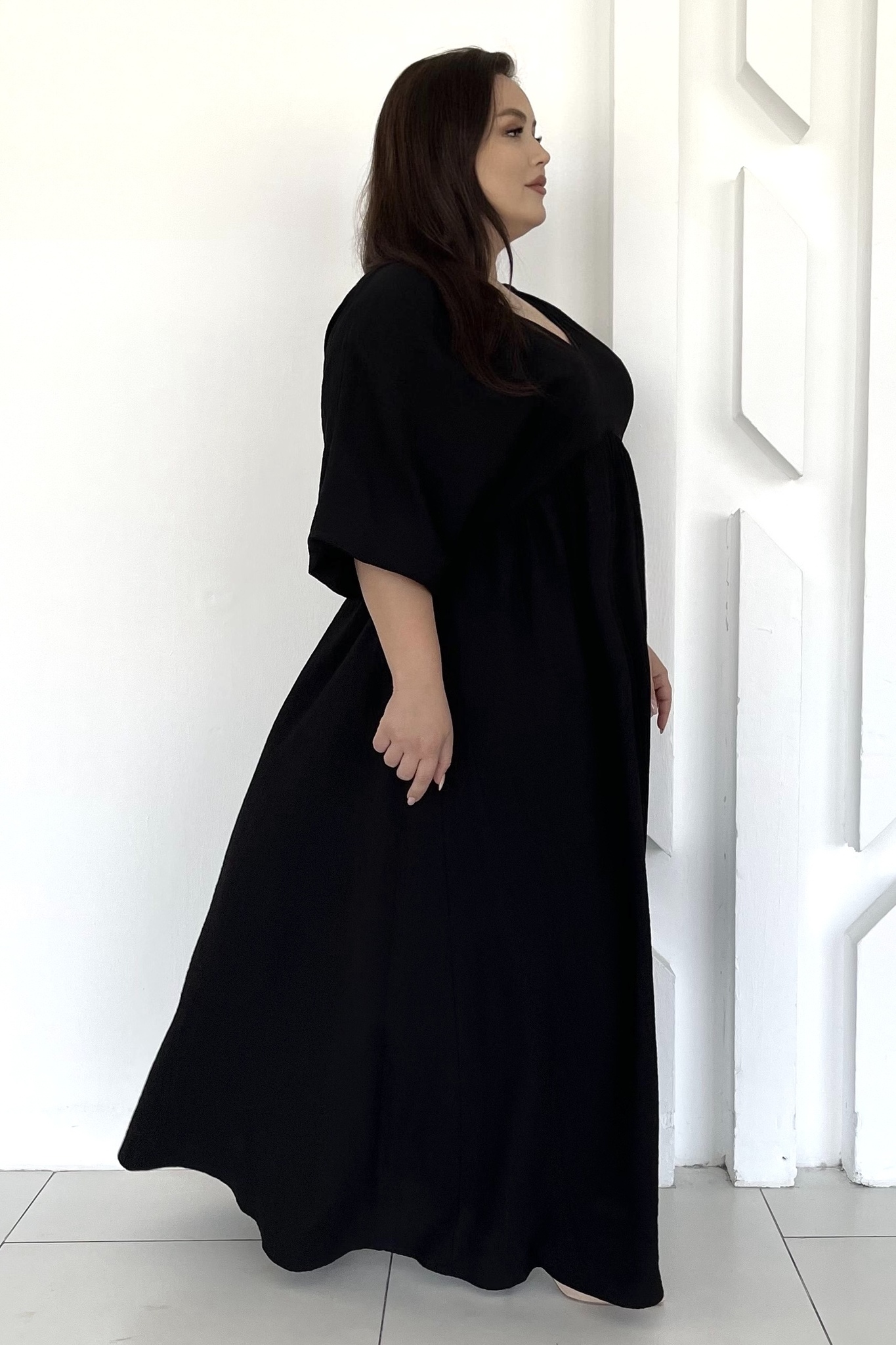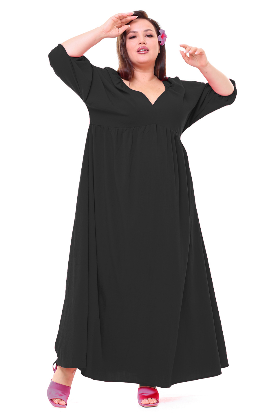 Платье жатое v-вырез со сборкой под грудью длинное черное