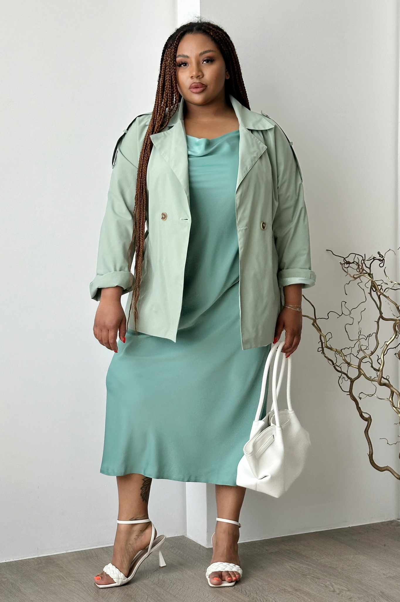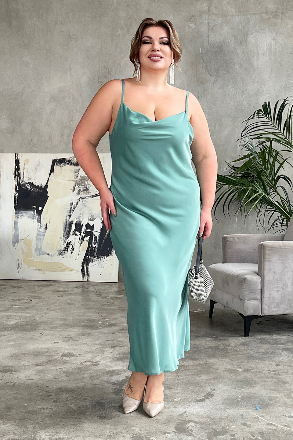 Платье-комбинация мята